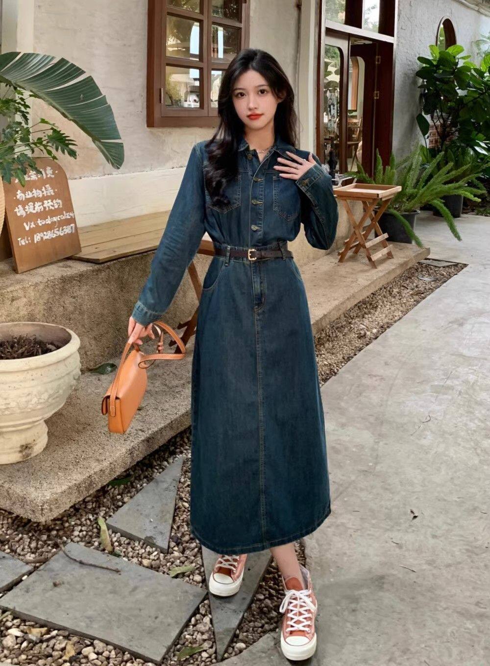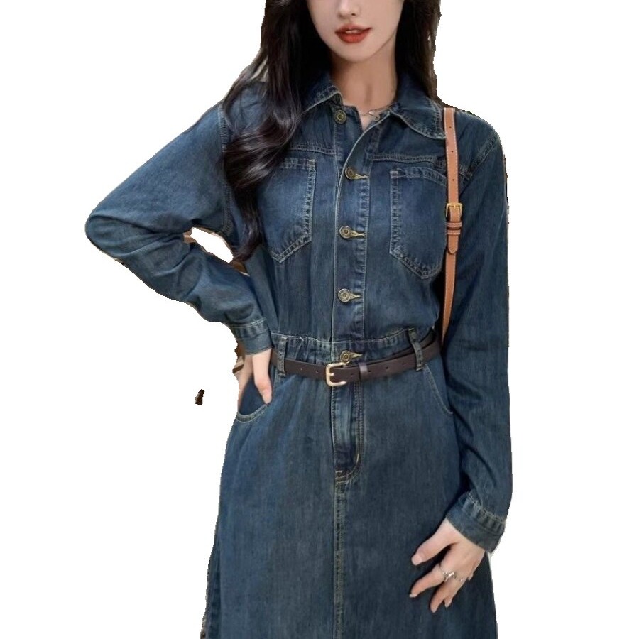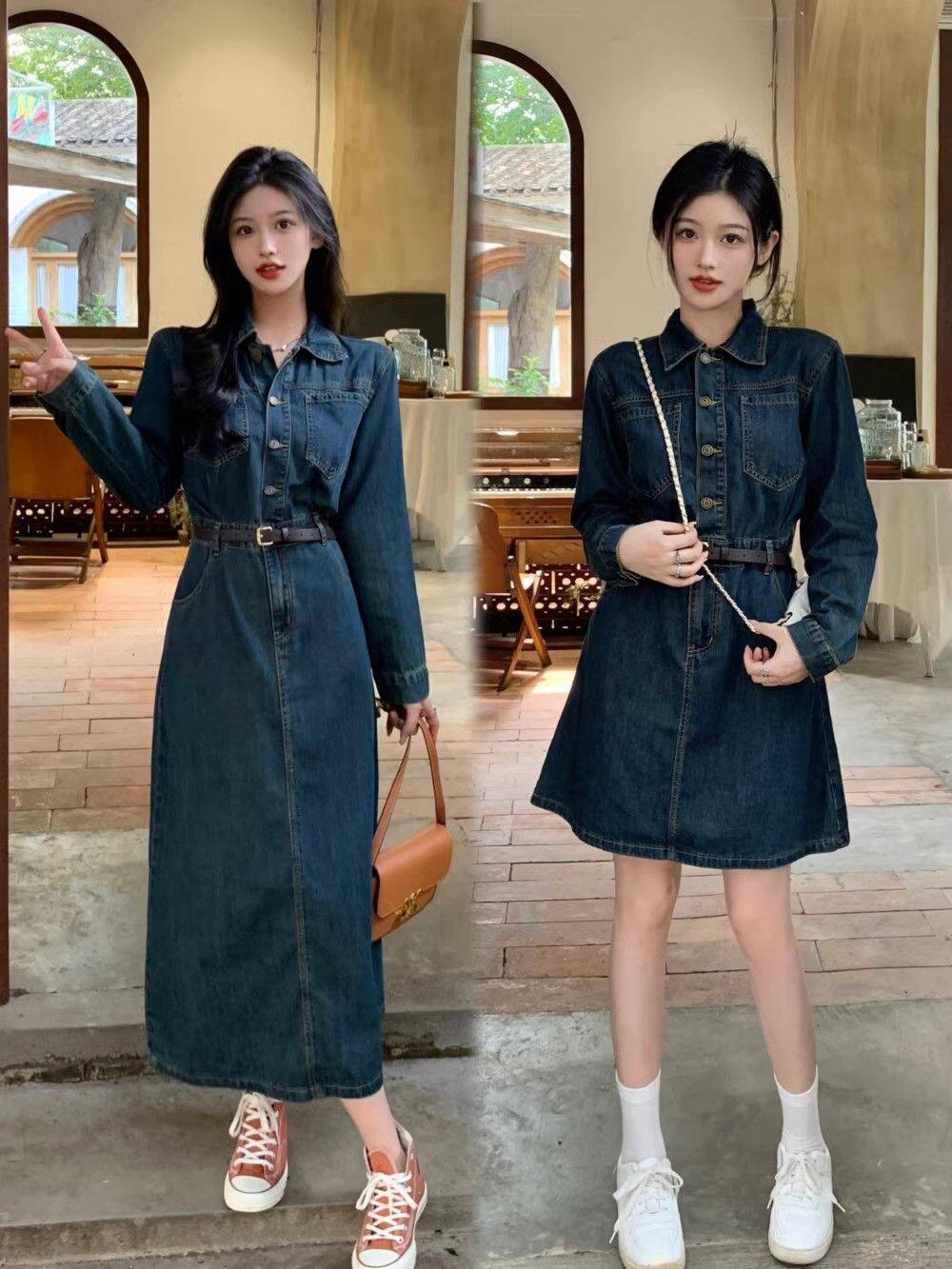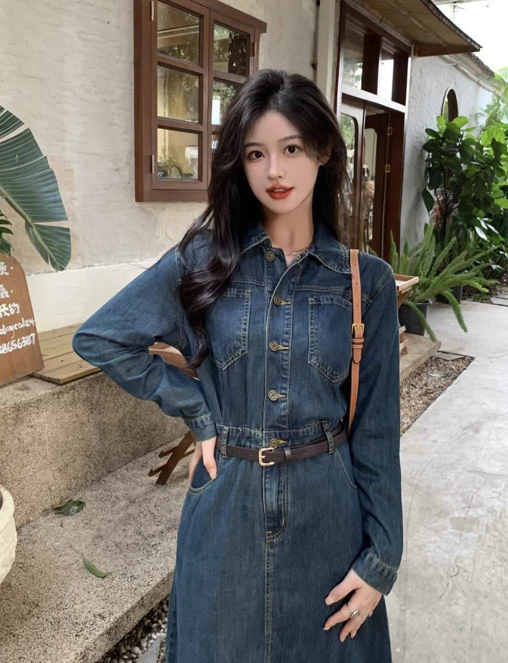 고급 센스 핫픽스 데님 반신 스커트 여성 2026 여름 새로운 하이웨이스트 슬림해 보이는 중간 길이 한 마디 트임 치마