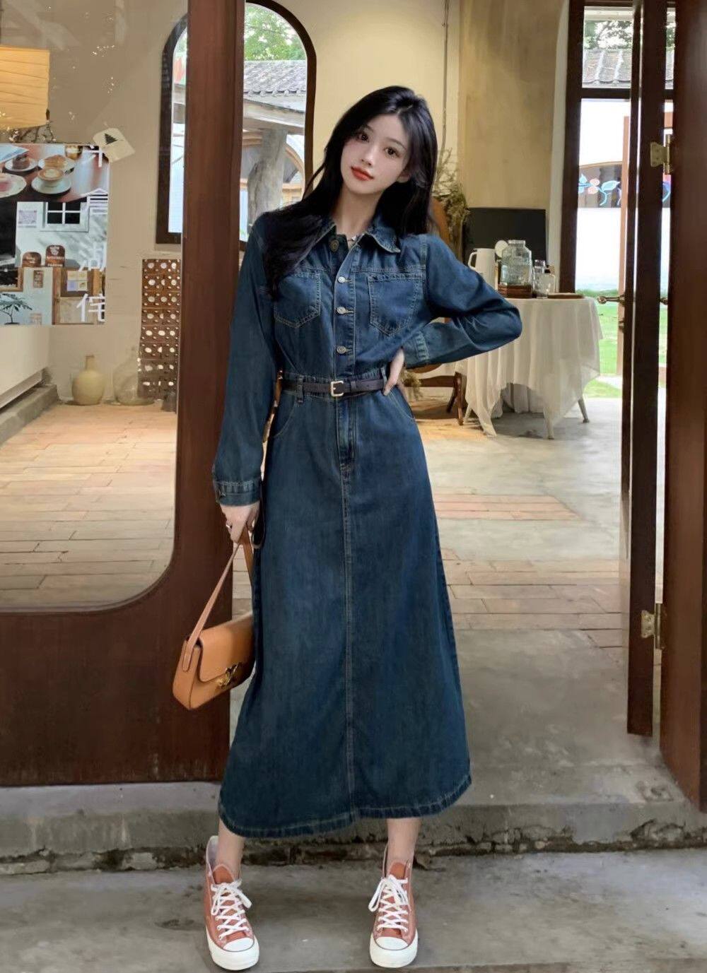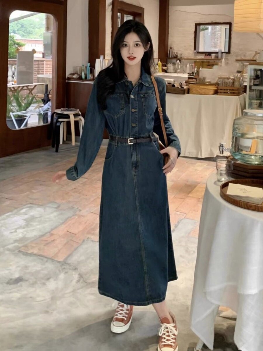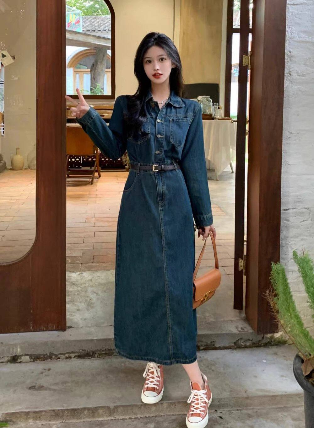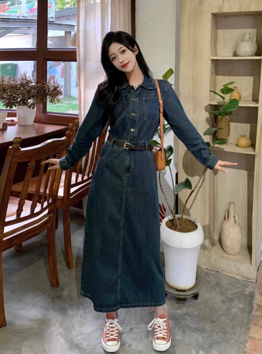 고급 센스 핫픽스 데님 반신 스커트 여성 2026 여름 새로운 하이웨이스트 슬림해 보이는 중간 길이 한 마디 트임 치마