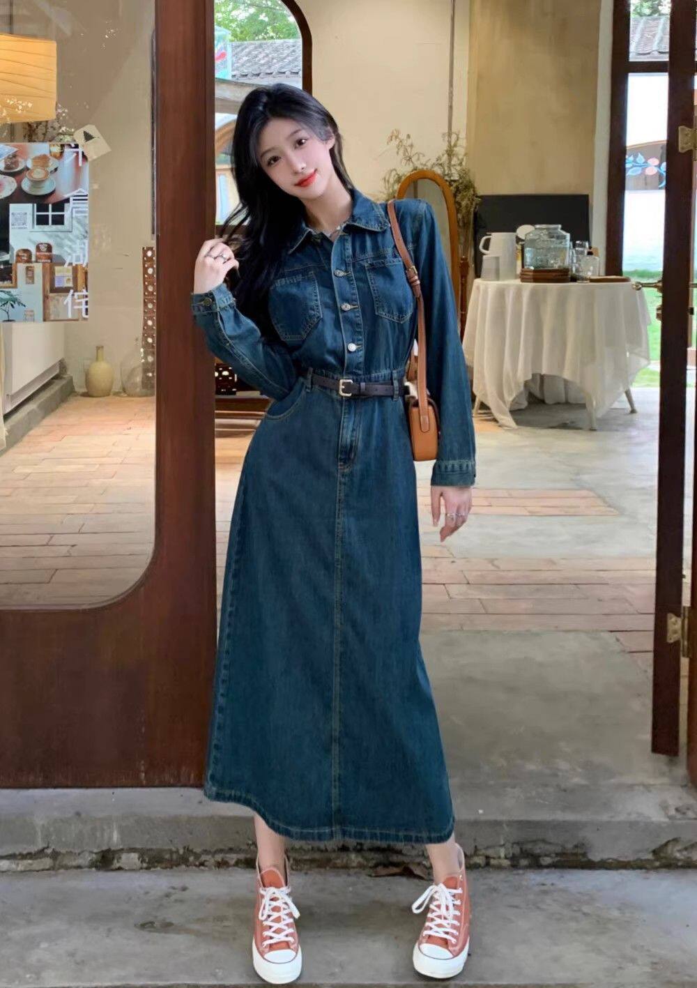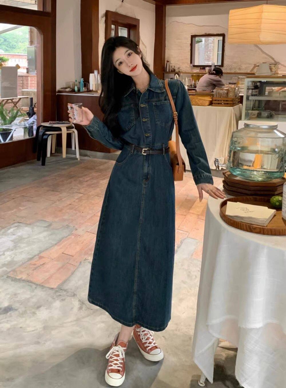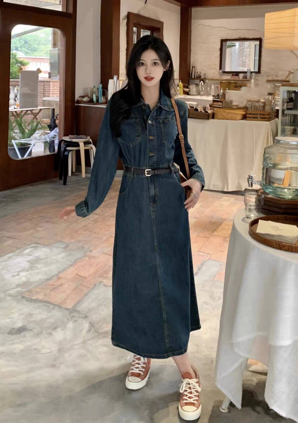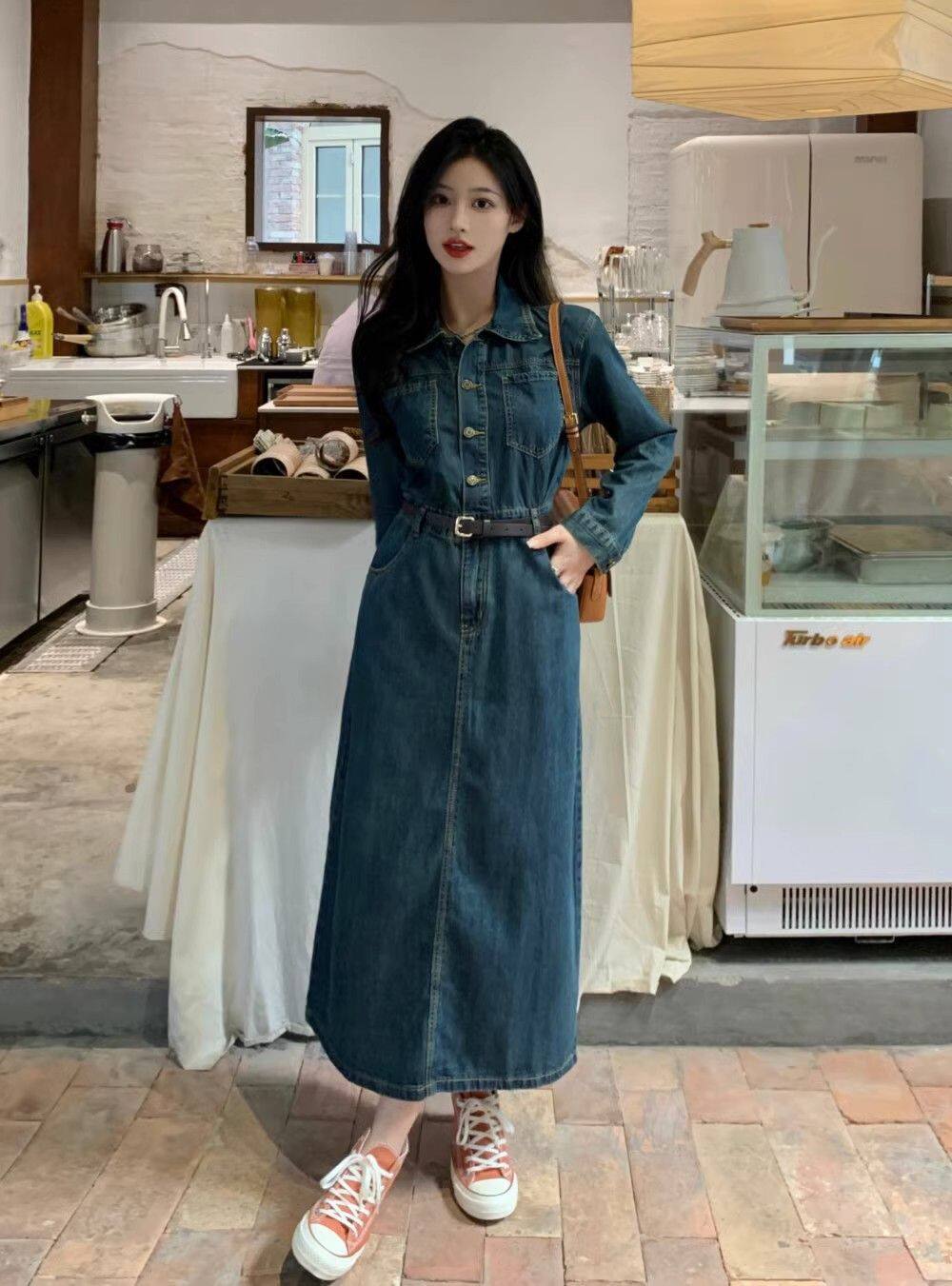 고급 센스 핫픽스 데님 반신 스커트 여성 2026 여름 새로운 하이웨이스트 슬림해 보이는 중간 길이 한 마디 트임 치마