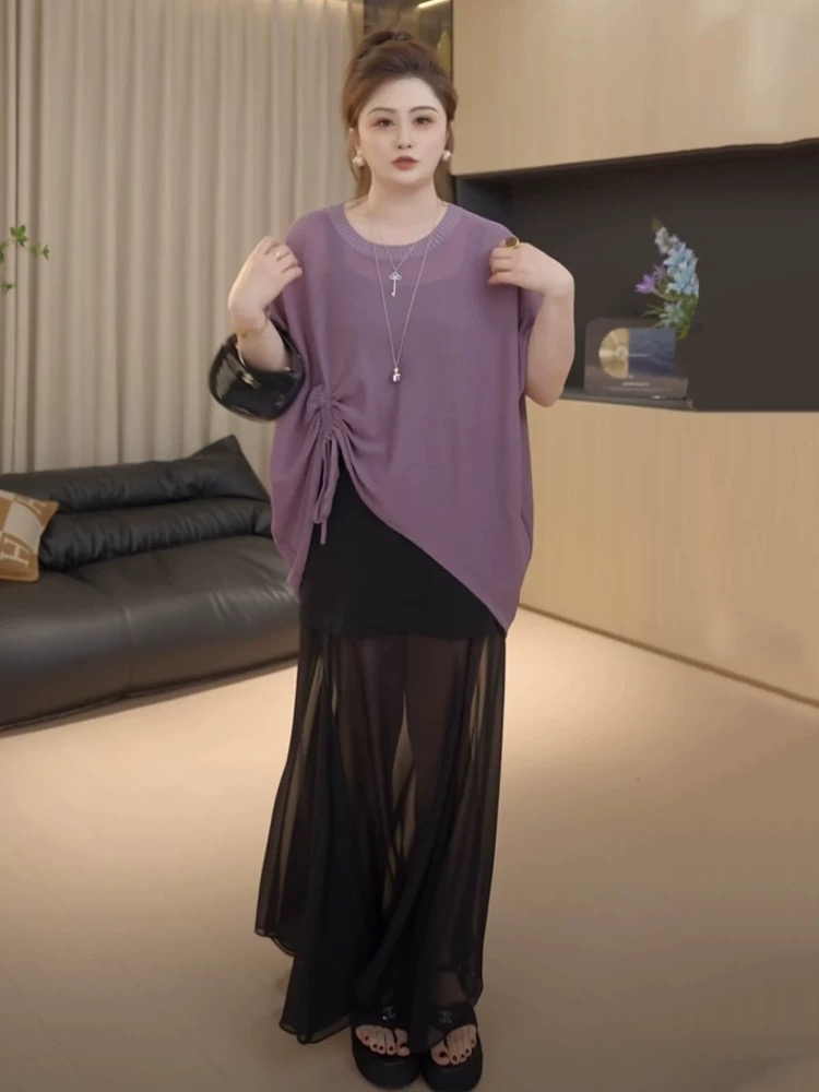 지방 지아 지아 지방 mm 빅 사이즈 여성 의류 부드러운 안개 티셔츠 여름 품격 캐주얼 질감 센스 반팔 레이스 맨위