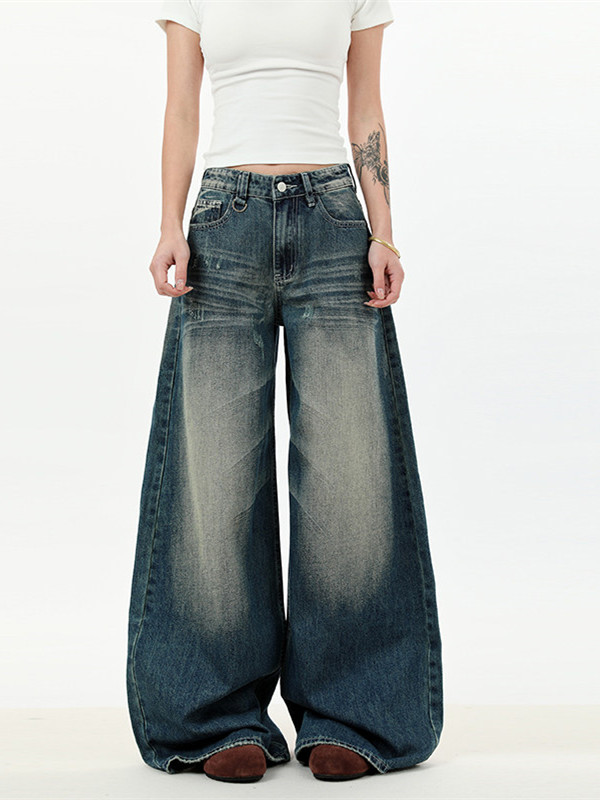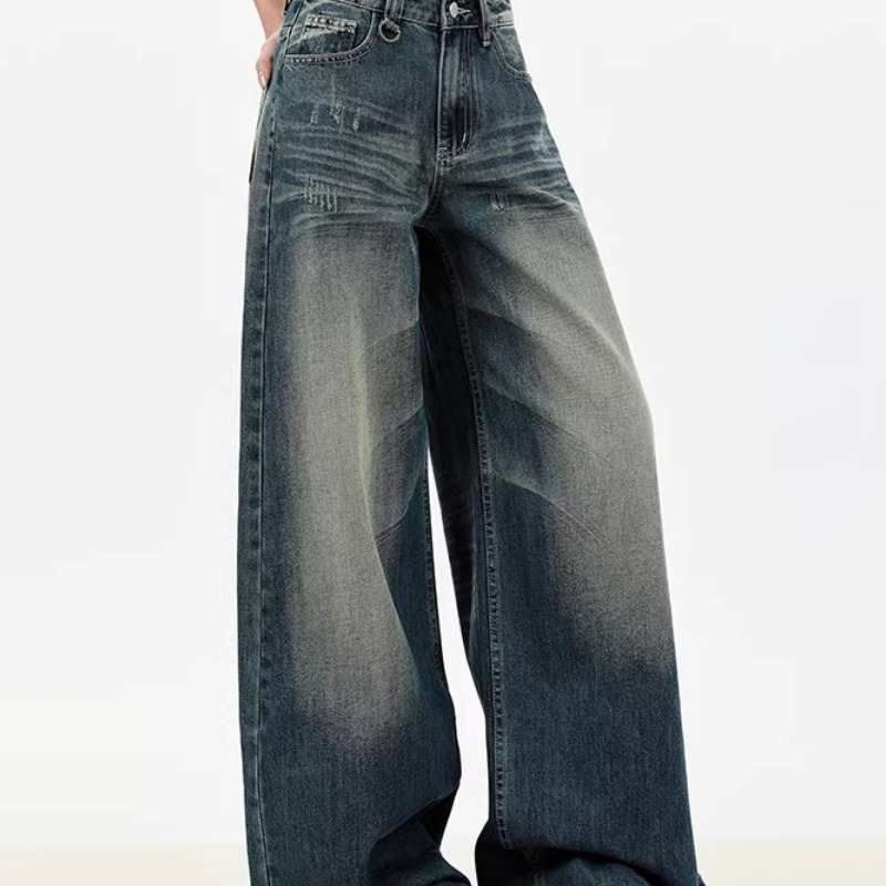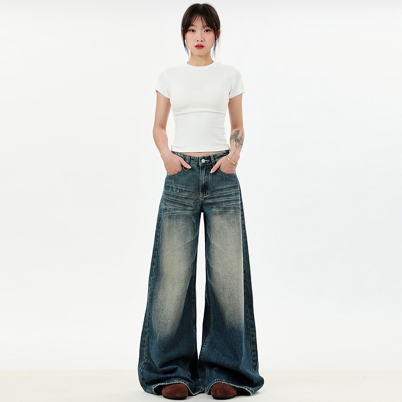 아메리칸 레트로 핫걸 로우 웨이스트 청바지 여성 2026 새로운 마 오래된 워싱 와이드 레그 팬츠 루즈핏 스트레이트 바닥 청소 바지