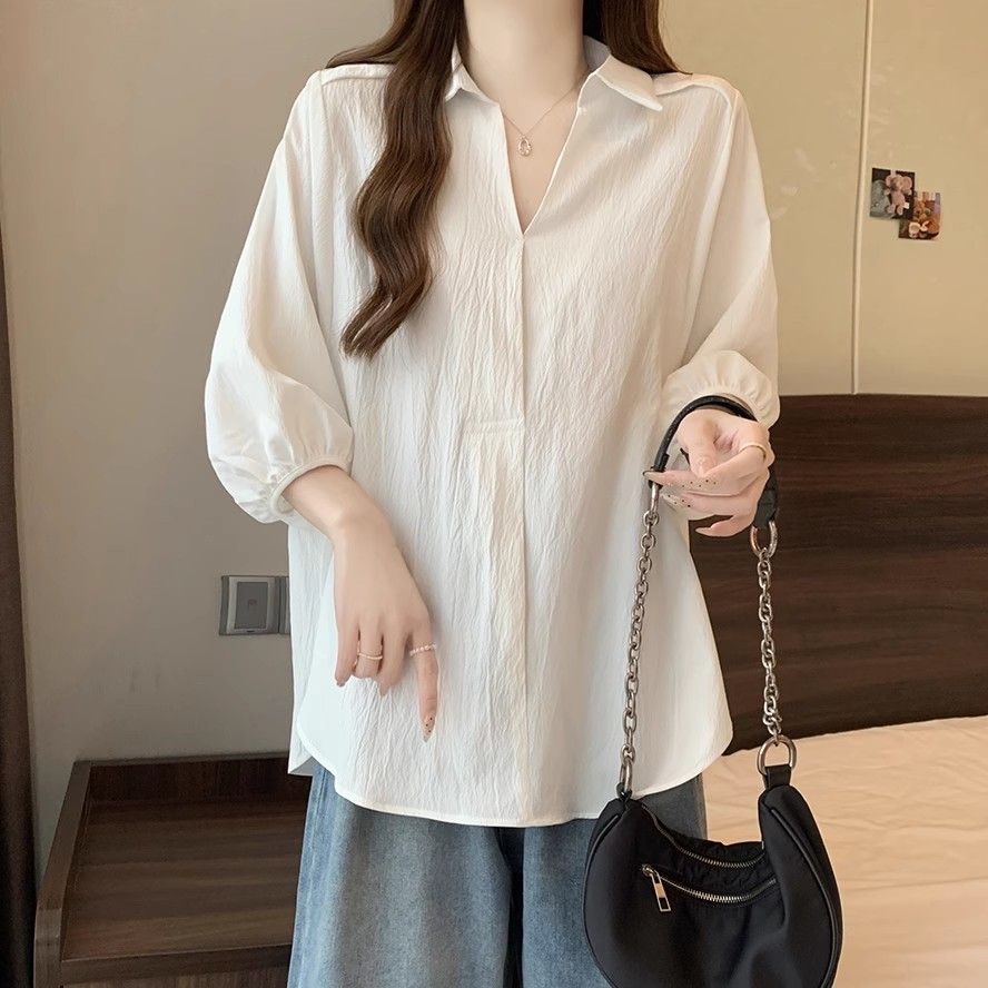쉬폰 여성 셔츠 루즈핏 표지 배 슬림해 보이는 외국 가스 맨위 레이스 기본 셔츠
