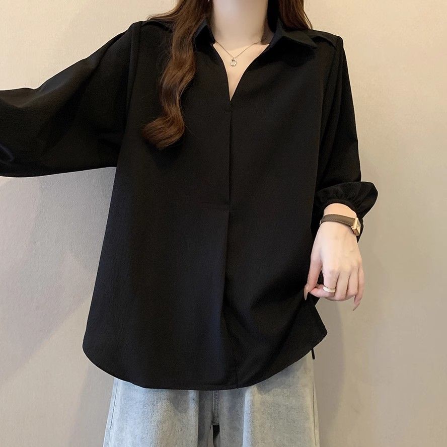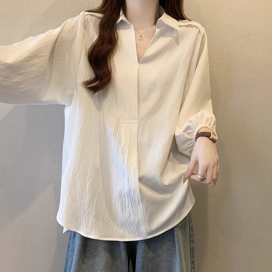 여성 셔츠 디자인 센스 작은 대중 2026 봄 가을 새로운 긴팔 경력 외국 가스 V넥 셔츠 품격 맨위 ins