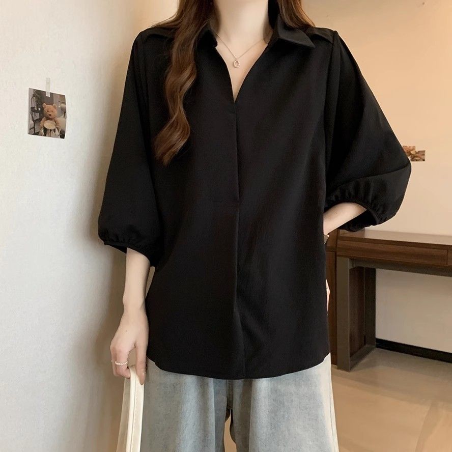 패션 POLO 칼라 반팔 여성 셔츠 2025 여름 새로운 디자인 센스 연령 감소 캐주얼 쇼트 스타일 셔츠 루즈핏 맨위