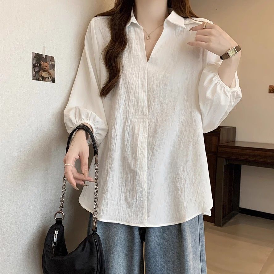 대외 무역 봄 가을 주름 거품 소매 루즈핏 셔츠 인형 셔츠 맨위 여성