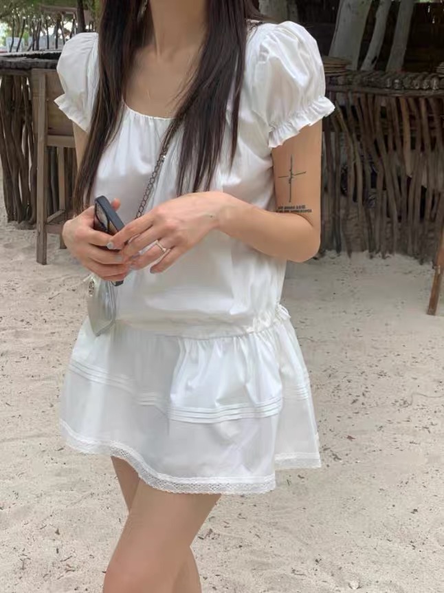 실사 여름 드레스 거품 소매 드레스 그는 벤 바람 프랑스식 고급 센스 디자인 센스 작은 대중 롱 스커트 m-4xl200 근