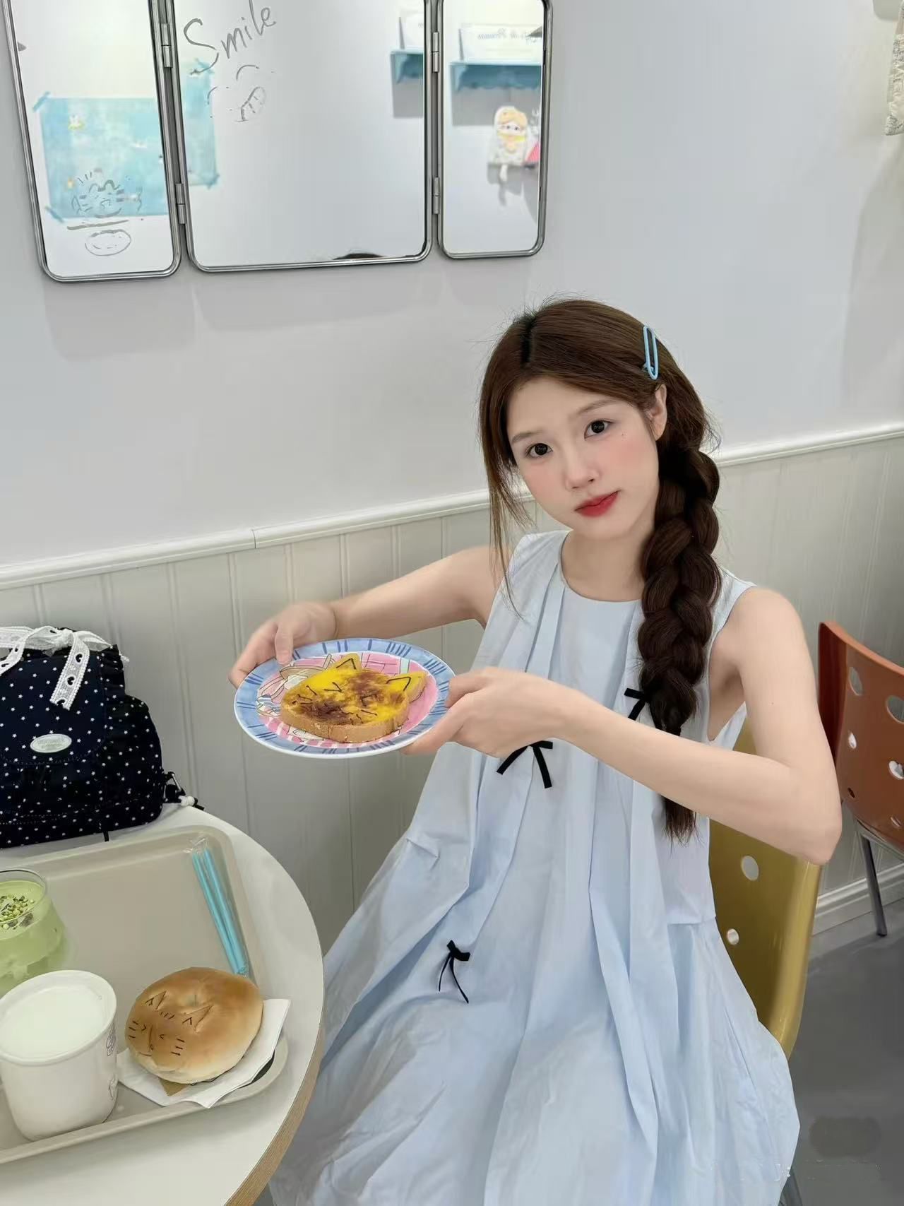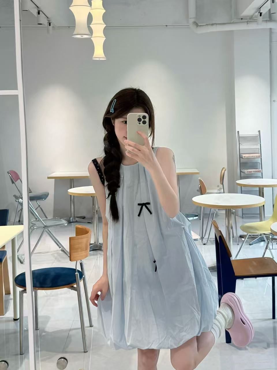 원본 것 네리 프랑스식 품격 민소매 슬림해 보이는 드레스 작은 키 첫사랑 인형 치마 꽃밭 미니 스커트