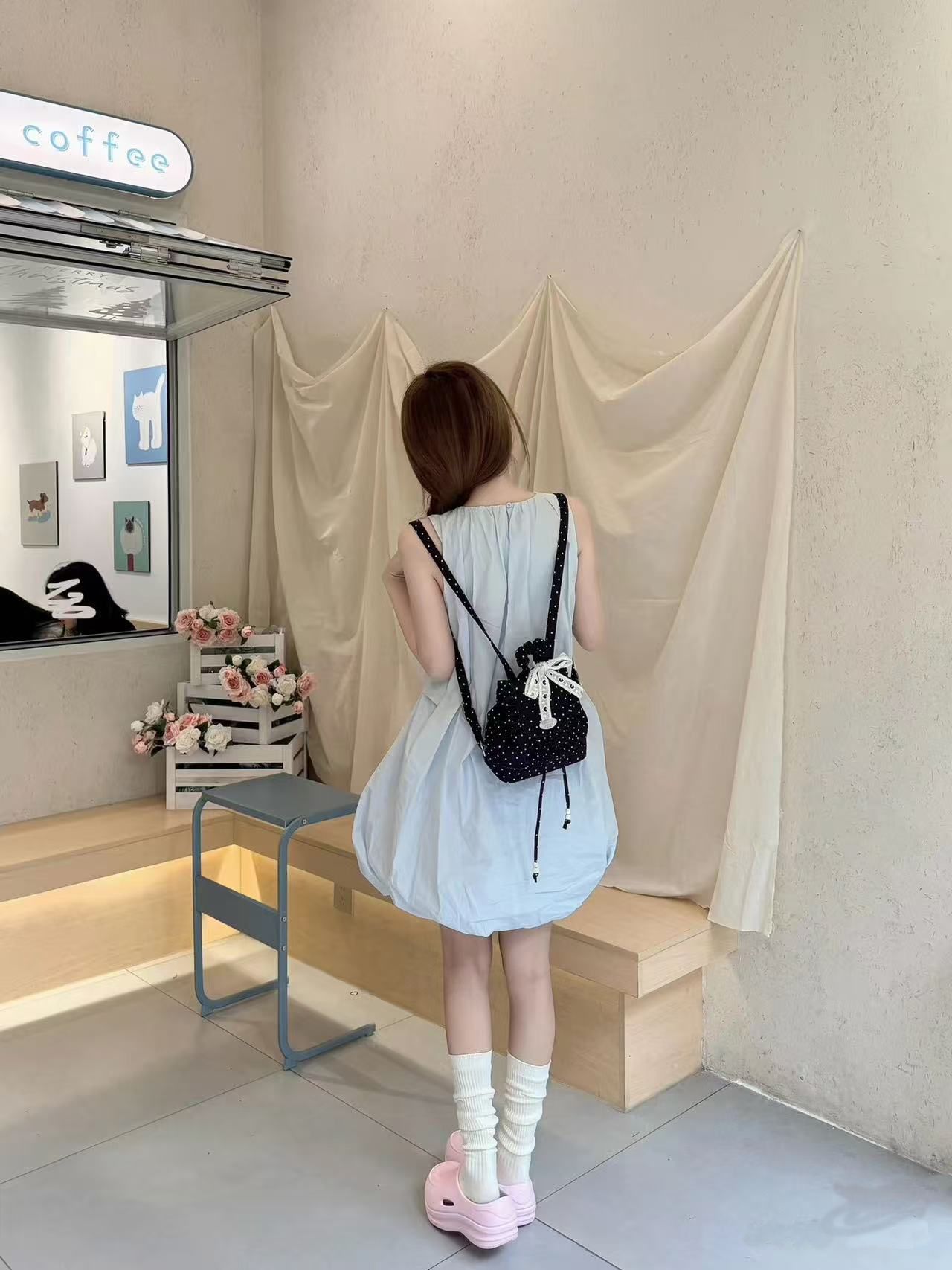 프랑스식 도트 무늬 드레스 여성 의류 여름 고급 센스 해변가 휴가 작은 날다 소매 품격 허리 수축 a 단어 길이 치마
