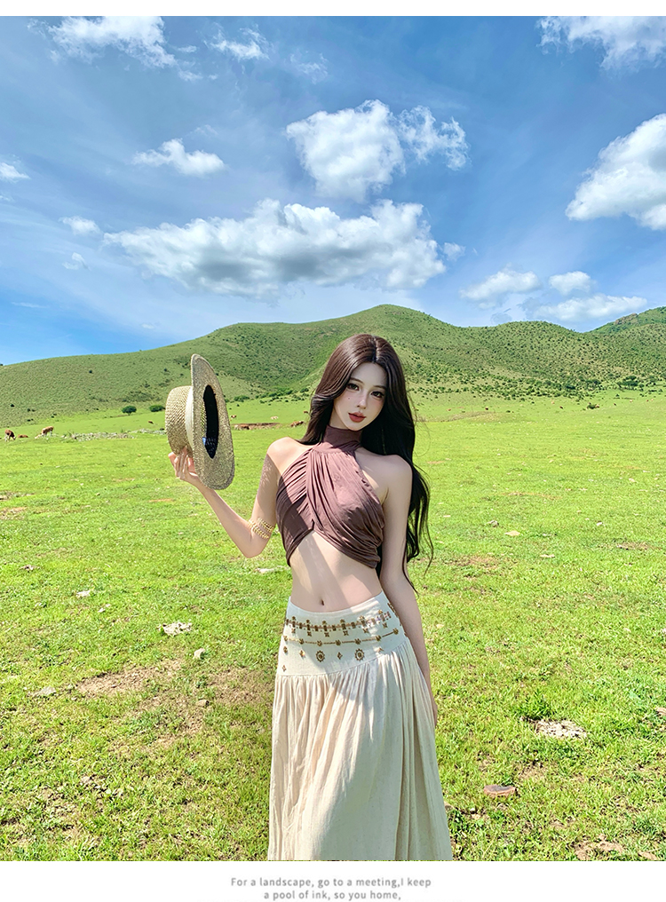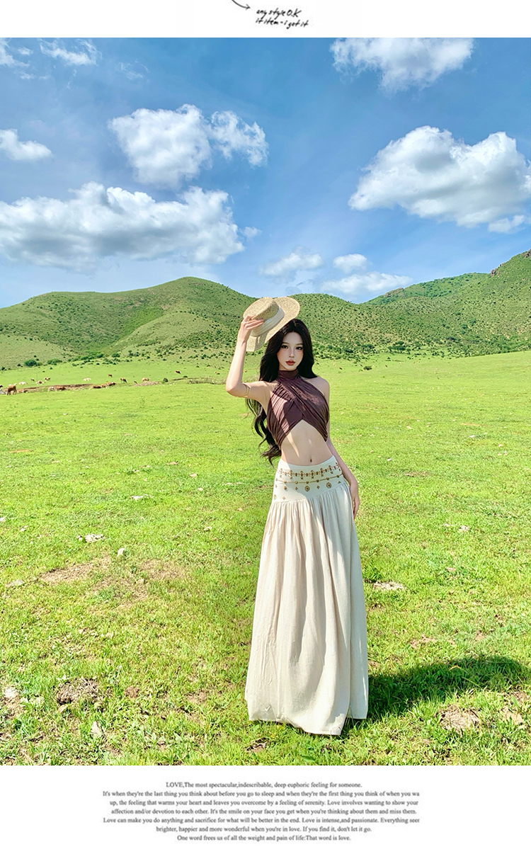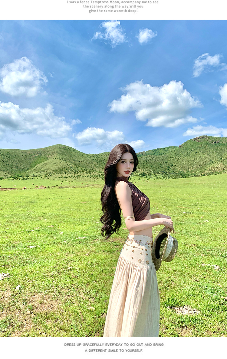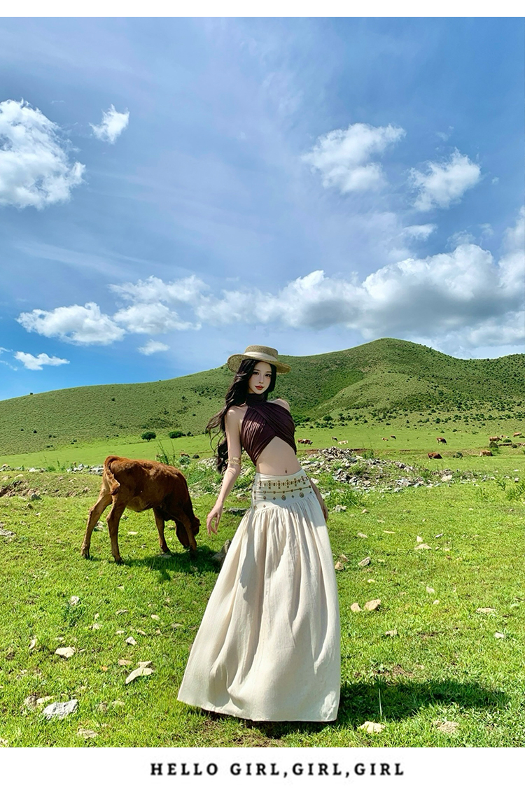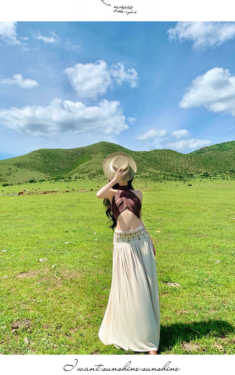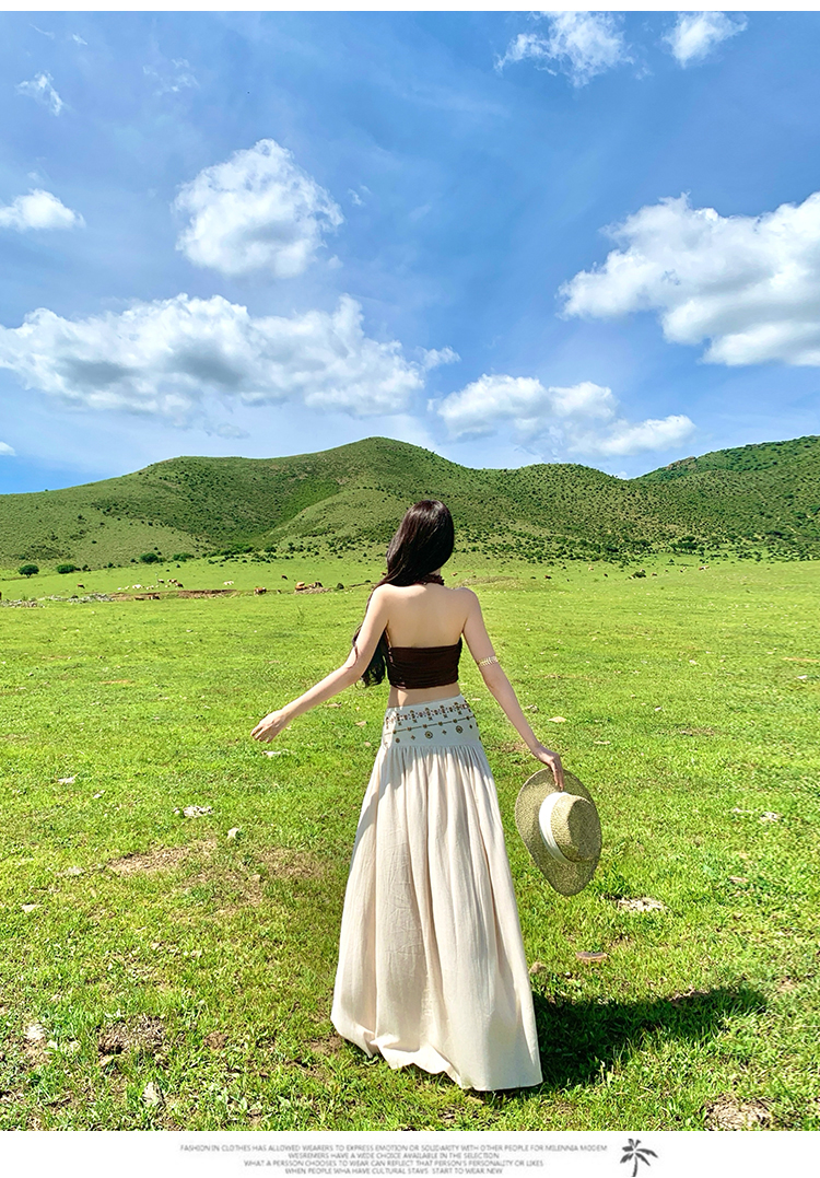 웨이브 키스 하얀 모래 화이트 튜브탑 반 스커트 세트 여성 핫걸 로우 웨이스트 롱 스커트 휴가 투피스 세트