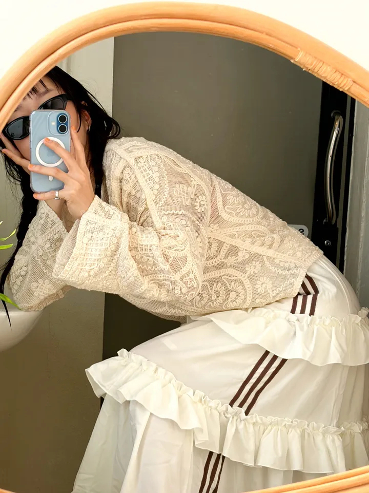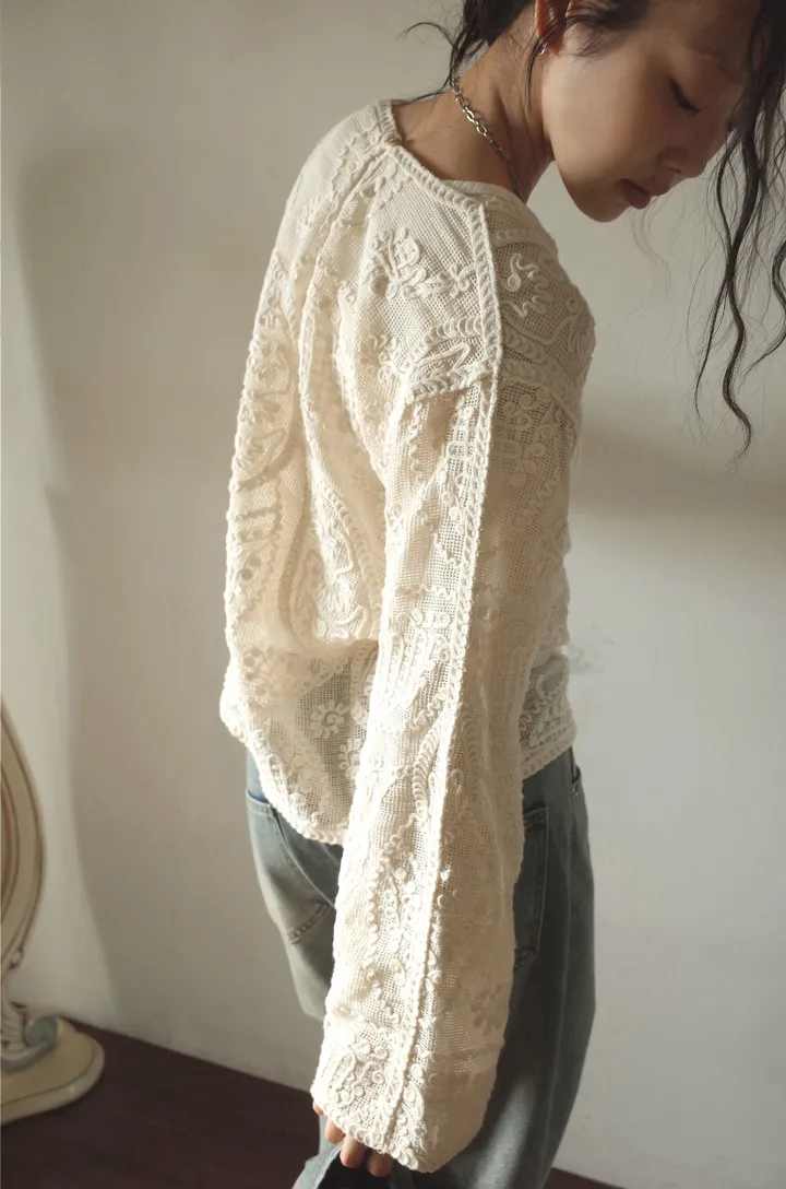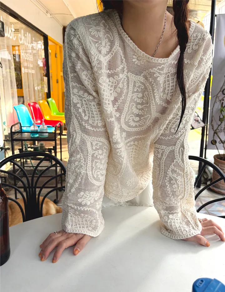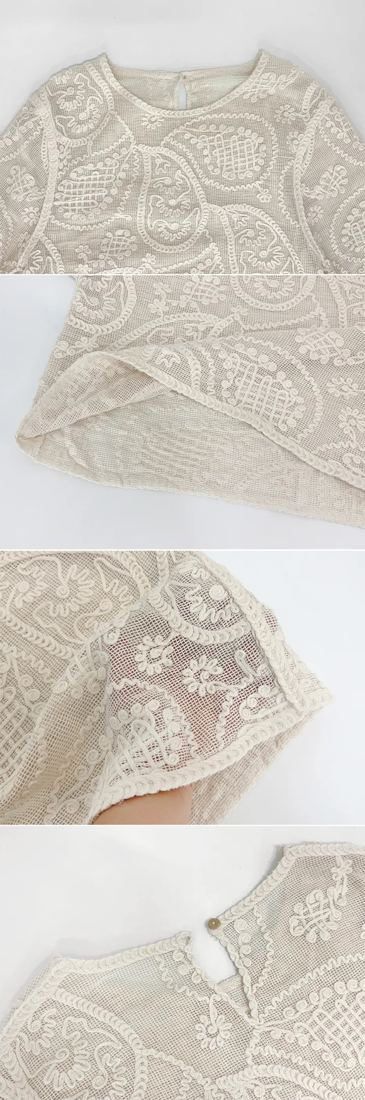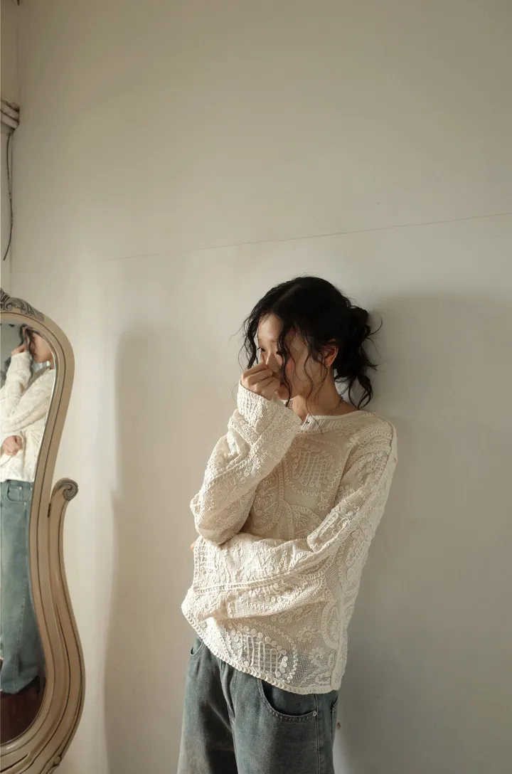 순수한 욕망 바람 얇은 스타일 마이크로 ~을 통해 슬림해 보이는 루즈핏 레이스 셔츠