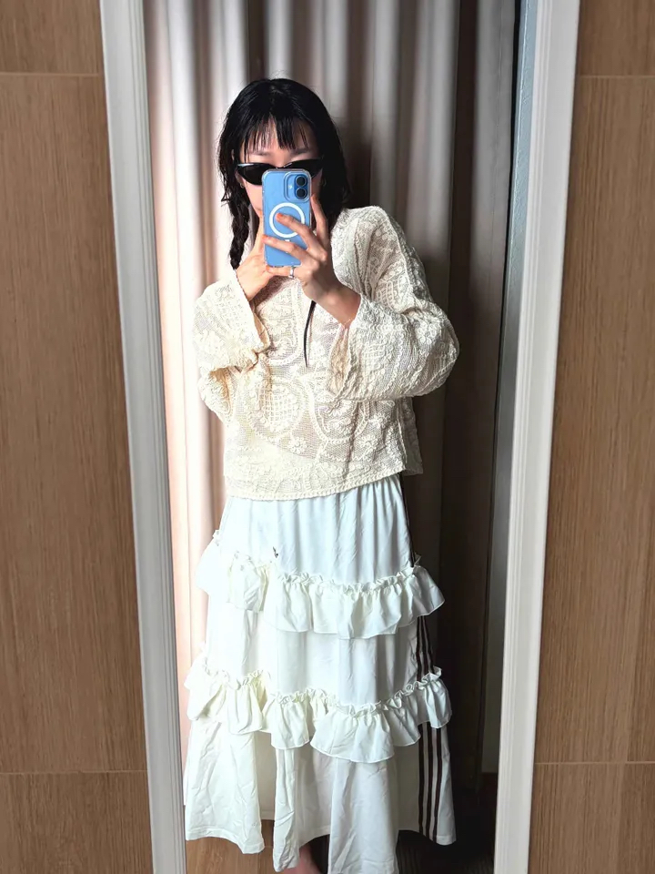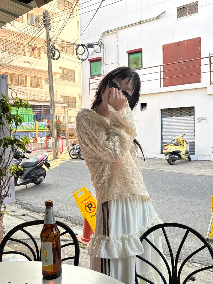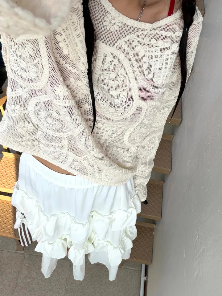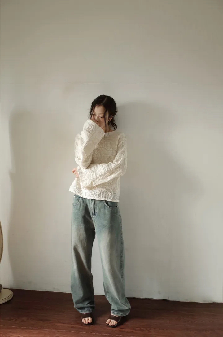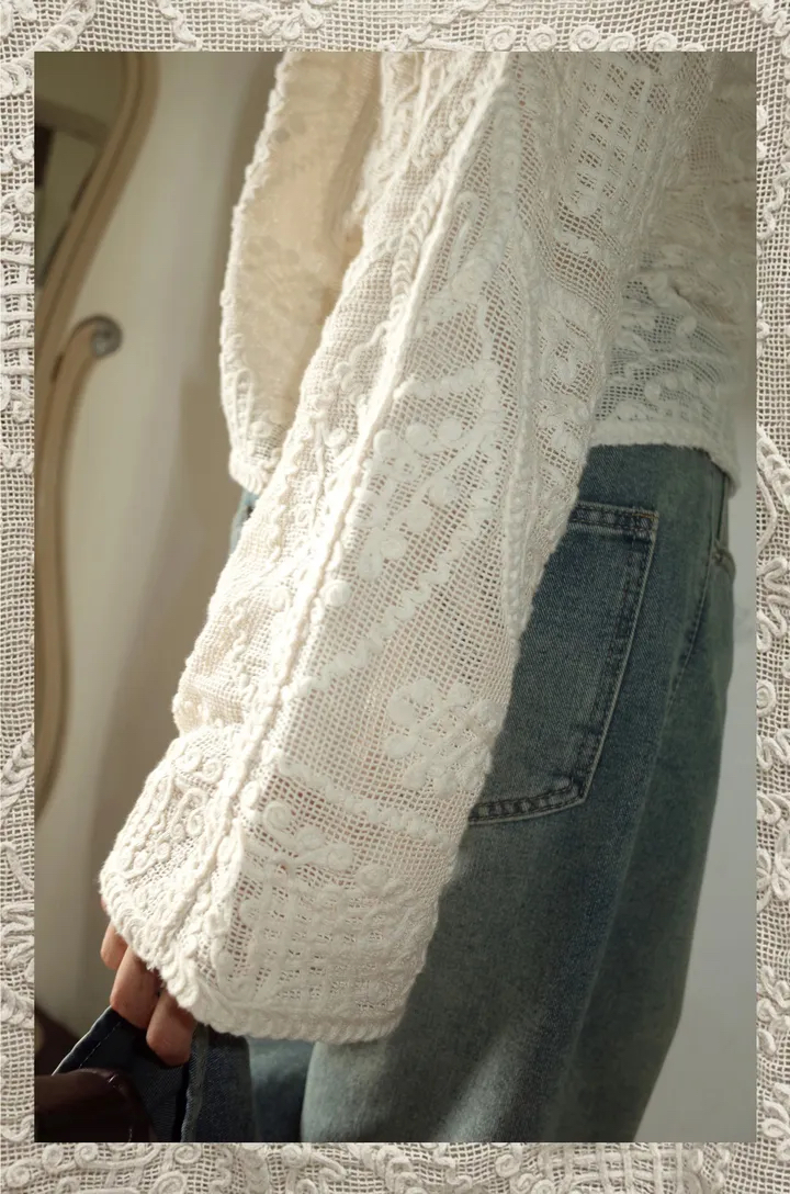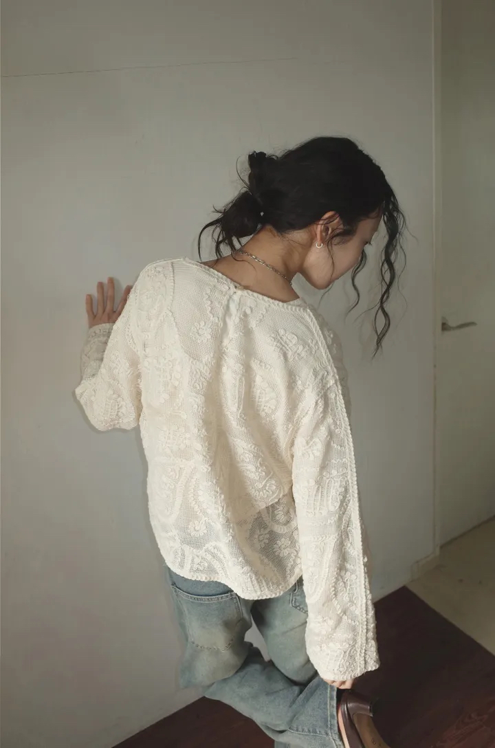 순수한 욕망 바람 얇은 스타일 마이크로 ~을 통해 슬림해 보이는 루즈핏 레이스 셔츠