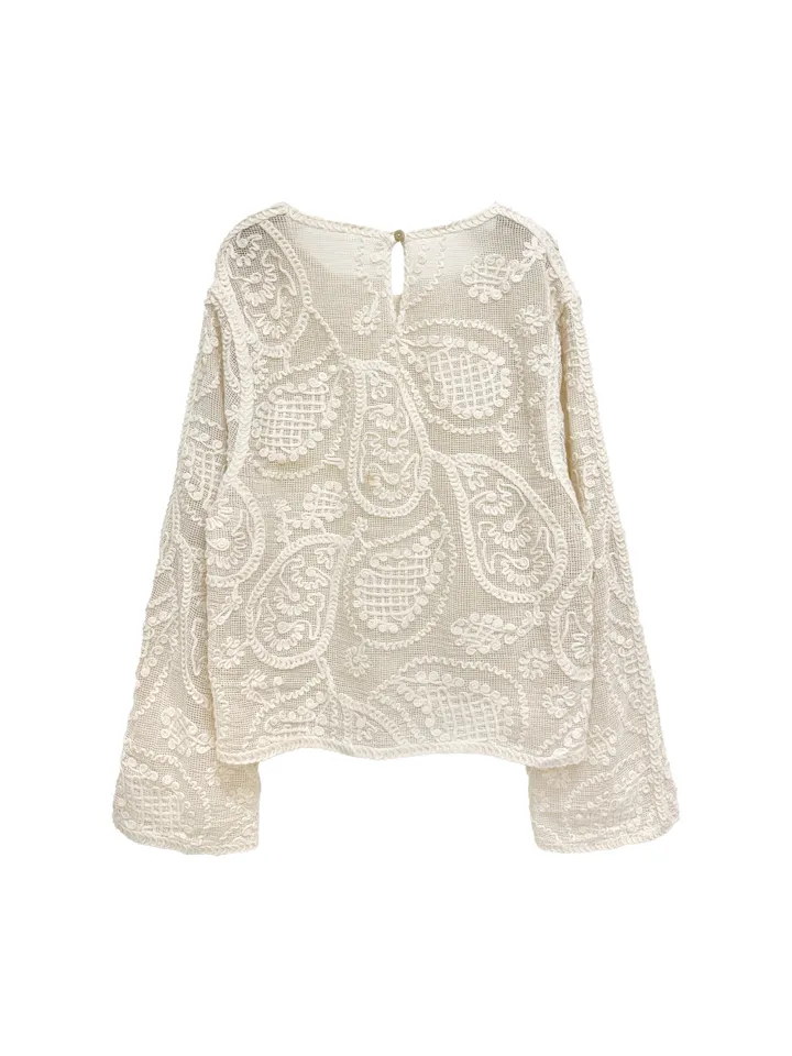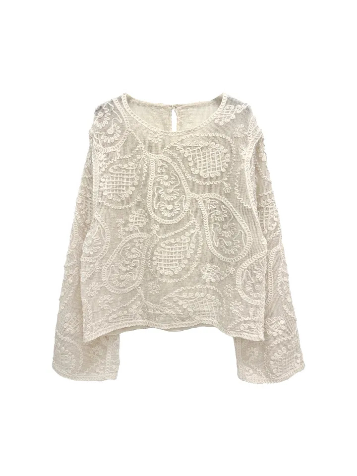한 부서 높은 품질 면사 다용도 레트로 스타일 홀로우 아웃 자수 작은 셔츠