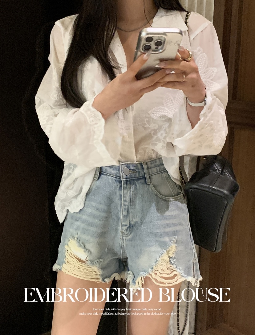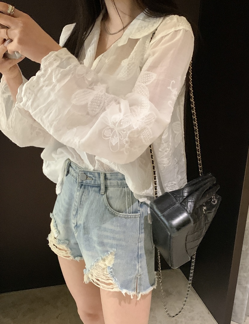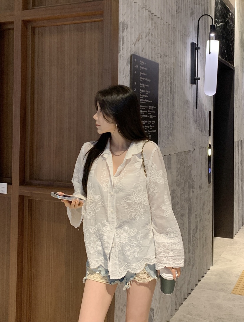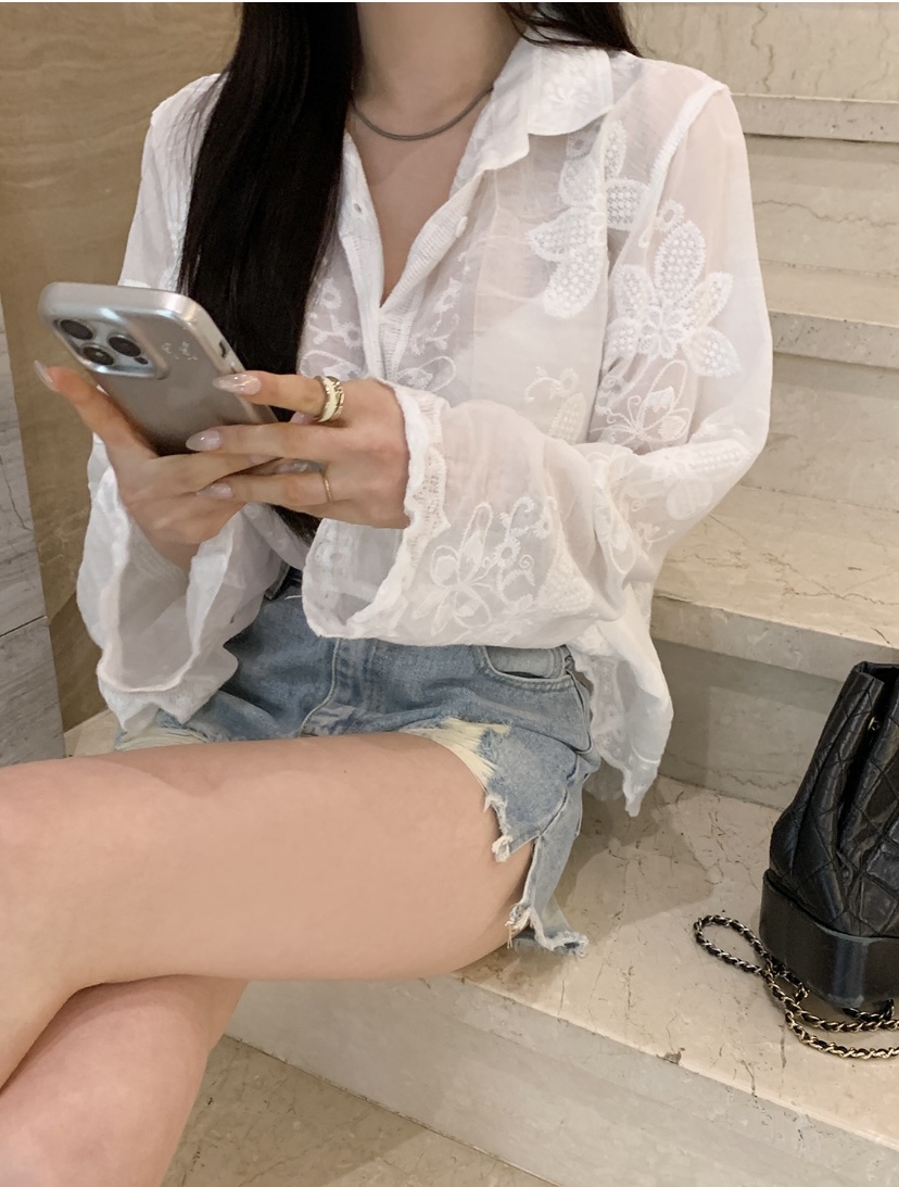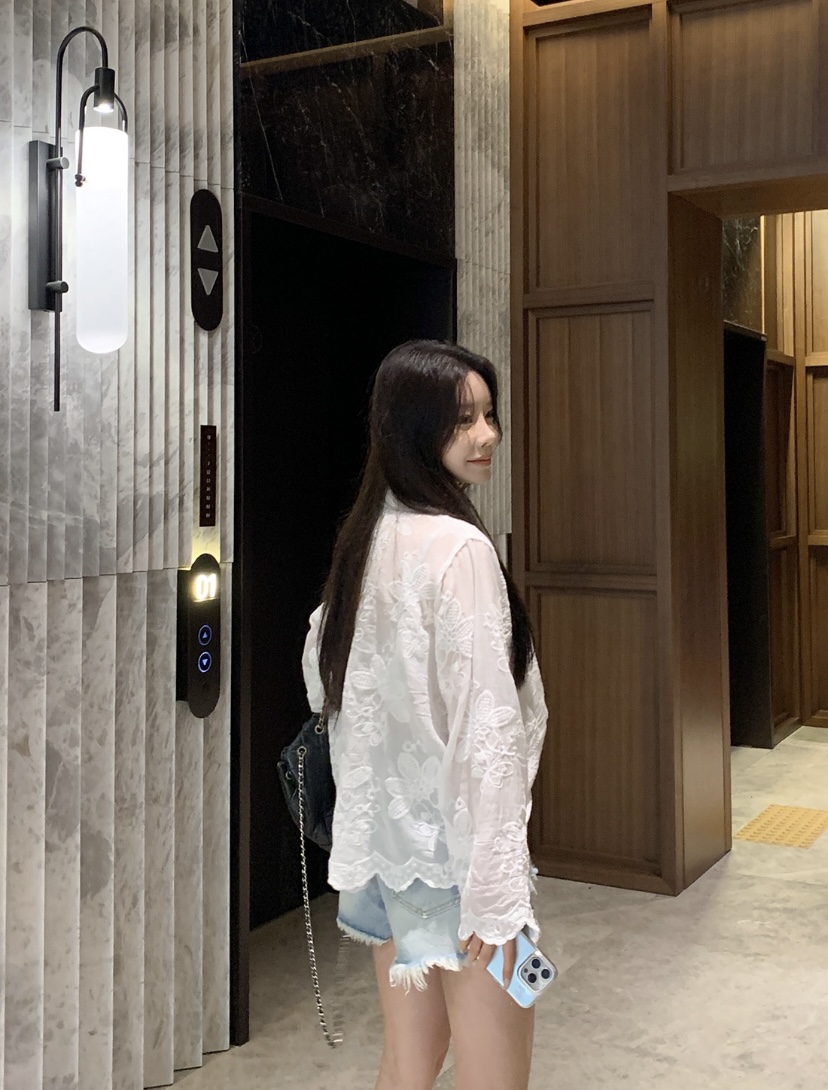 2026 년 조기 봄 한 부서 패션 새로운 고급 센스 물 용해 자수 자외선 차단 작은 셔츠 캐미솔 세트 여성