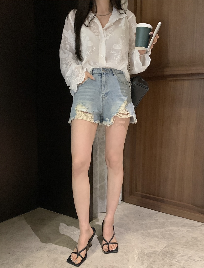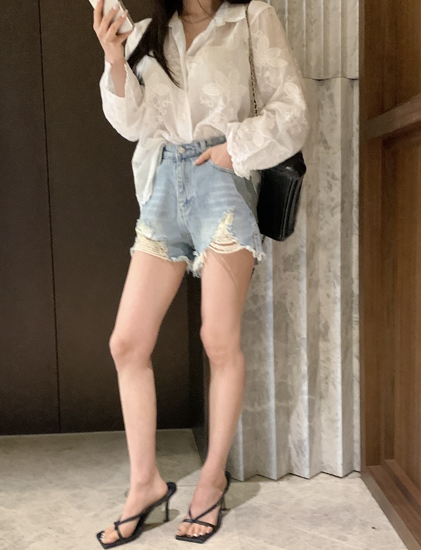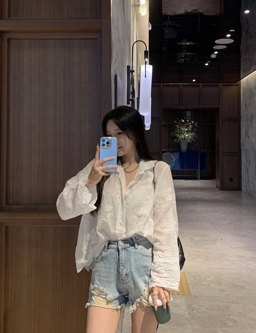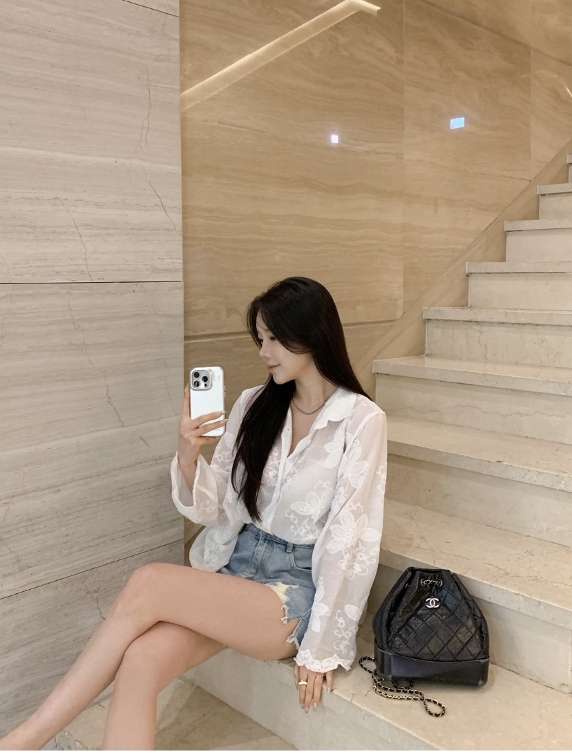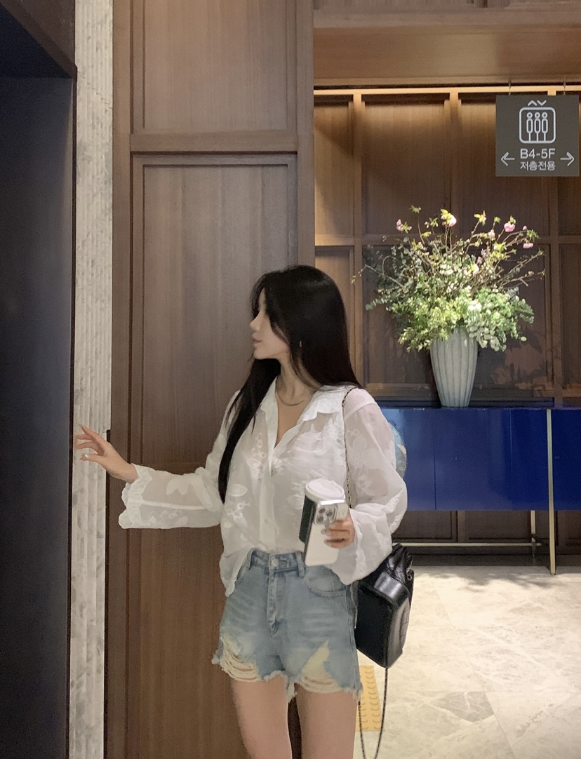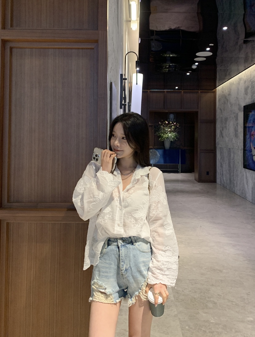 2026 년 조기 봄 한 부서 패션 새로운 고급 센스 물 용해 자수 자외선 차단 작은 셔츠 캐미솔 세트 여성