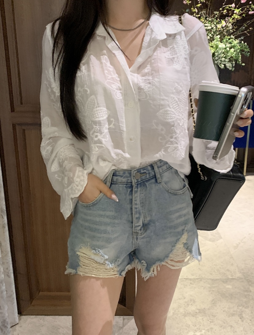 한 부서 높은 품질 면사 다용도 레트로 스타일 홀로우 아웃 자수 작은 셔츠