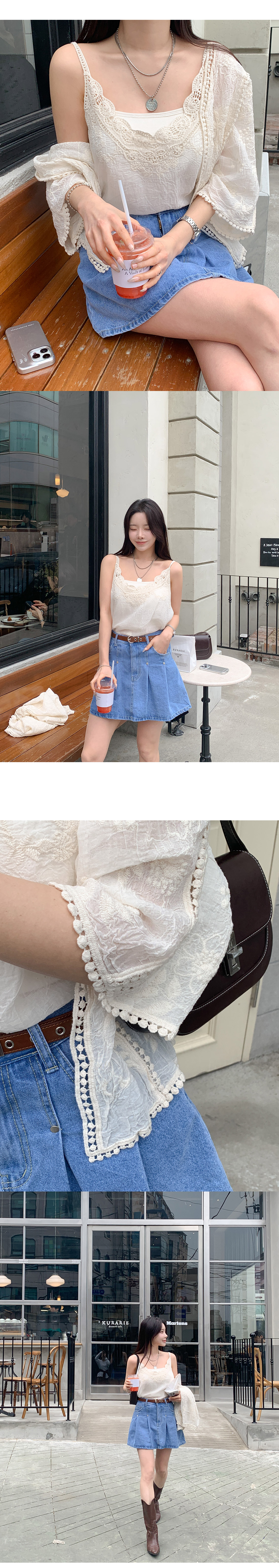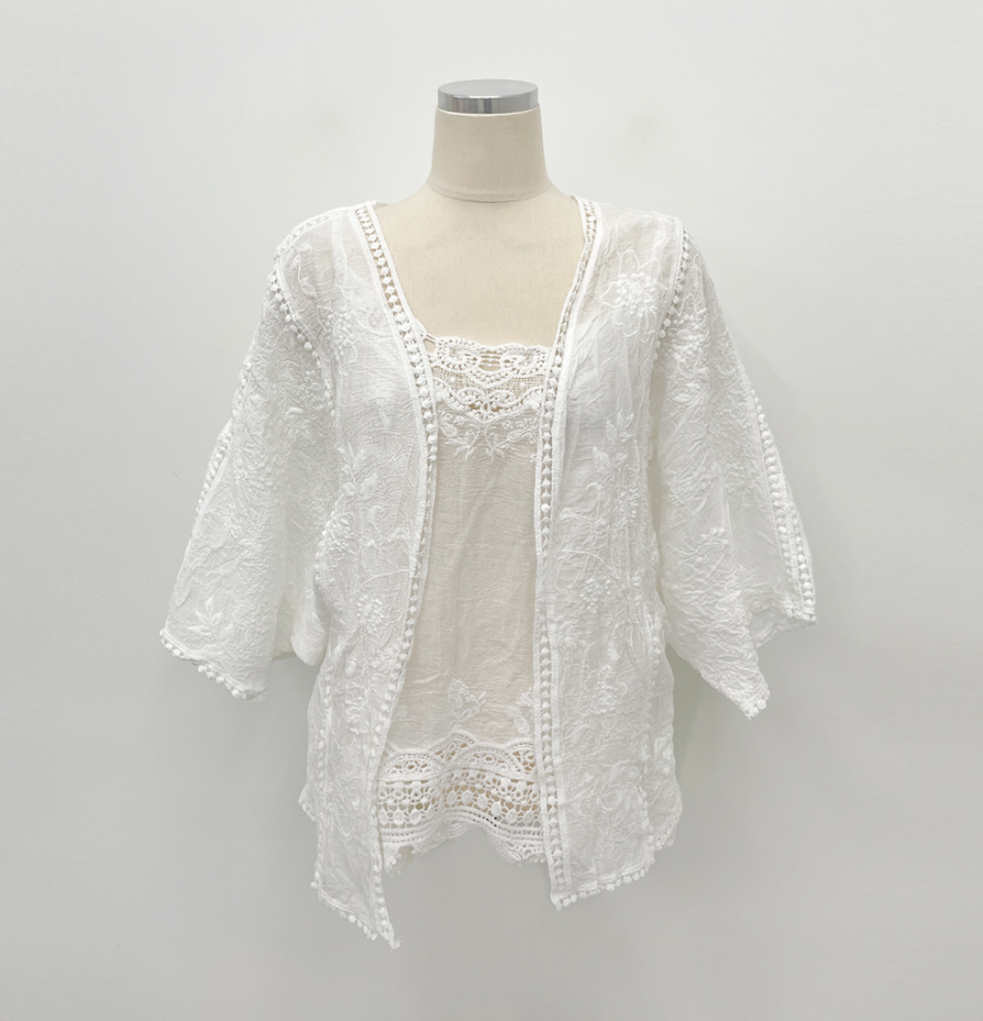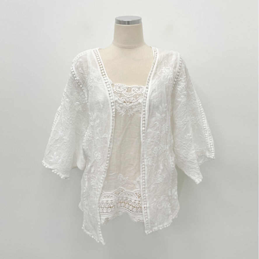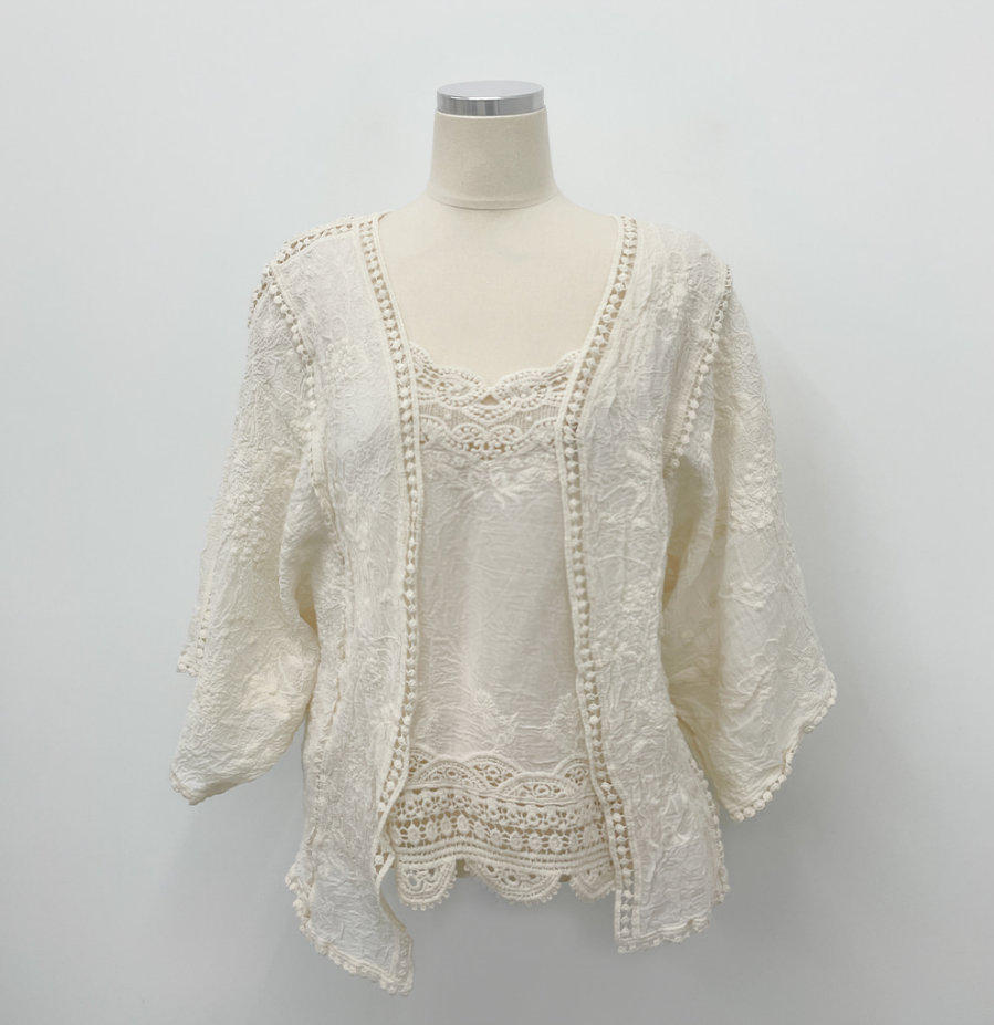 2026 년 조기 봄 한 부서 패션 새로운 고급 센스 물 용해 자수 자외선 차단 작은 셔츠 캐미솔 세트 여성
