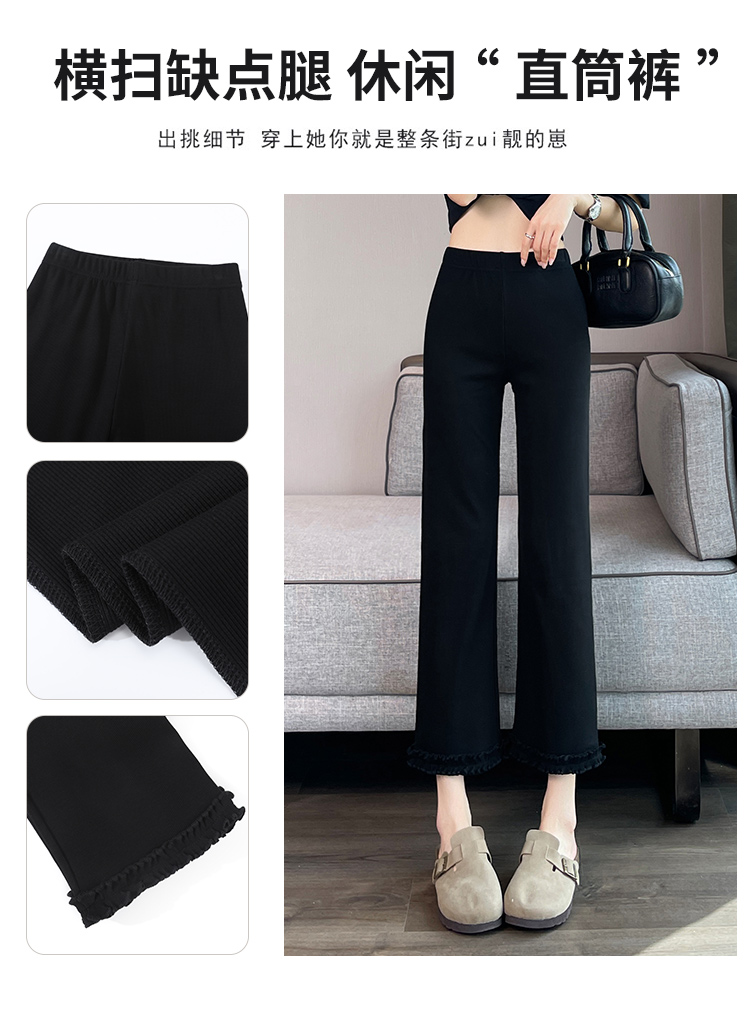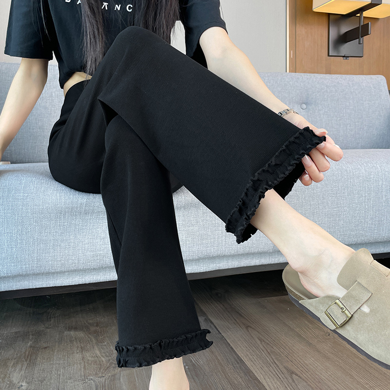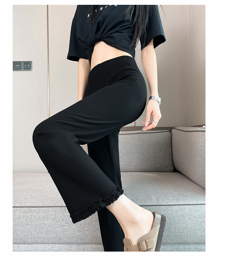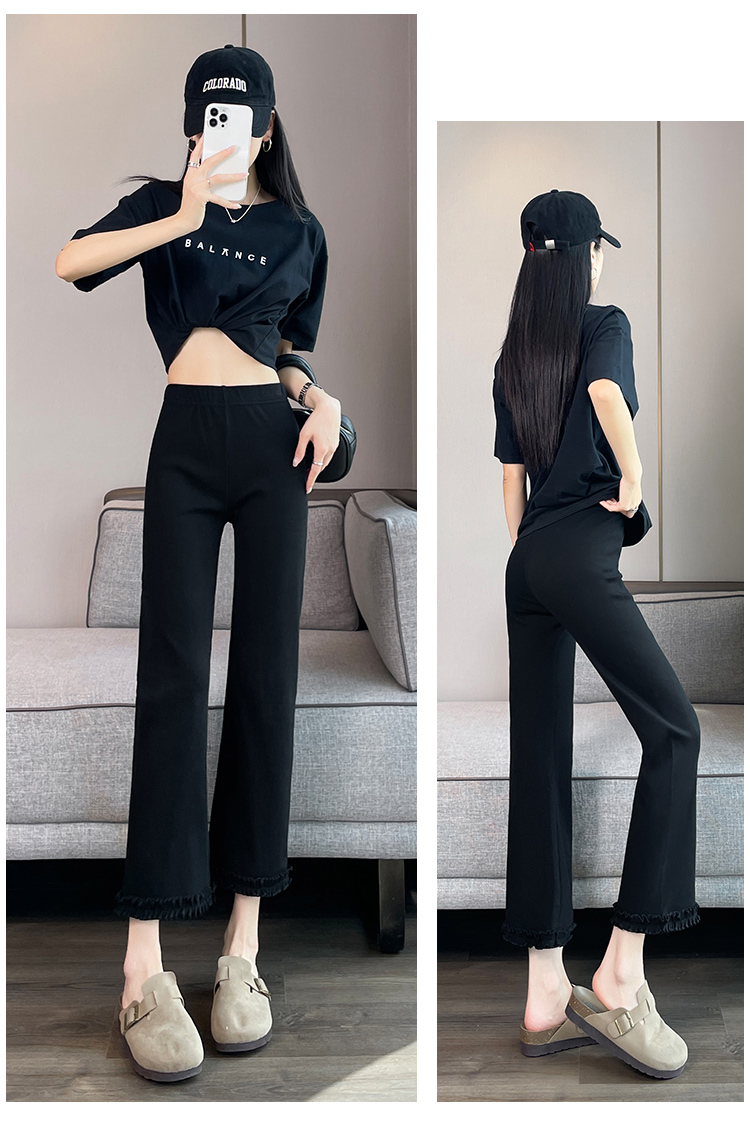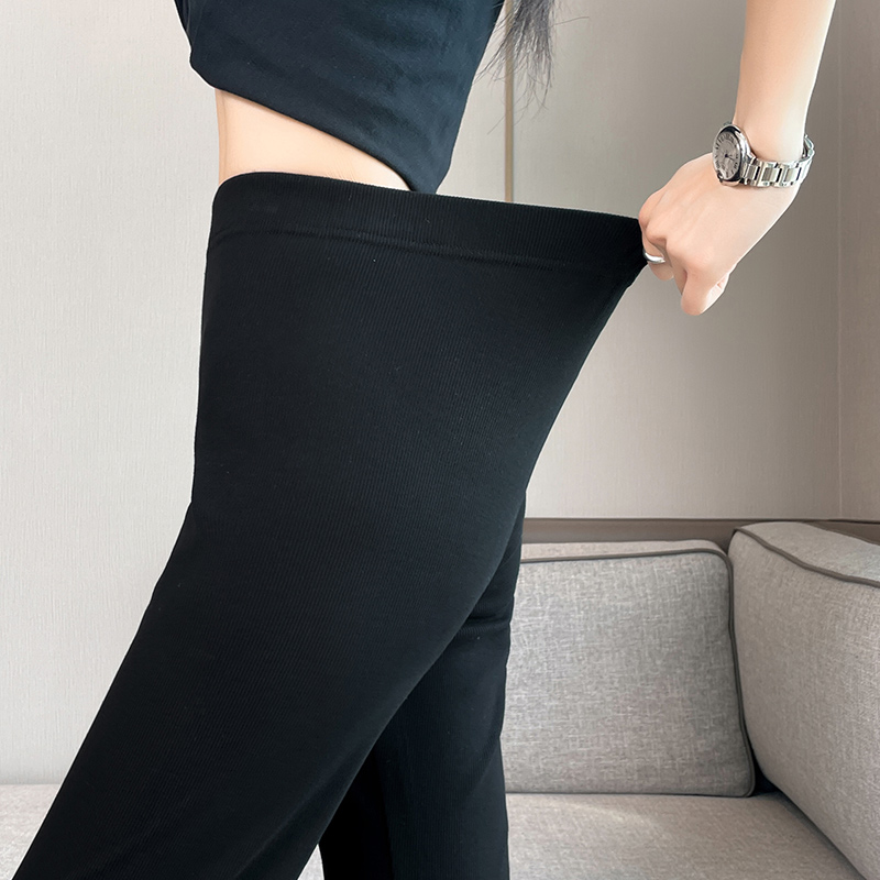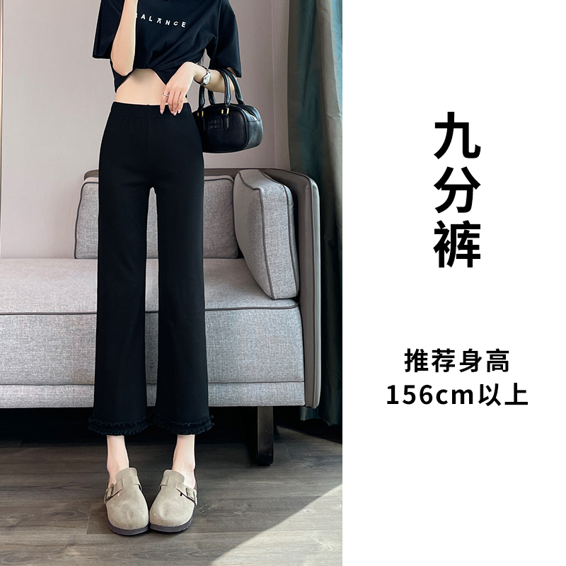 실제 촬영 2025 새로운 와일드 레이스 나인 바지 봄과 여름 새로운 여자 탄력성 블랙 마이크로 여가 슬림 바지