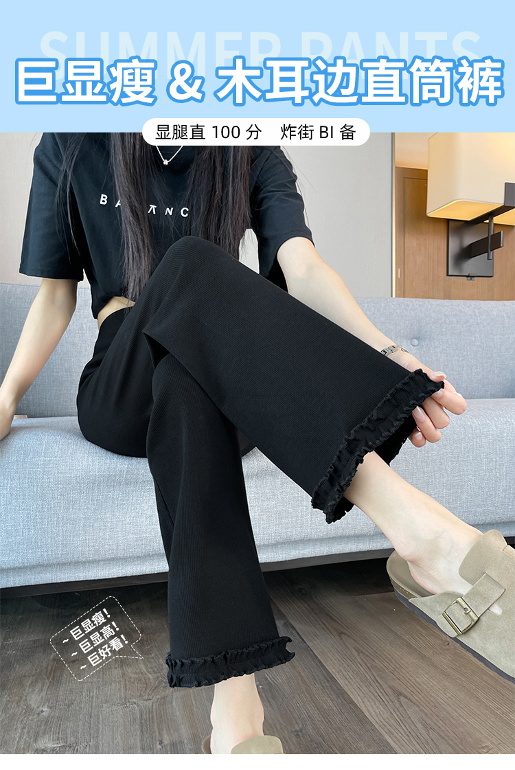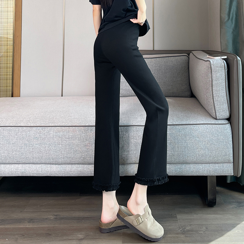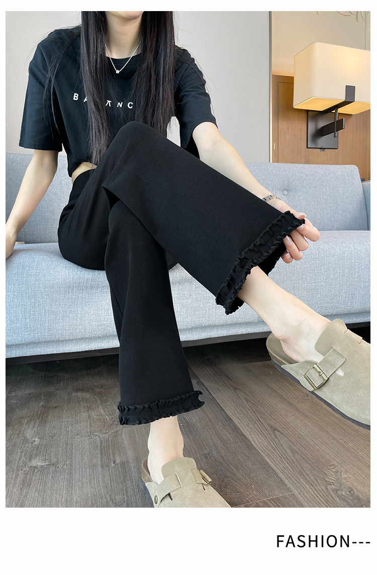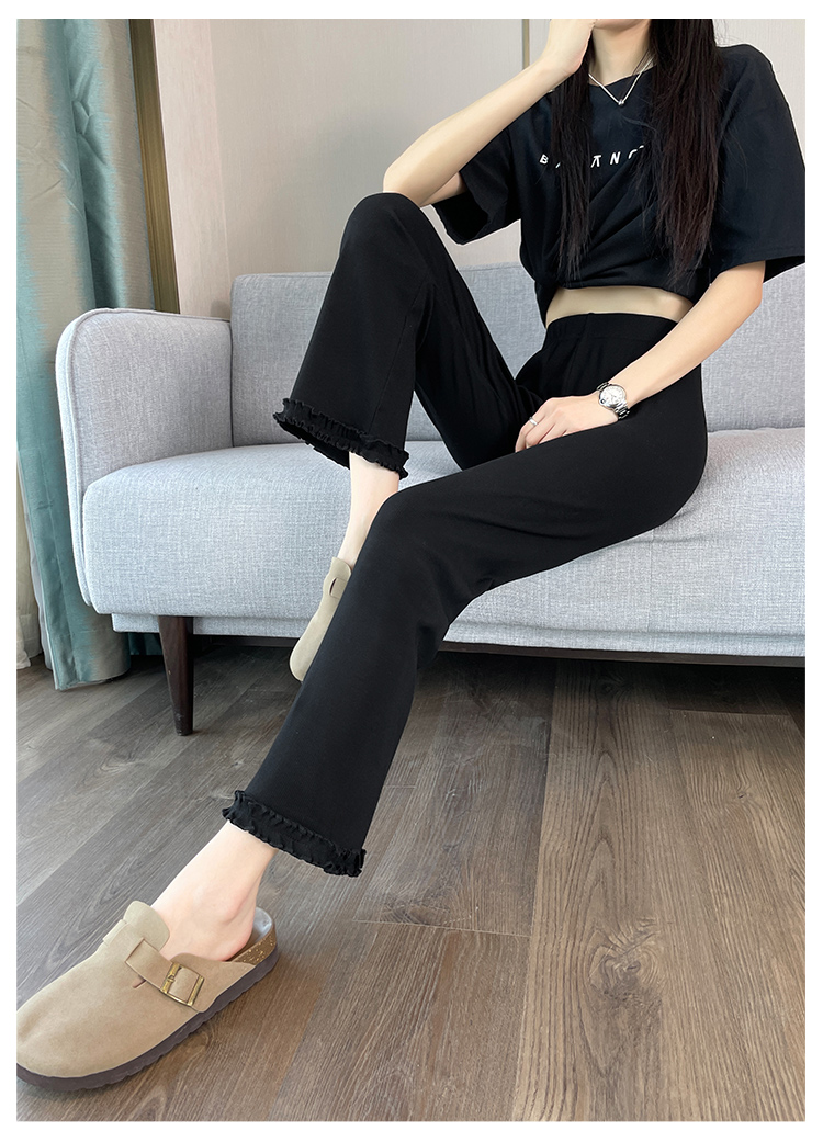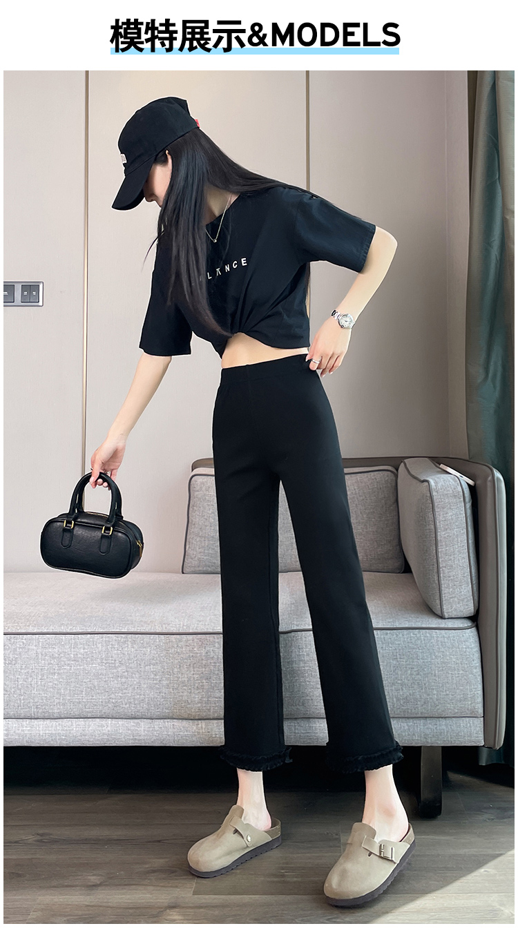 실제 촬영 2025 새로운 와일드 레이스 나인 바지 봄과 여름 새로운 여자 탄력성 블랙 마이크로 여가 슬림 바지