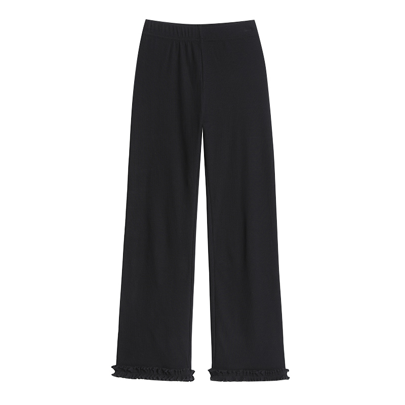 검정색 프릴 캐주얼 바지 여성 가을 겨울 털이 있고 두꺼운 작은 키 와이드 레그 팬츠 하이웨이스트 루즈핏 벽오동 바지