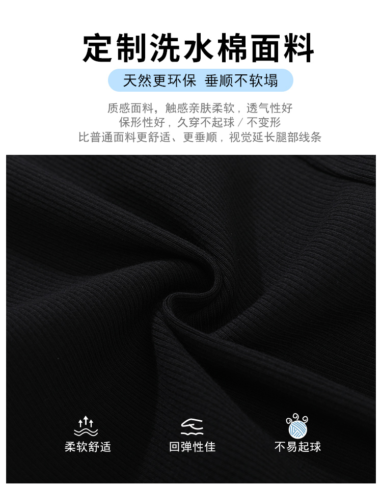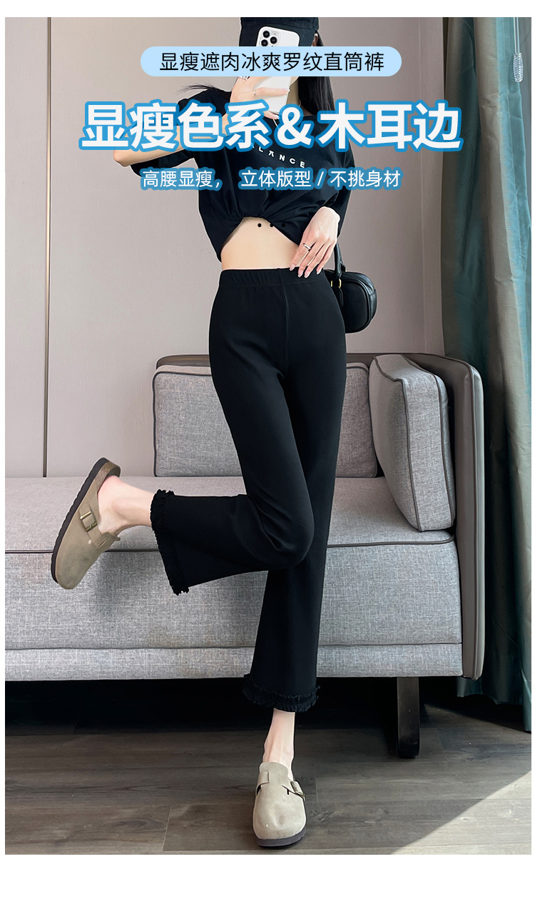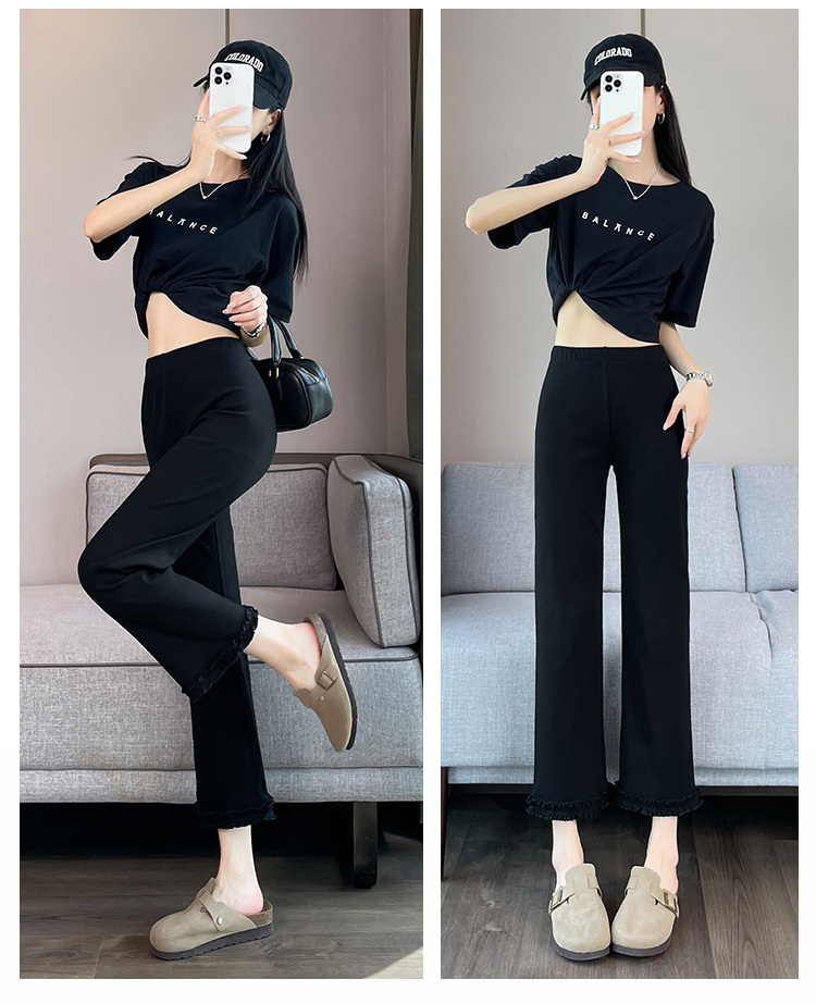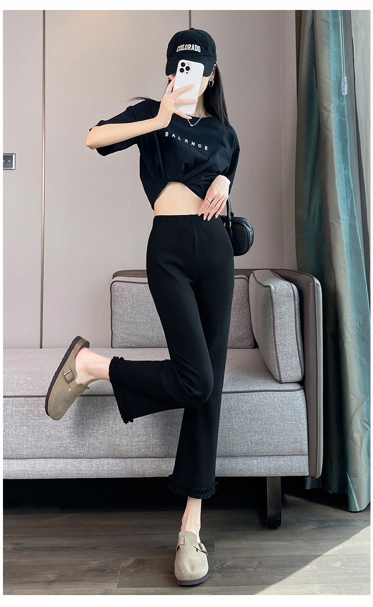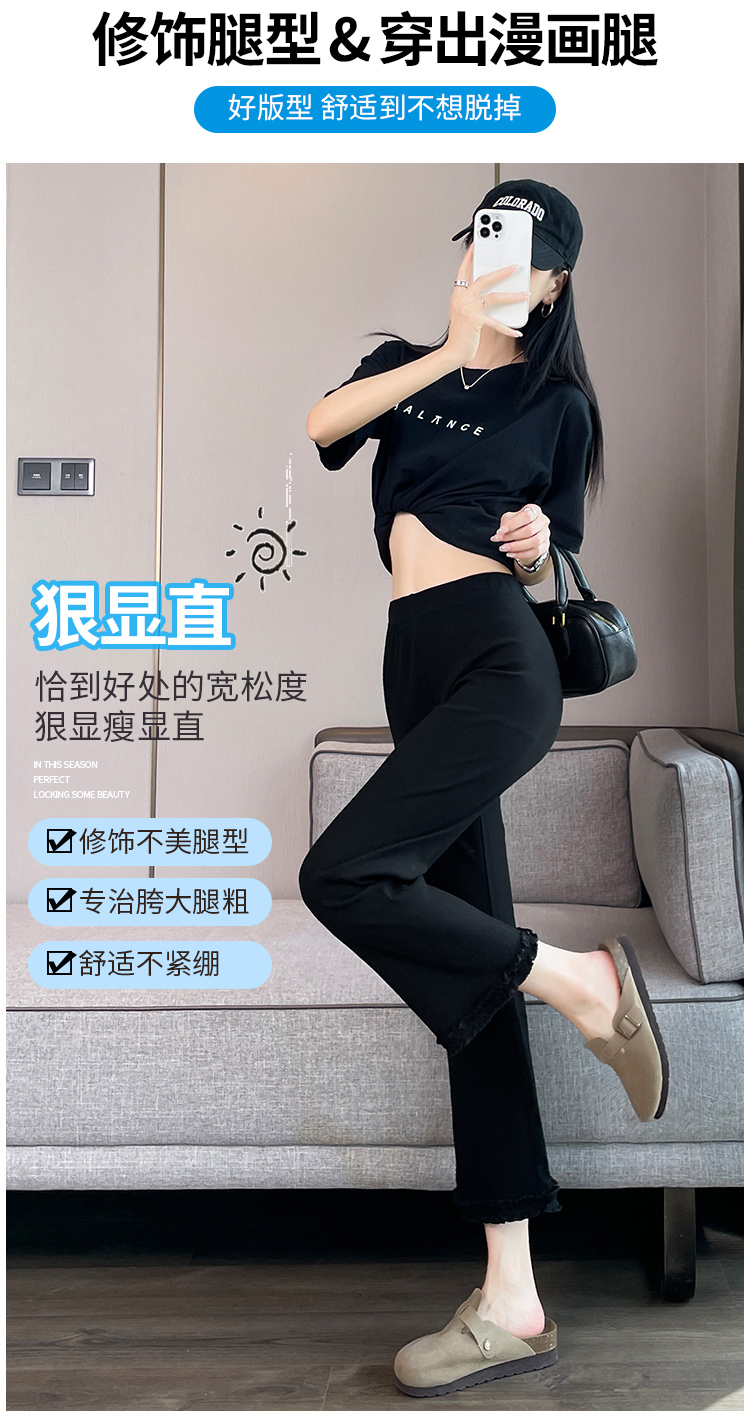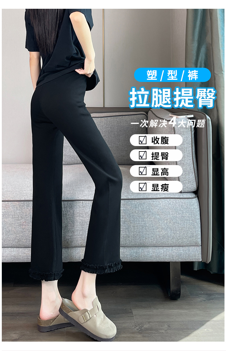실제 촬영 마이크로 캐주얼 바지 여자 봄 새로운 배 모양 몸 표지 넓적 다리 슬림 높은 허리 디자인 센스 단순한 나인 바지