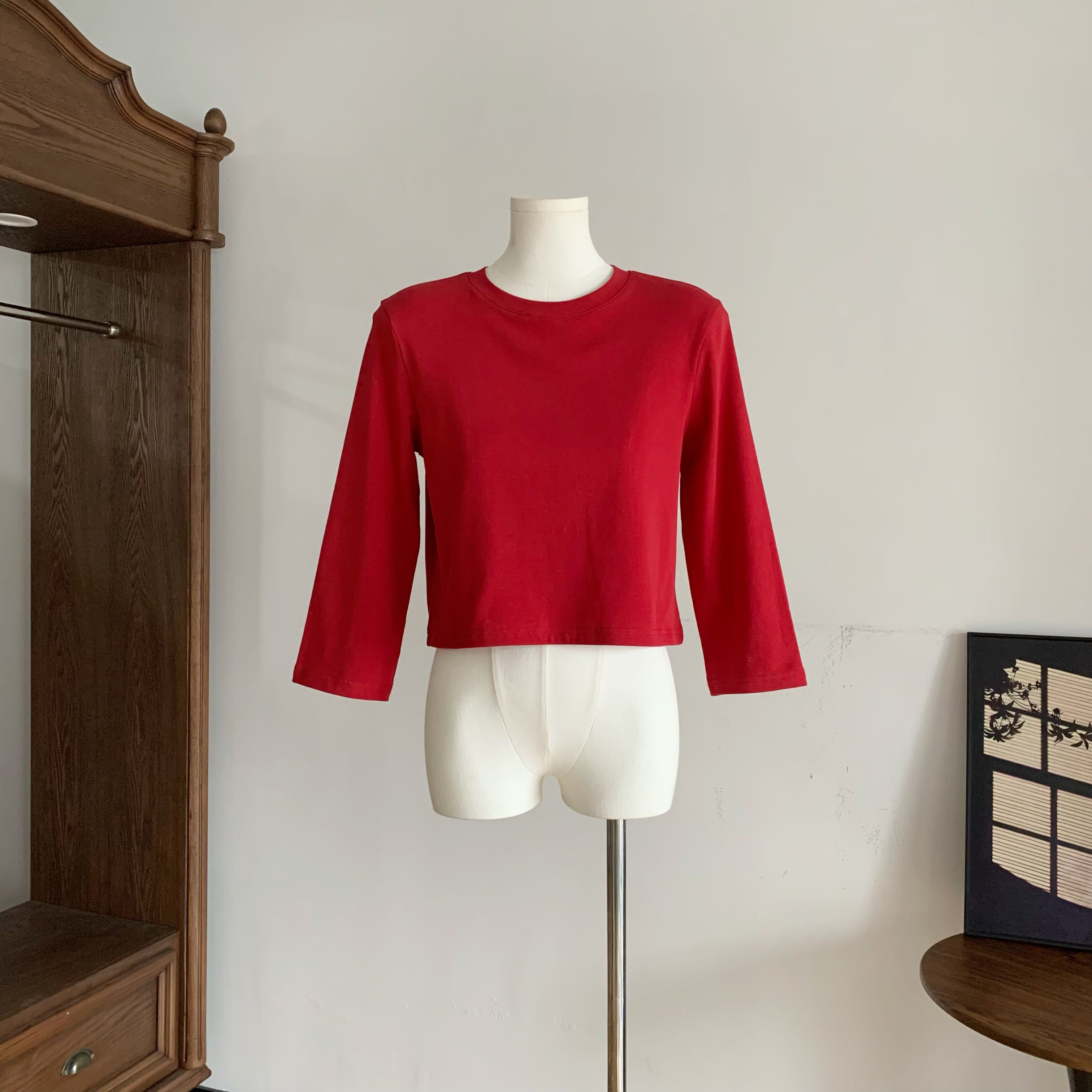 chill 챠오어 빛 연 주형 품격 몸매 가꾸기 순수한 욕망 섹시함 비스듬한 어깨 티셔츠 흔들다 칼라 허리 수축 슬림해 보이는 맨위