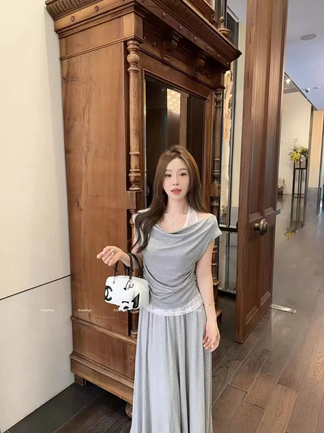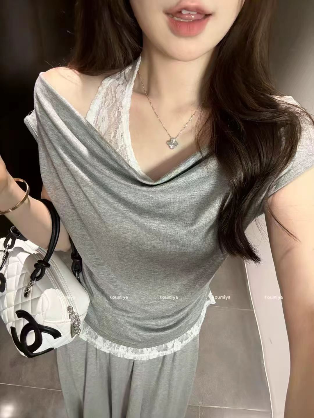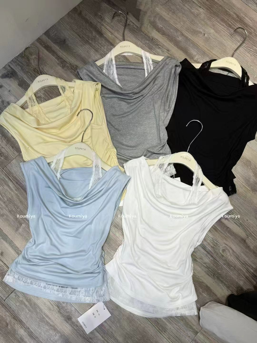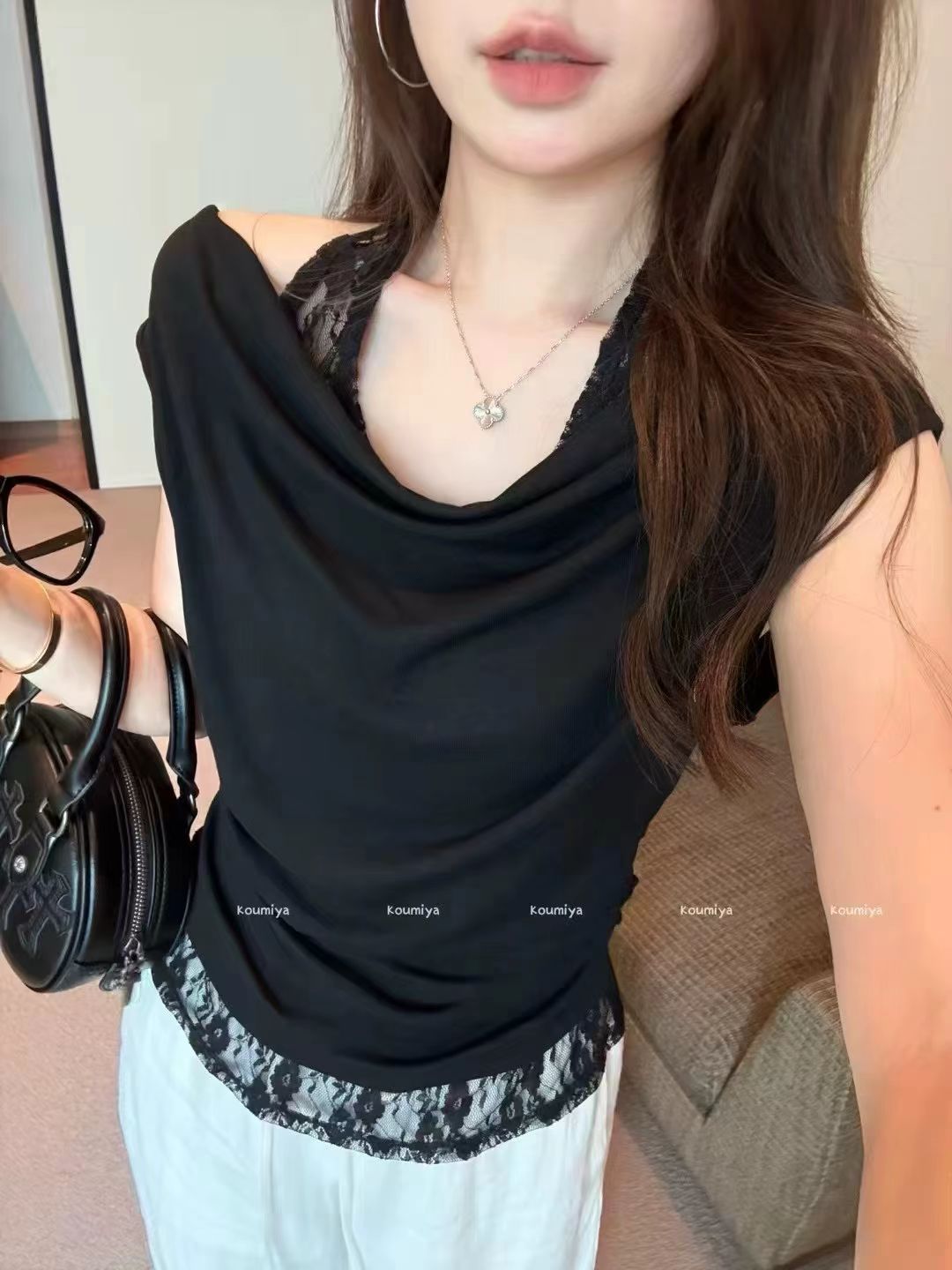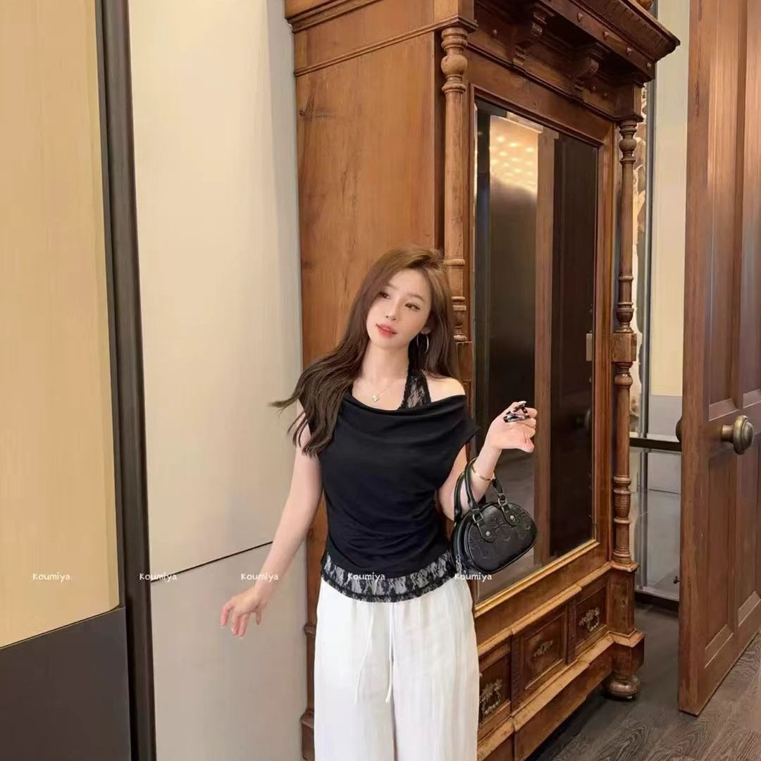 한 부서 부드러운 바람 레이스 스트랩 튜브탑 여성 여름 몸매 가꾸기 슬림해 보이는 측면 트임 불규칙 조끼 여성