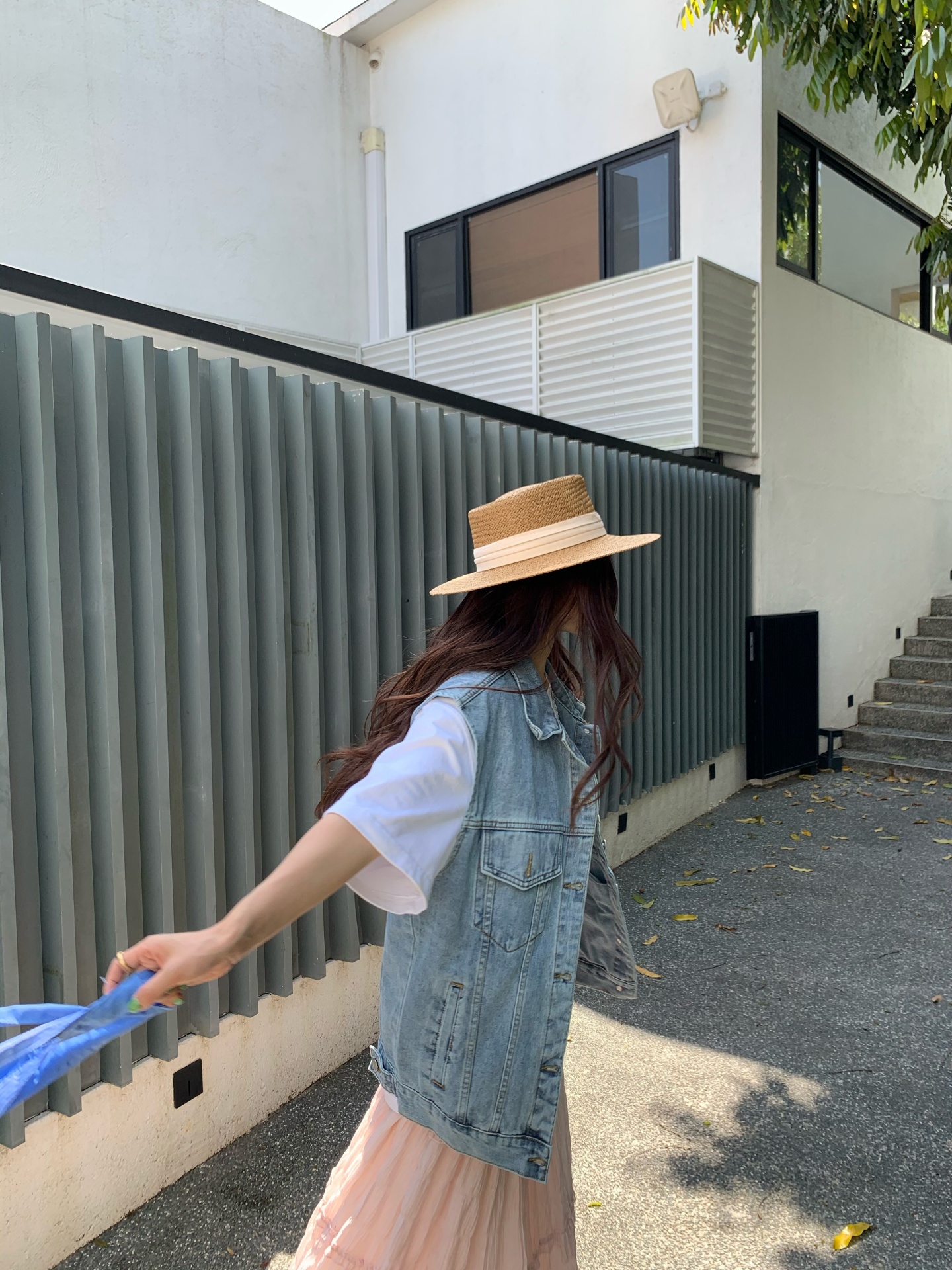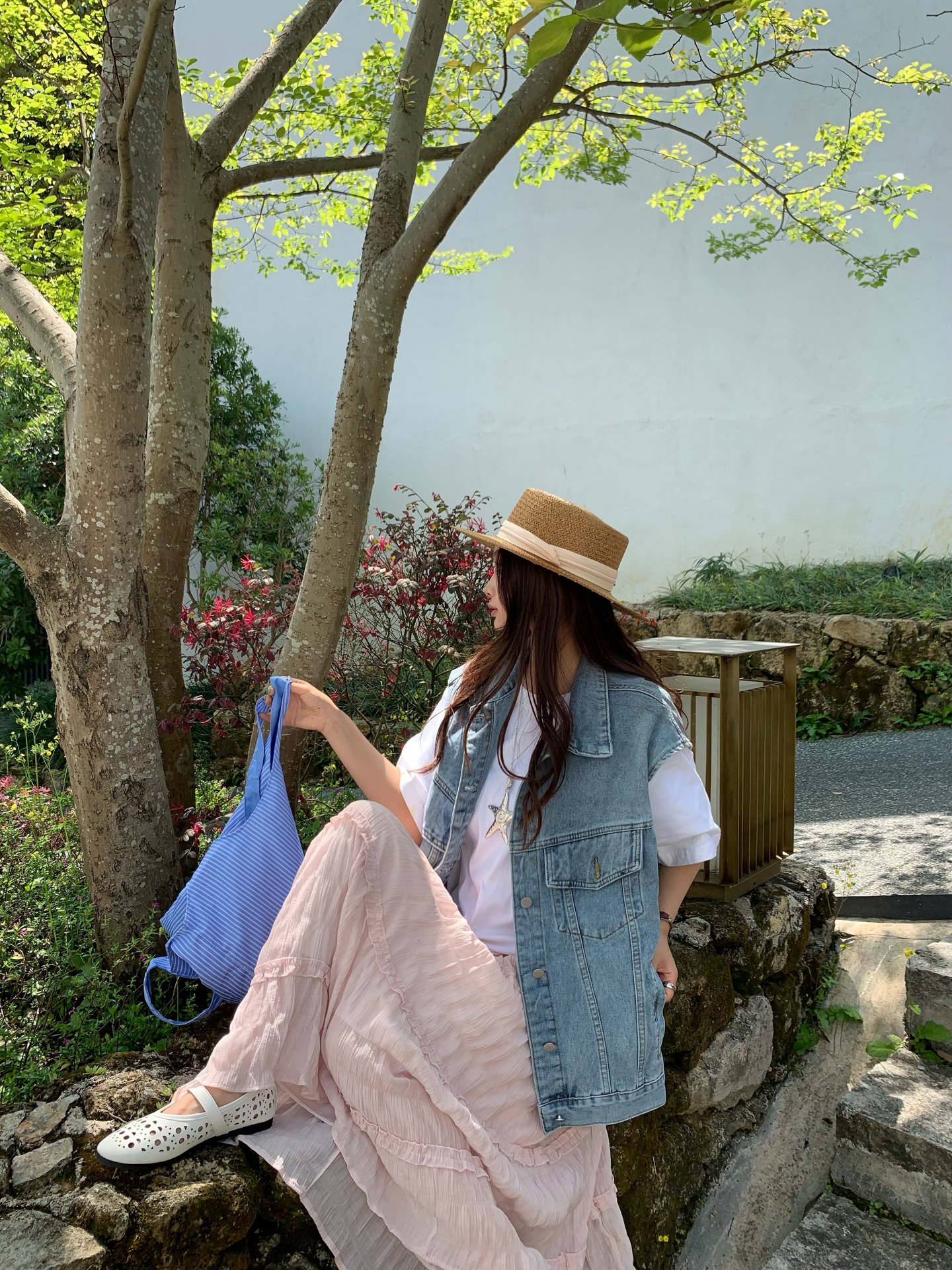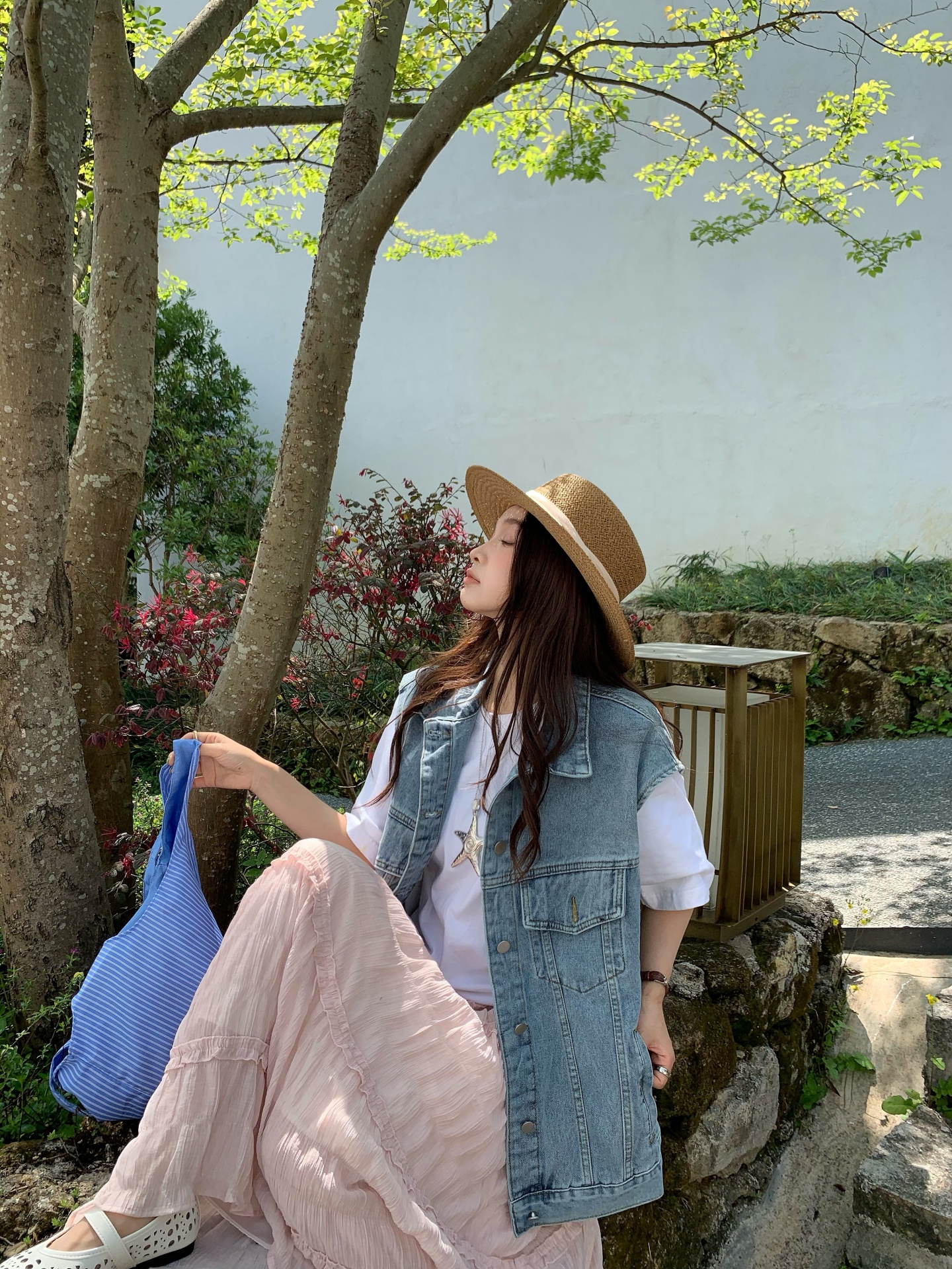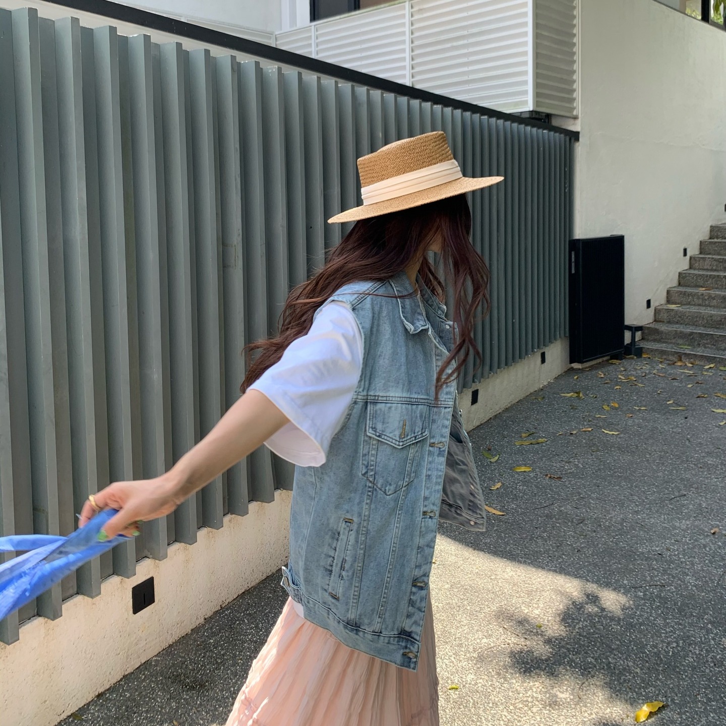 실사 한국 스타일 루즈핏 레트로 민소매 어깨 데님 베스트