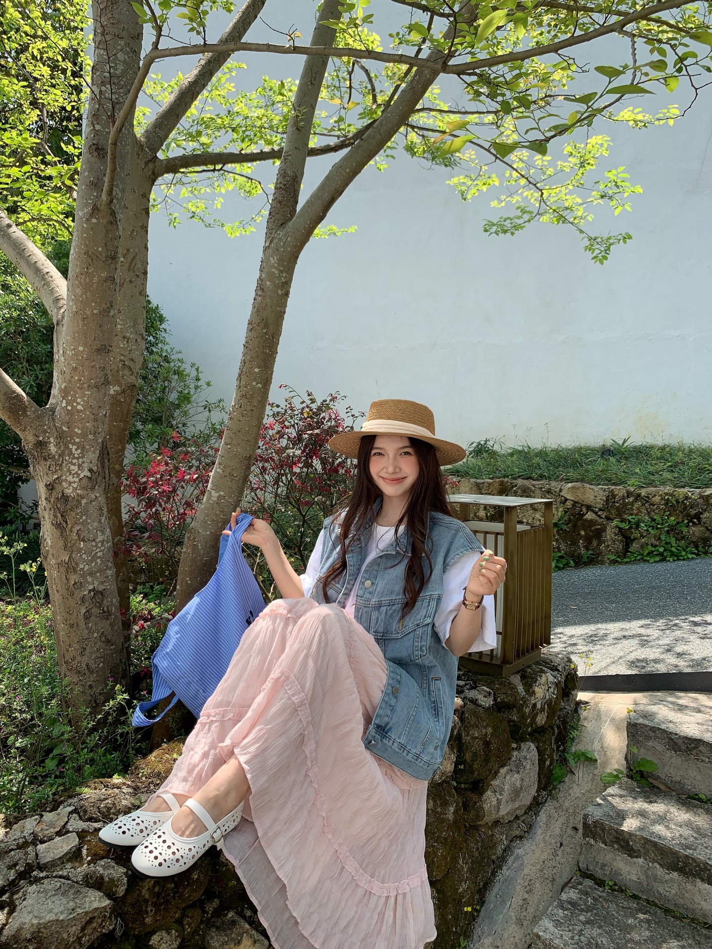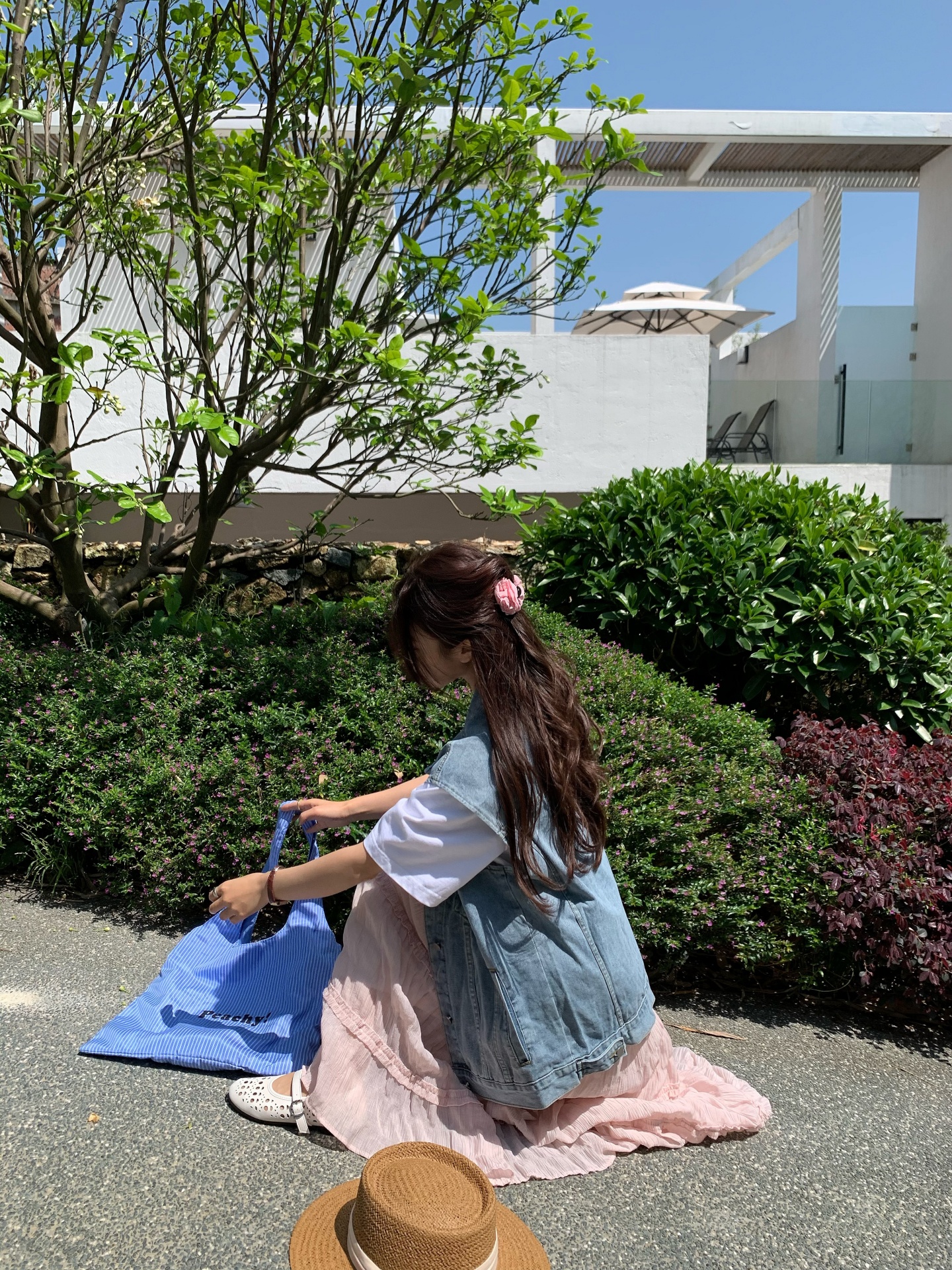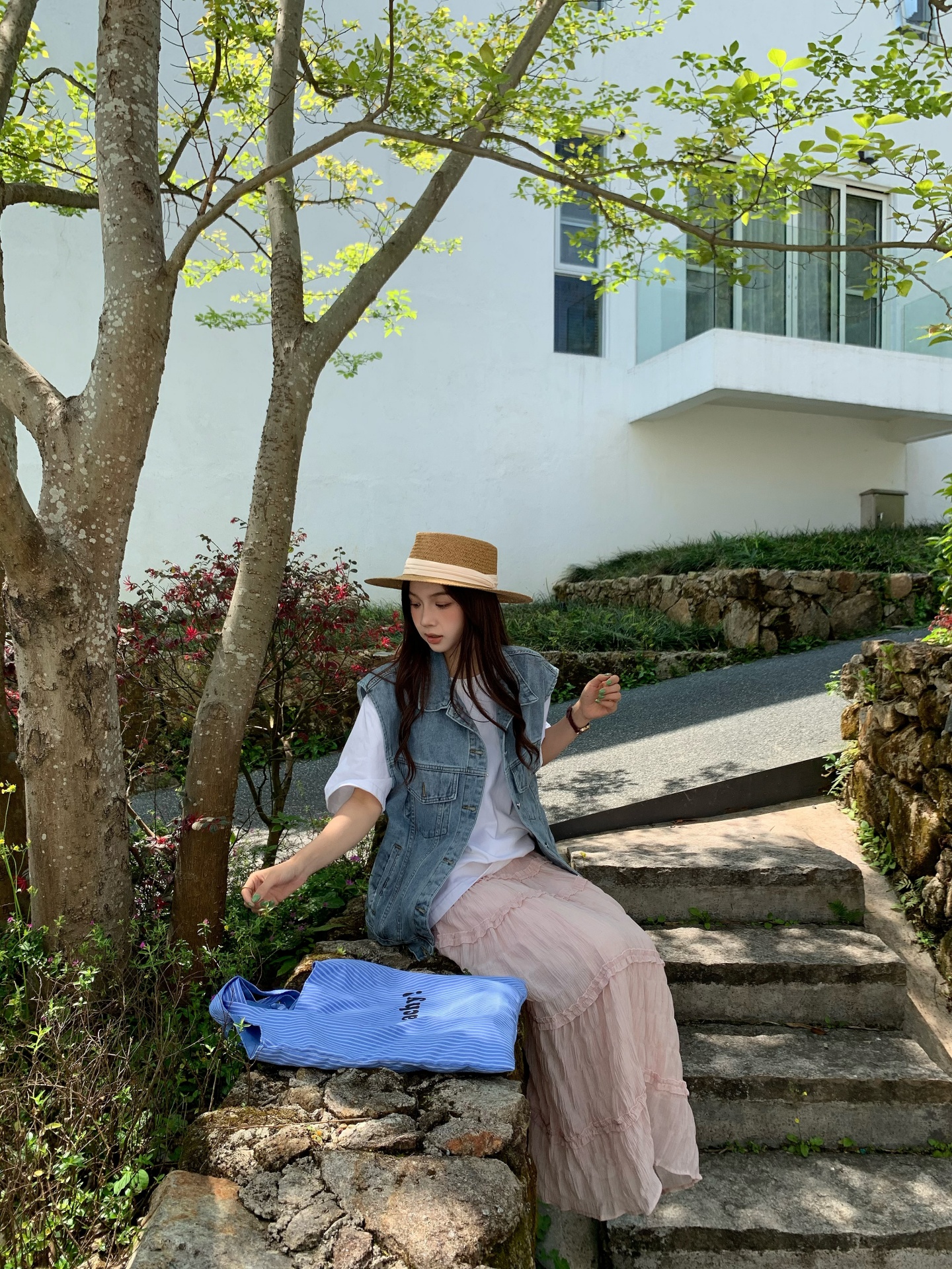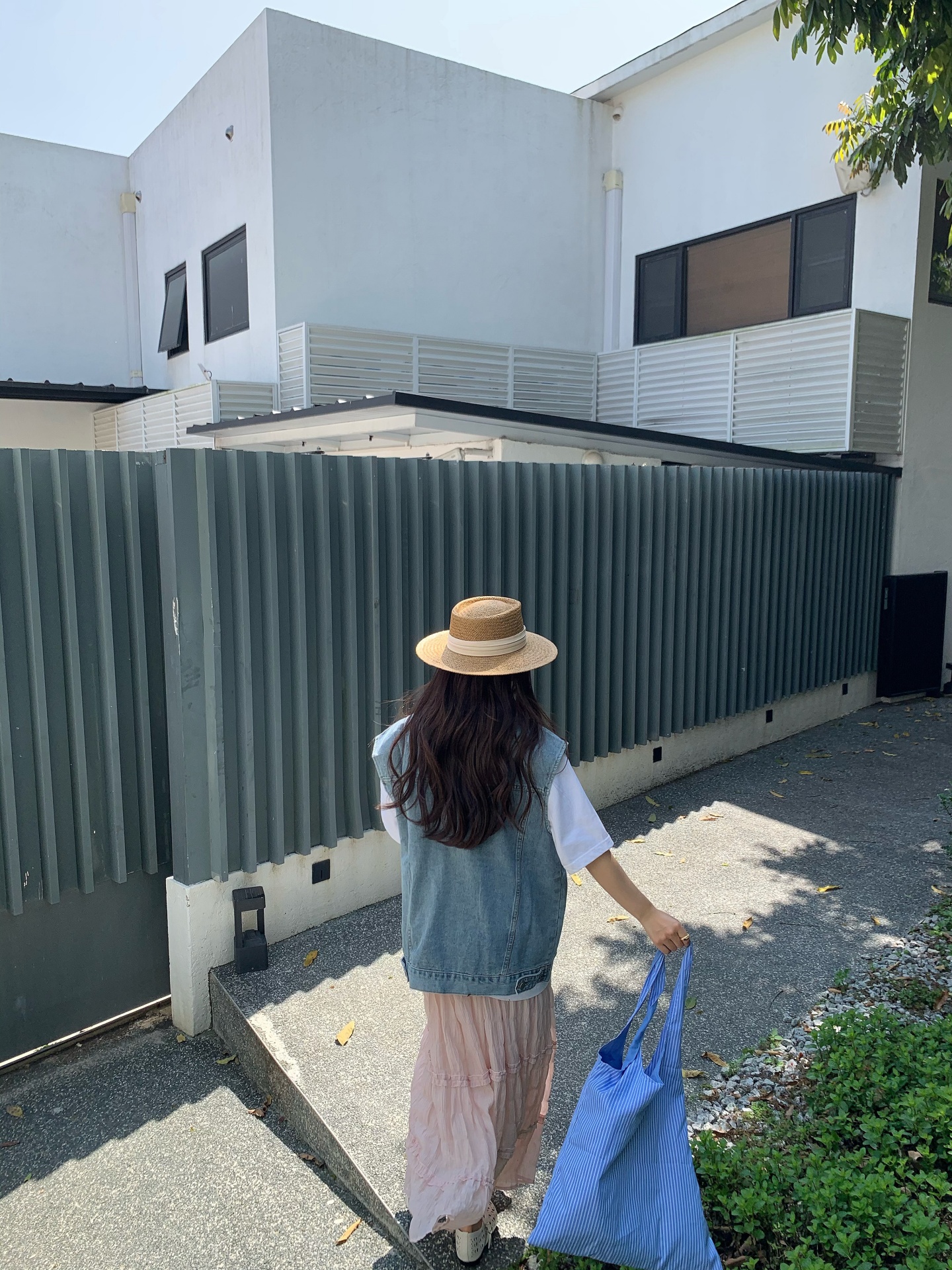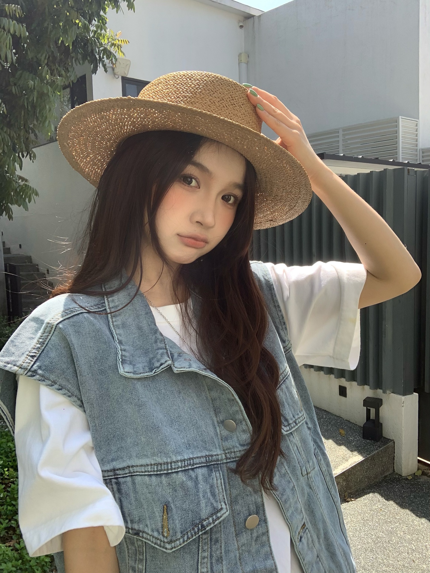 실사 한국 스타일 루즈핏 레트로 민소매 어깨 데님 베스트