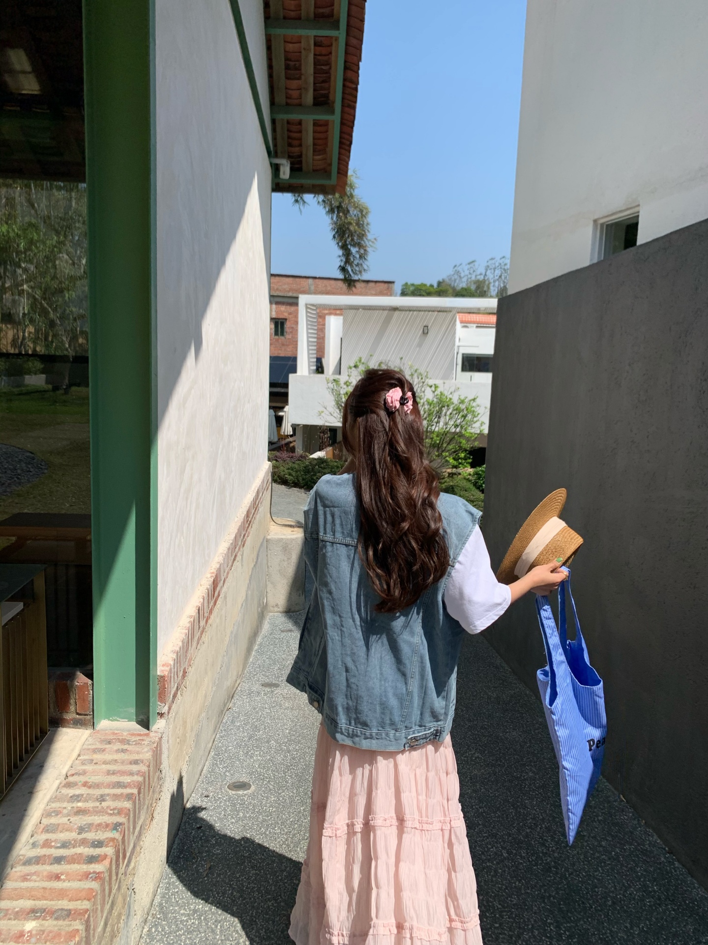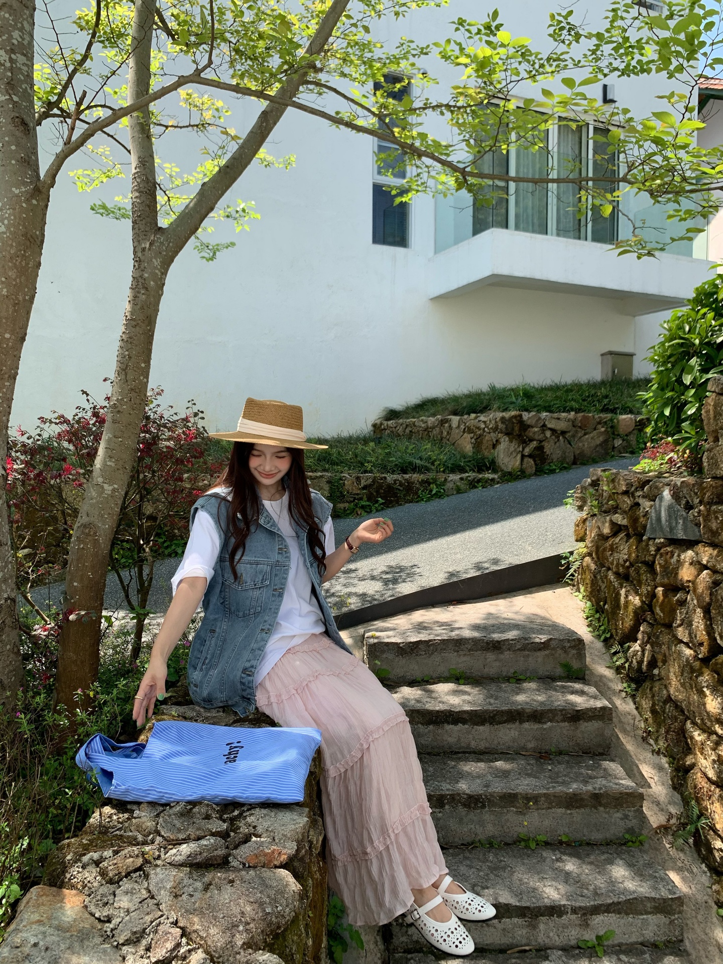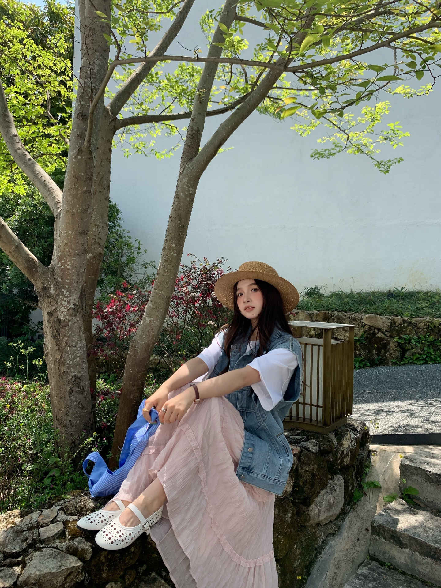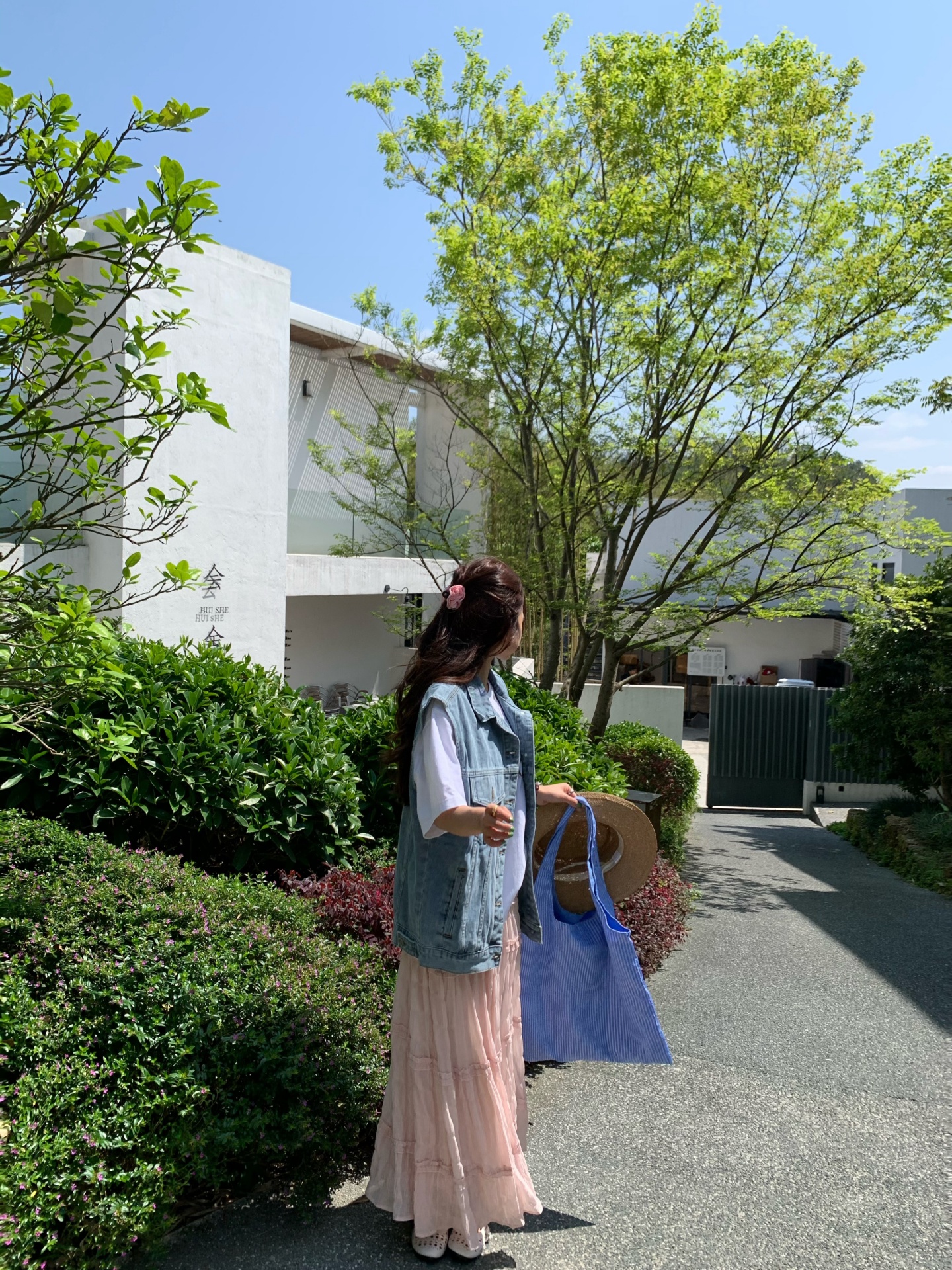 실사 한국 스타일 루즈핏 레트로 민소매 어깨 데님 베스트