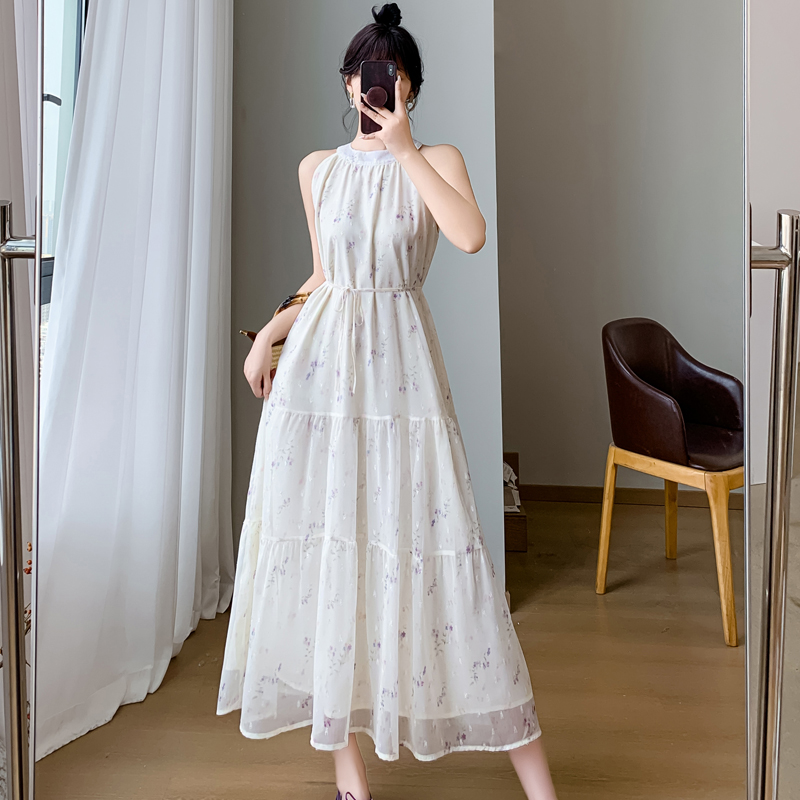 프랑스식 보라색 여성 드레스 여름 2026 새로운 작은 키 고급 센스 해변가 휴가 허리 수축 쉬폰 롱 스커트