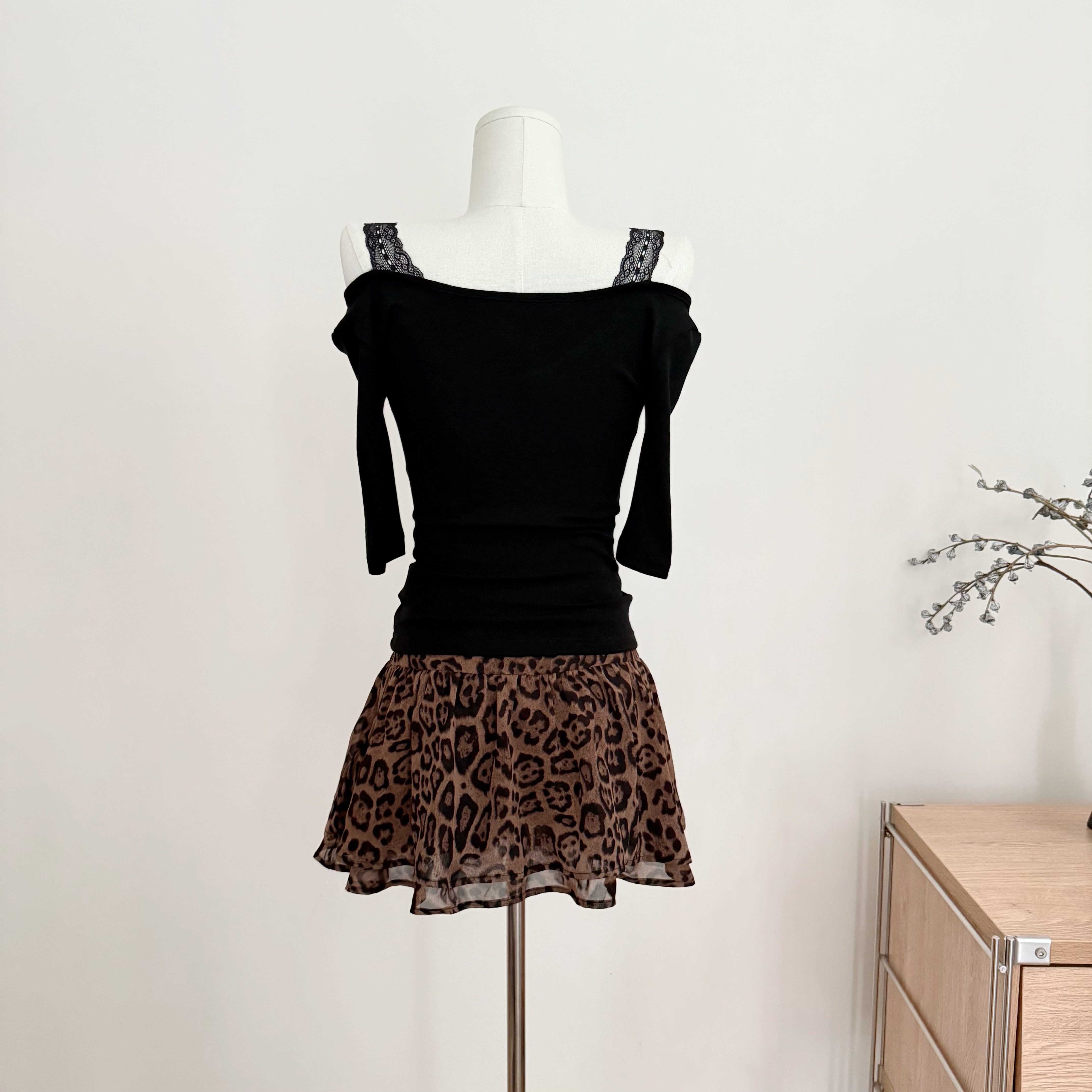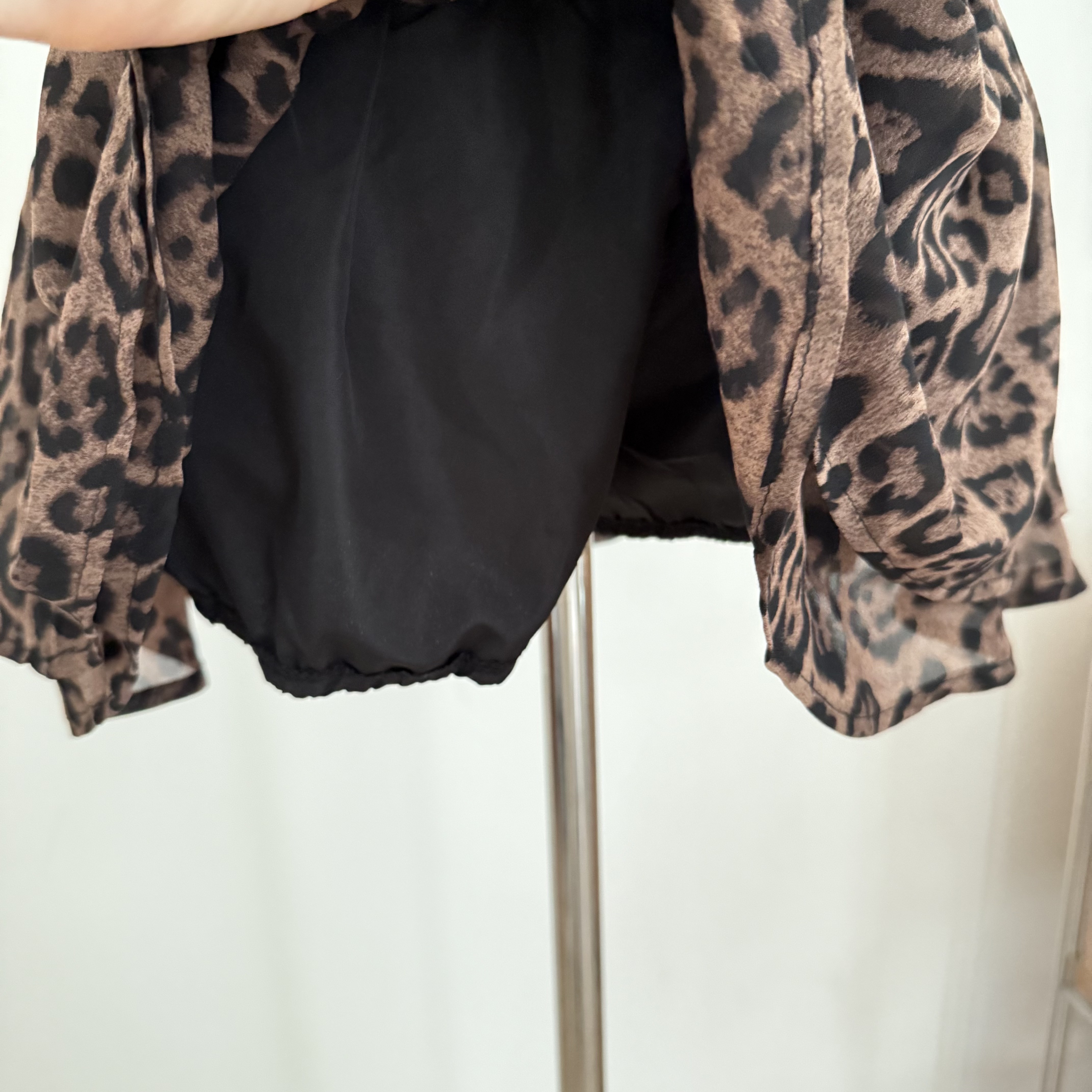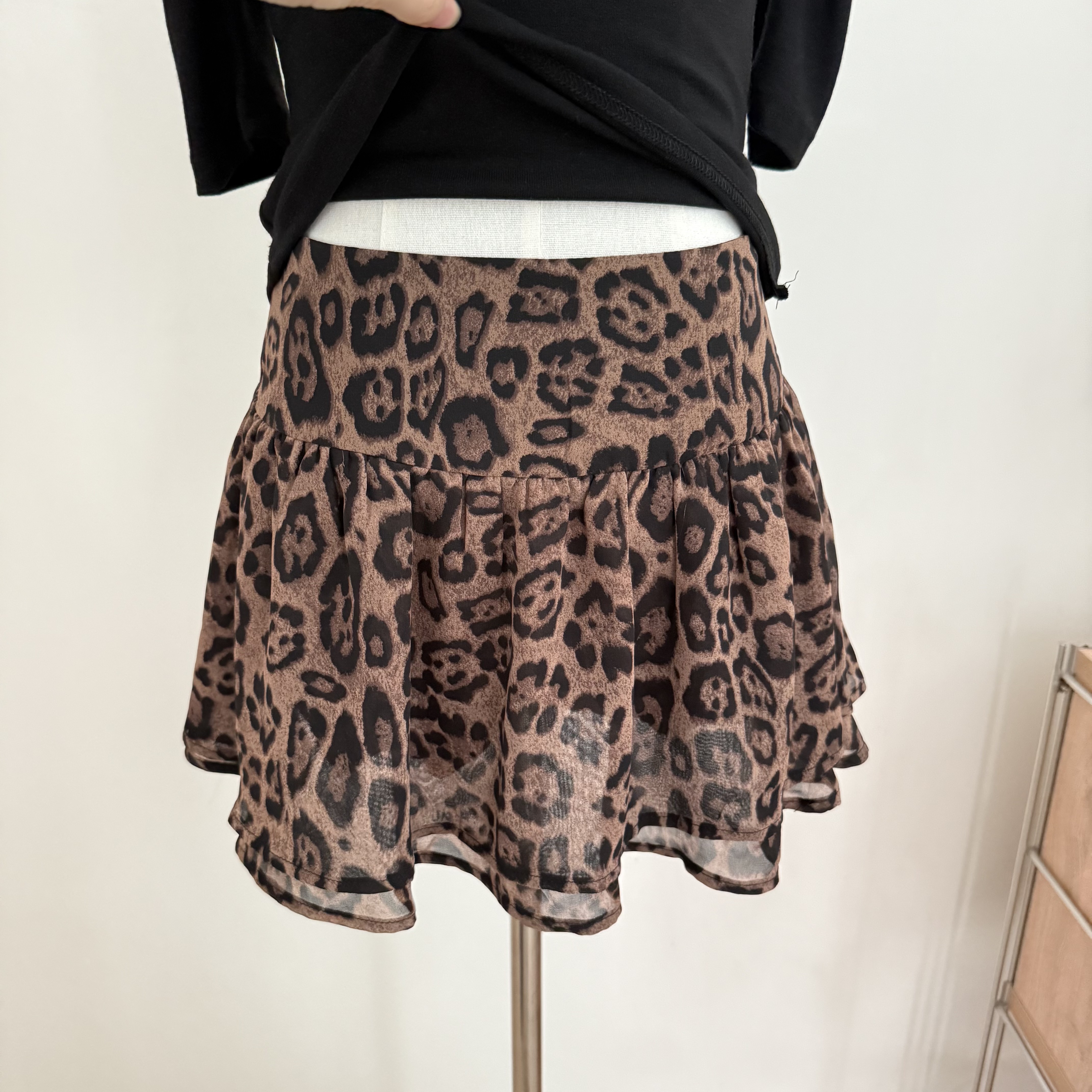 그는 아침 세련된 당겨서 전체 레오파드 무늬 프린트 반 스커트