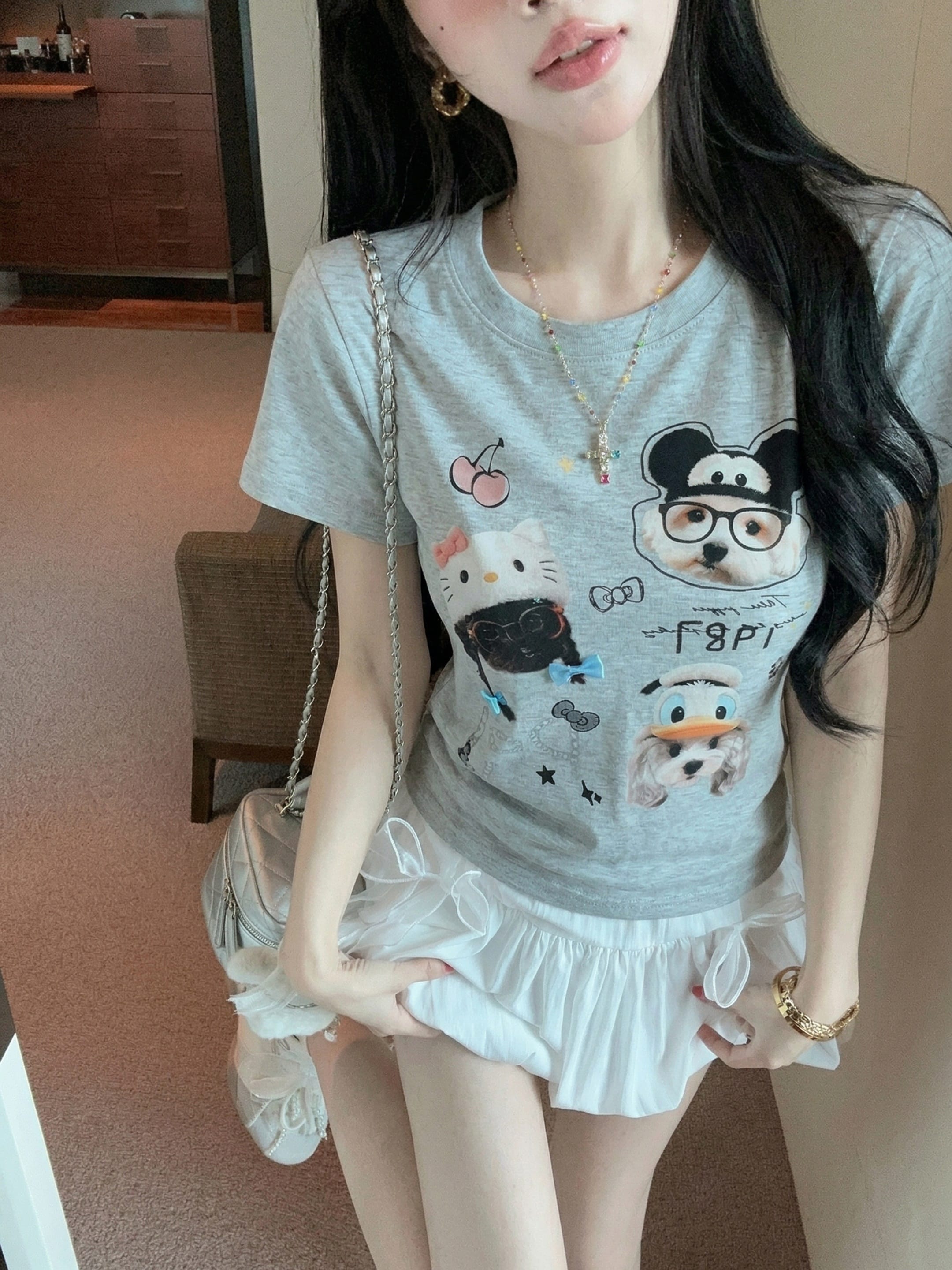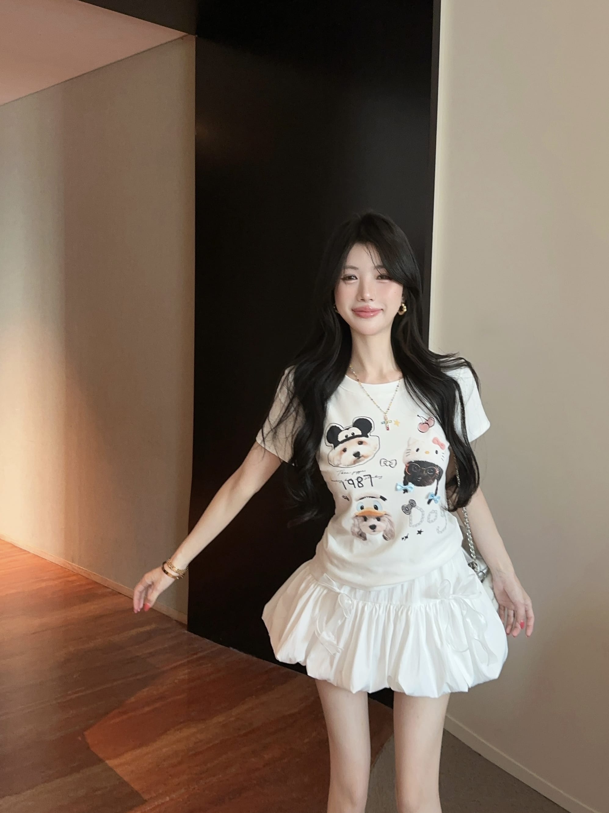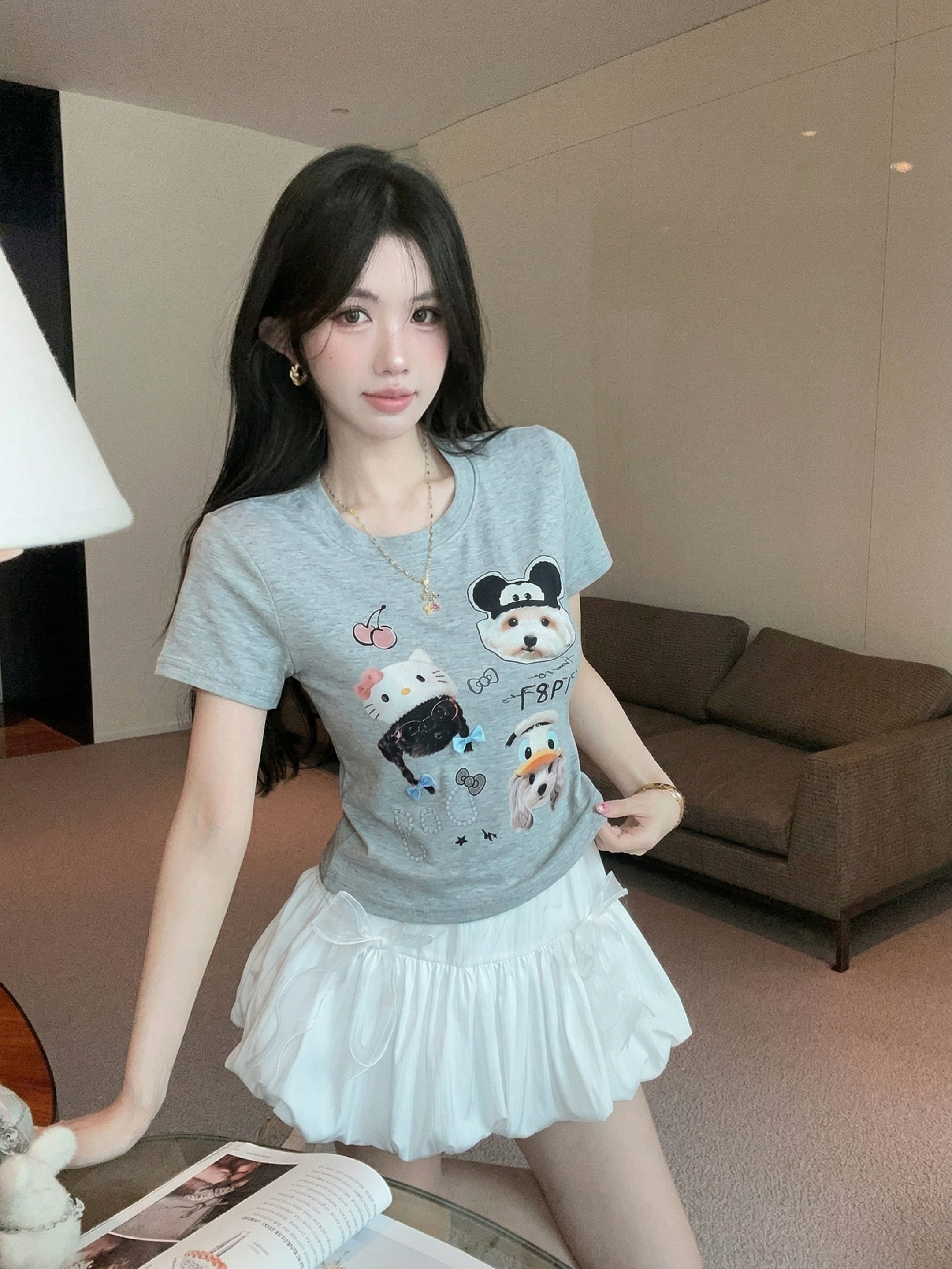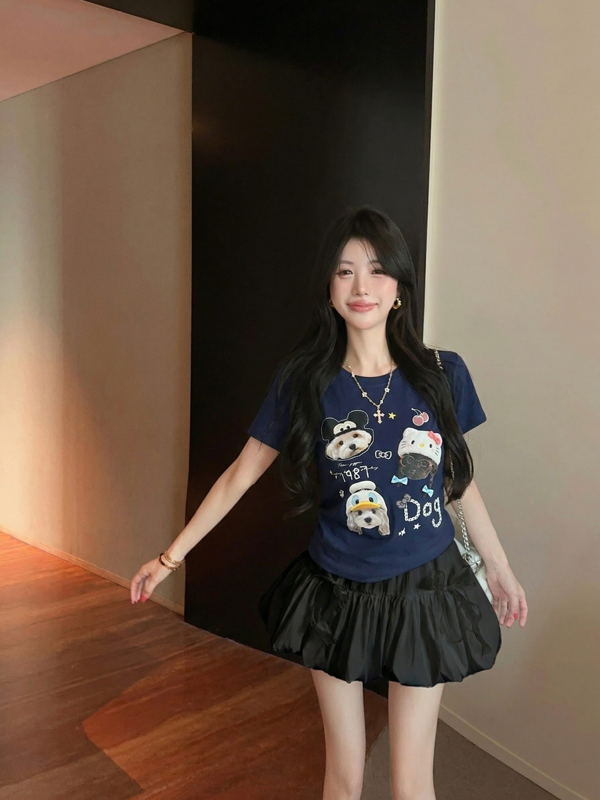 실사 정가 디자인 센스 비스듬한 어깨 슬립 반팔 티셔츠 아름다움 프린트 루즈핏 슬림해 보이는 맨위