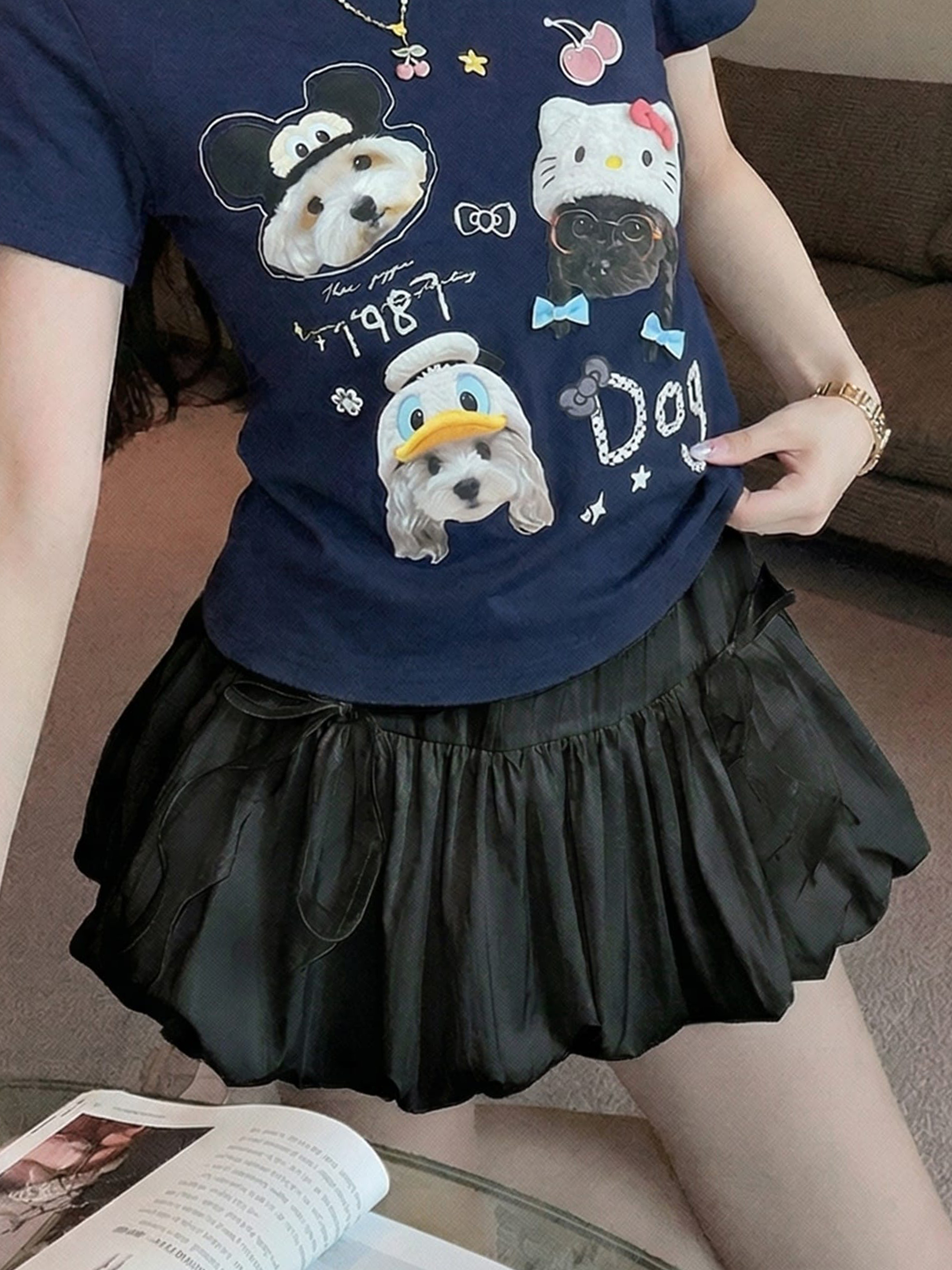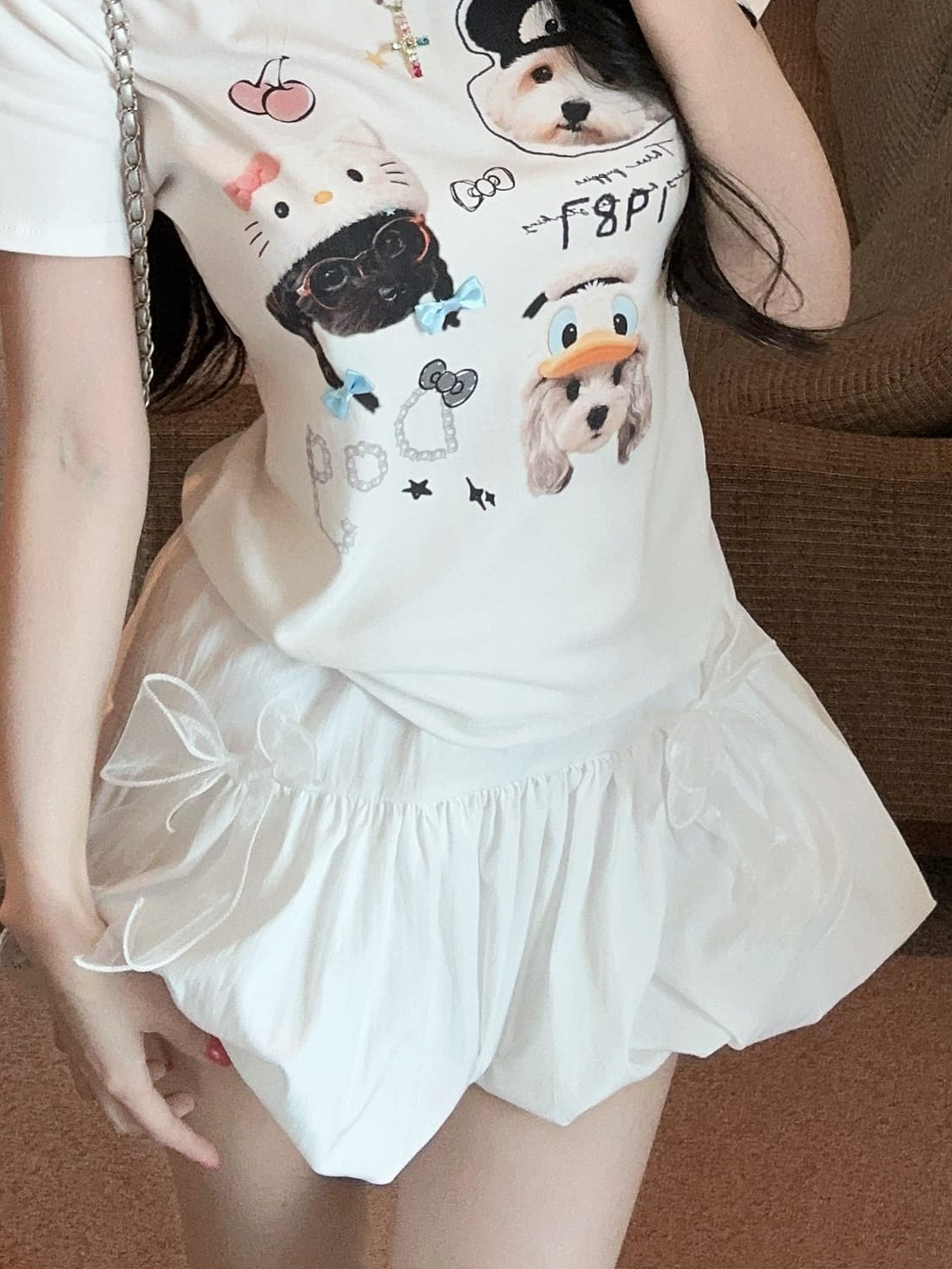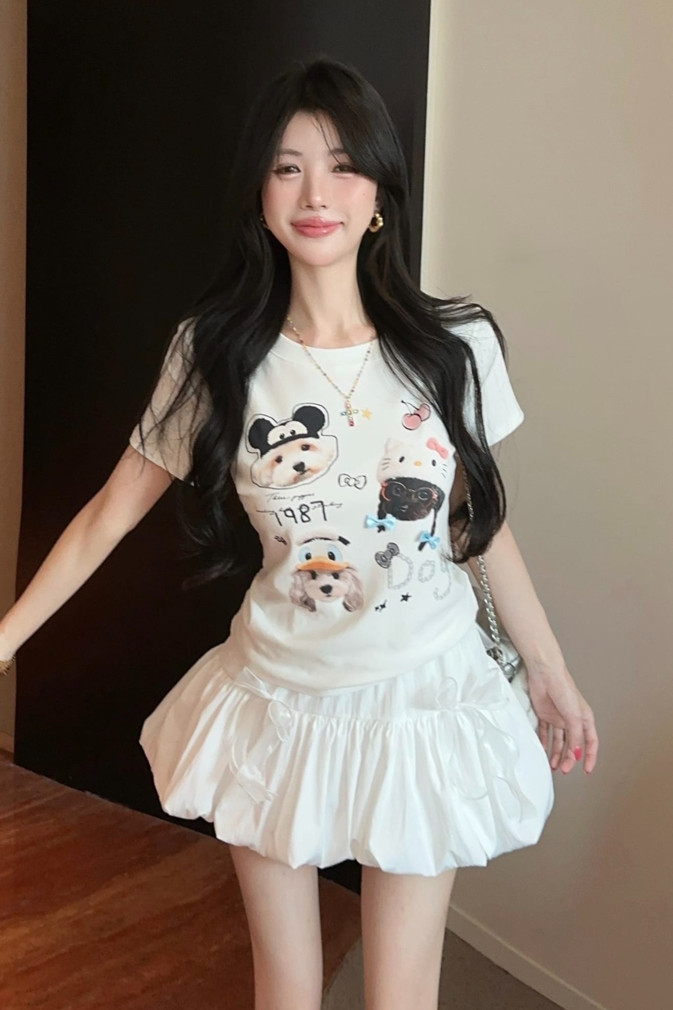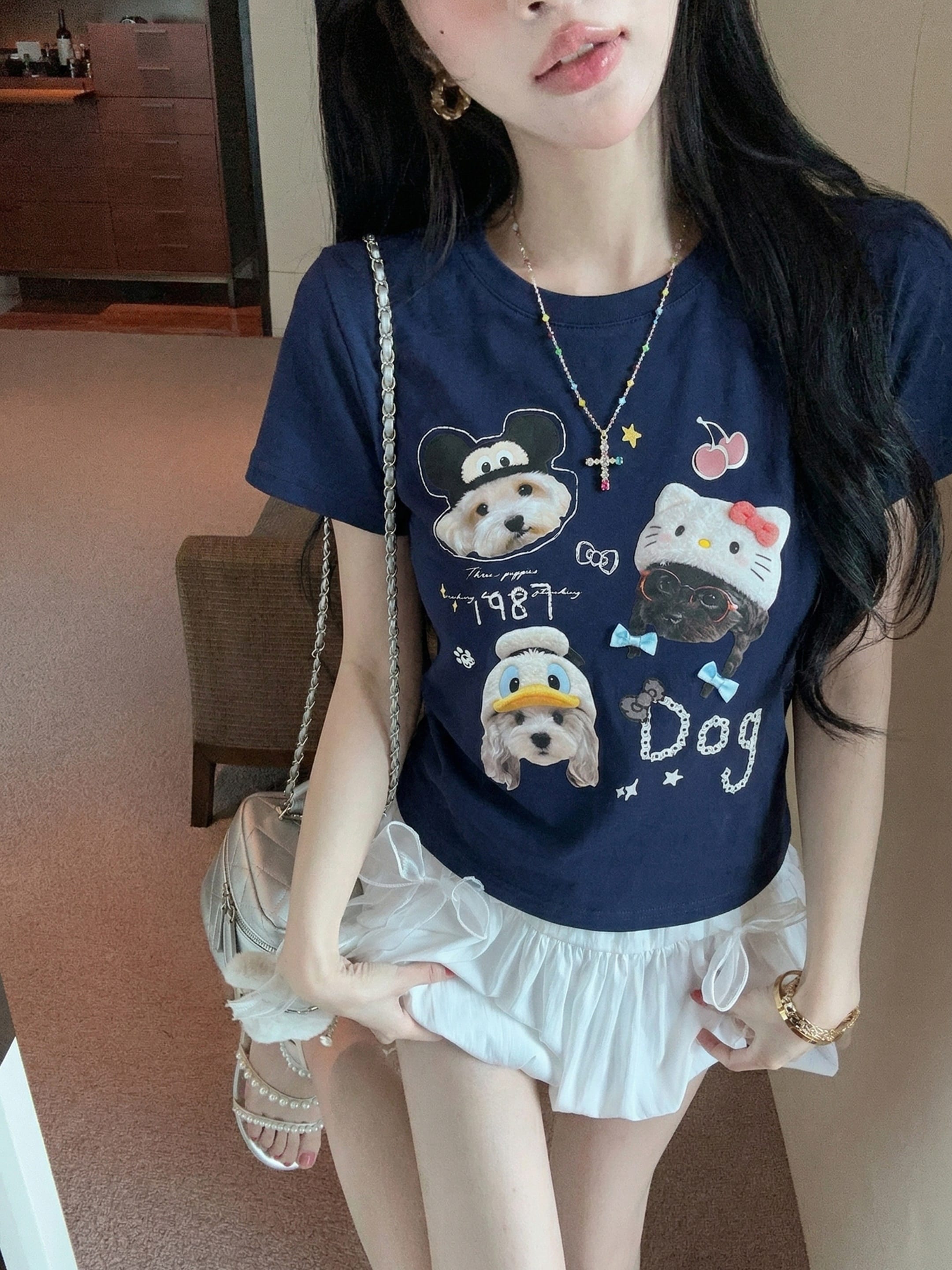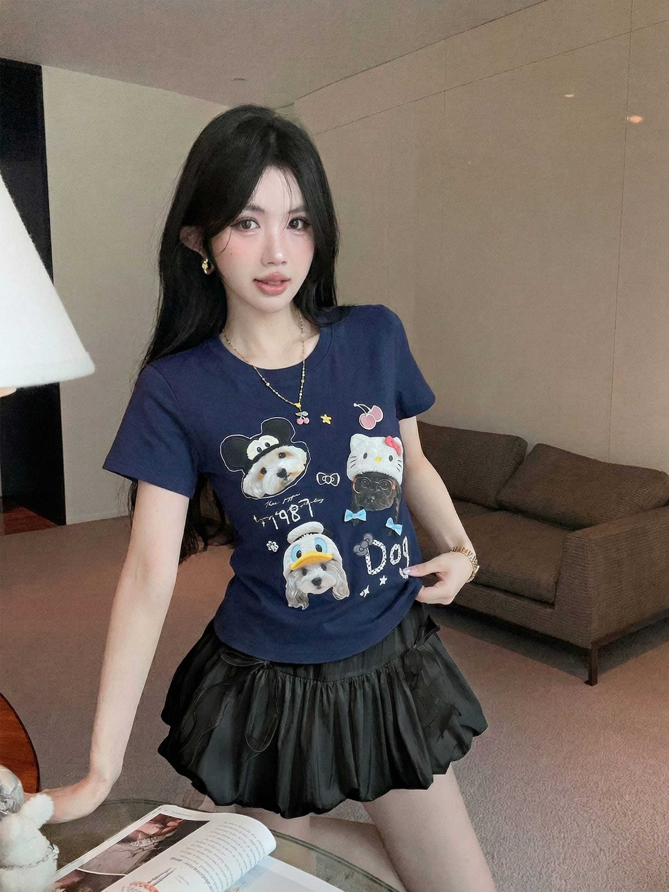 실사 정가 디자인 센스 비스듬한 어깨 슬립 반팔 티셔츠 아름다움 프린트 루즈핏 슬림해 보이는 맨위