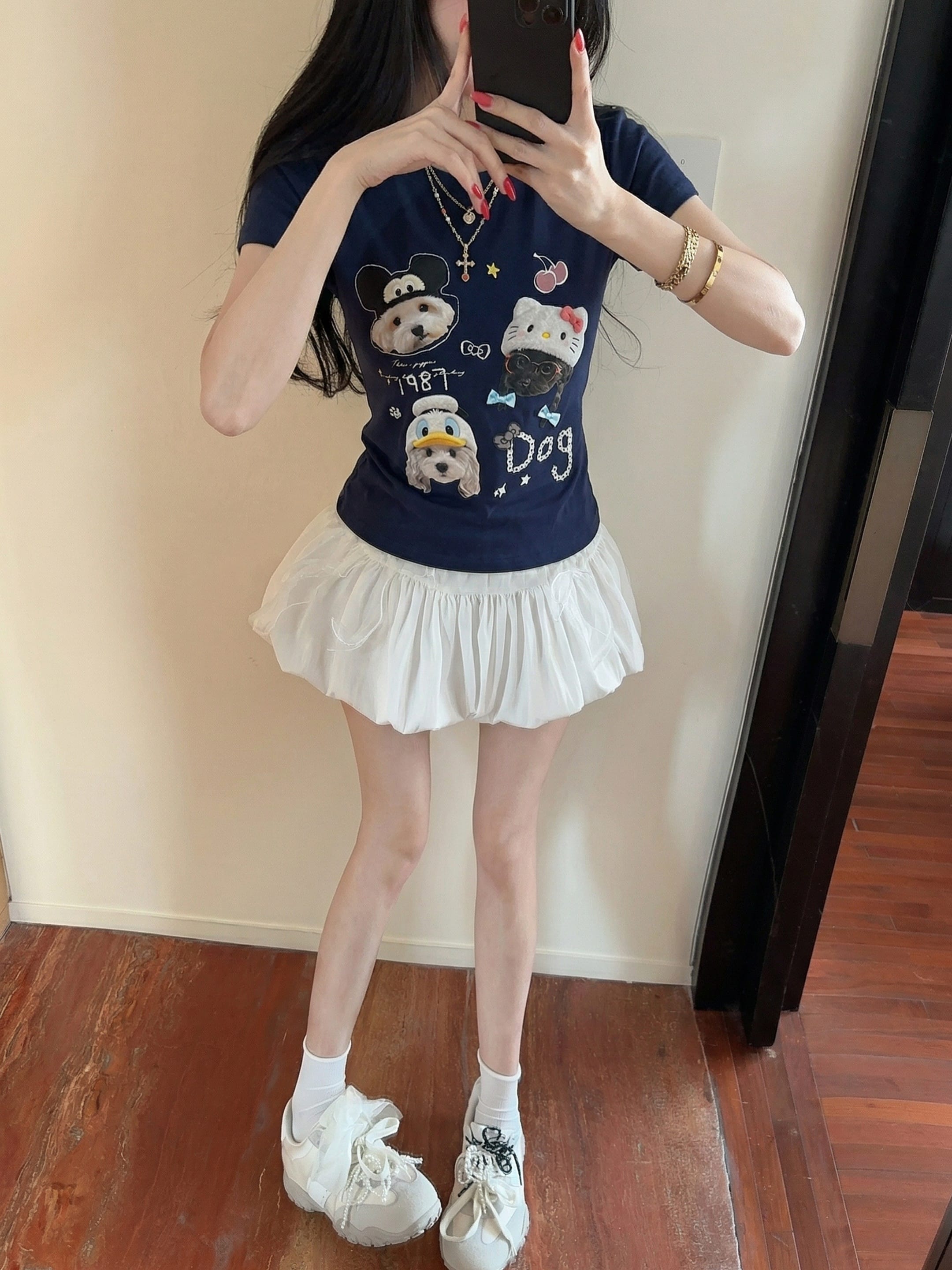 실사 정가 디자인 센스 찢어진 부분 어깨끈 페이크 레이어드 디자인 별 몸매 가꾸기 슬림해 보이는 쇼트 스타일 맨위
