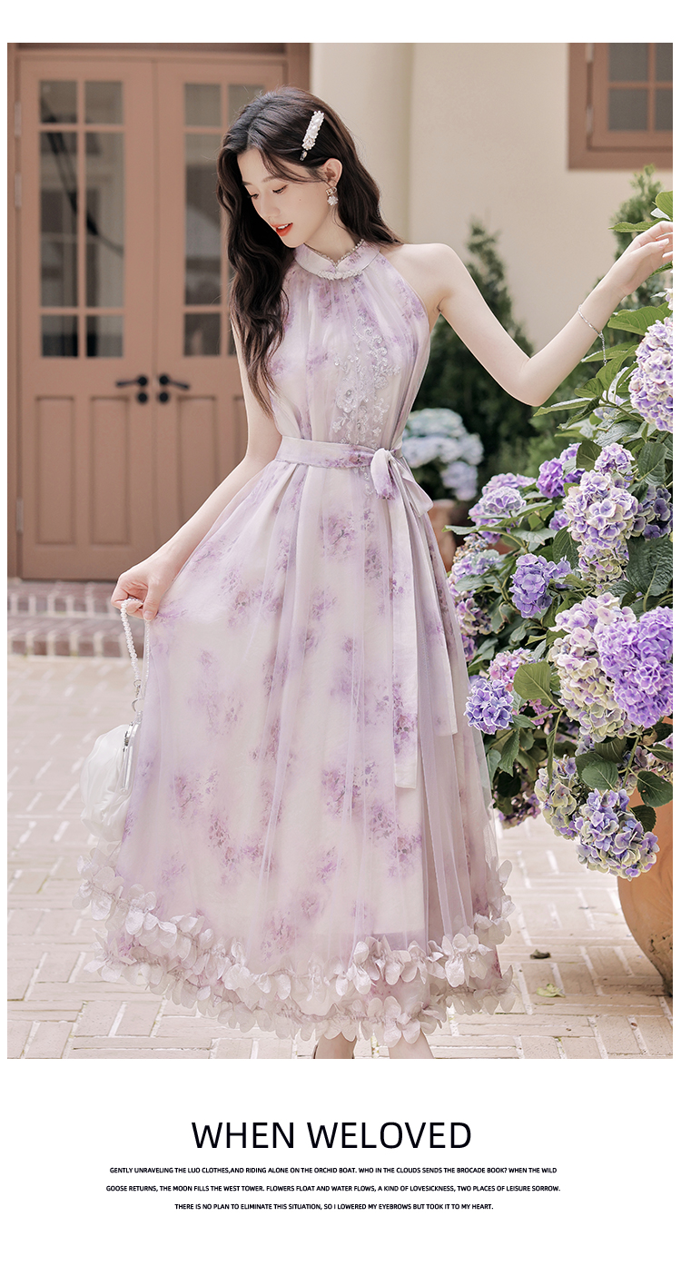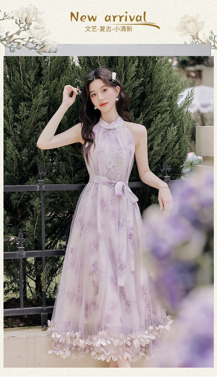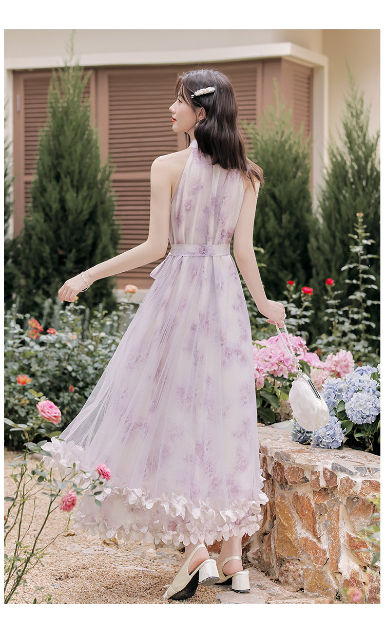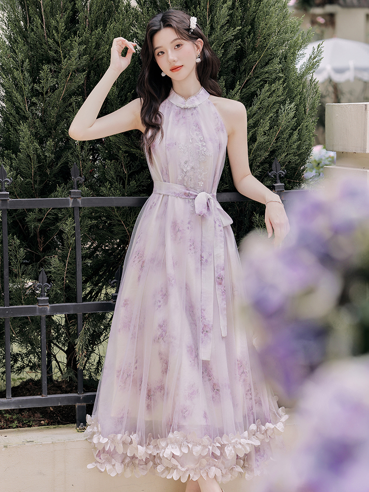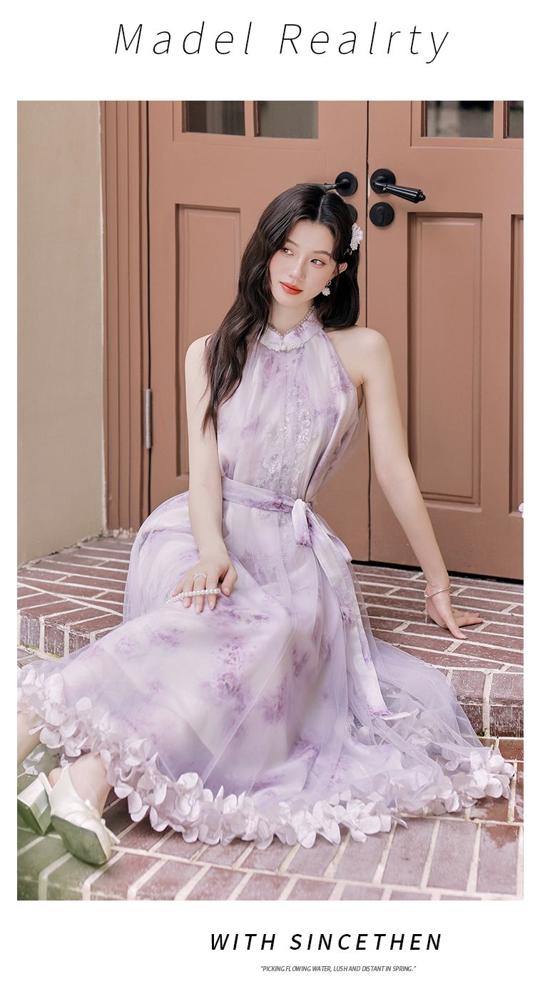 헤일로 염색 꽃무늬 슬립 드레스 여성 2025 여름 새로운 롱 코트 펌프 로프 여성 드레스