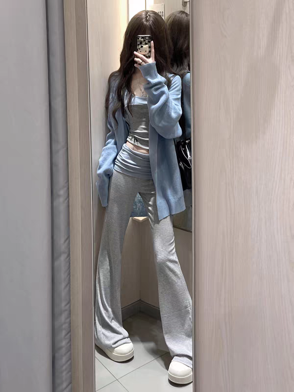 고급 회색 오래된 돈 바람 와이드 레깅스 바지 26 봄 여름 루즈핏 슬림해 보이는 스트레이트 캐주얼 바지 길이 연장 바닥 청소 긴 바지
