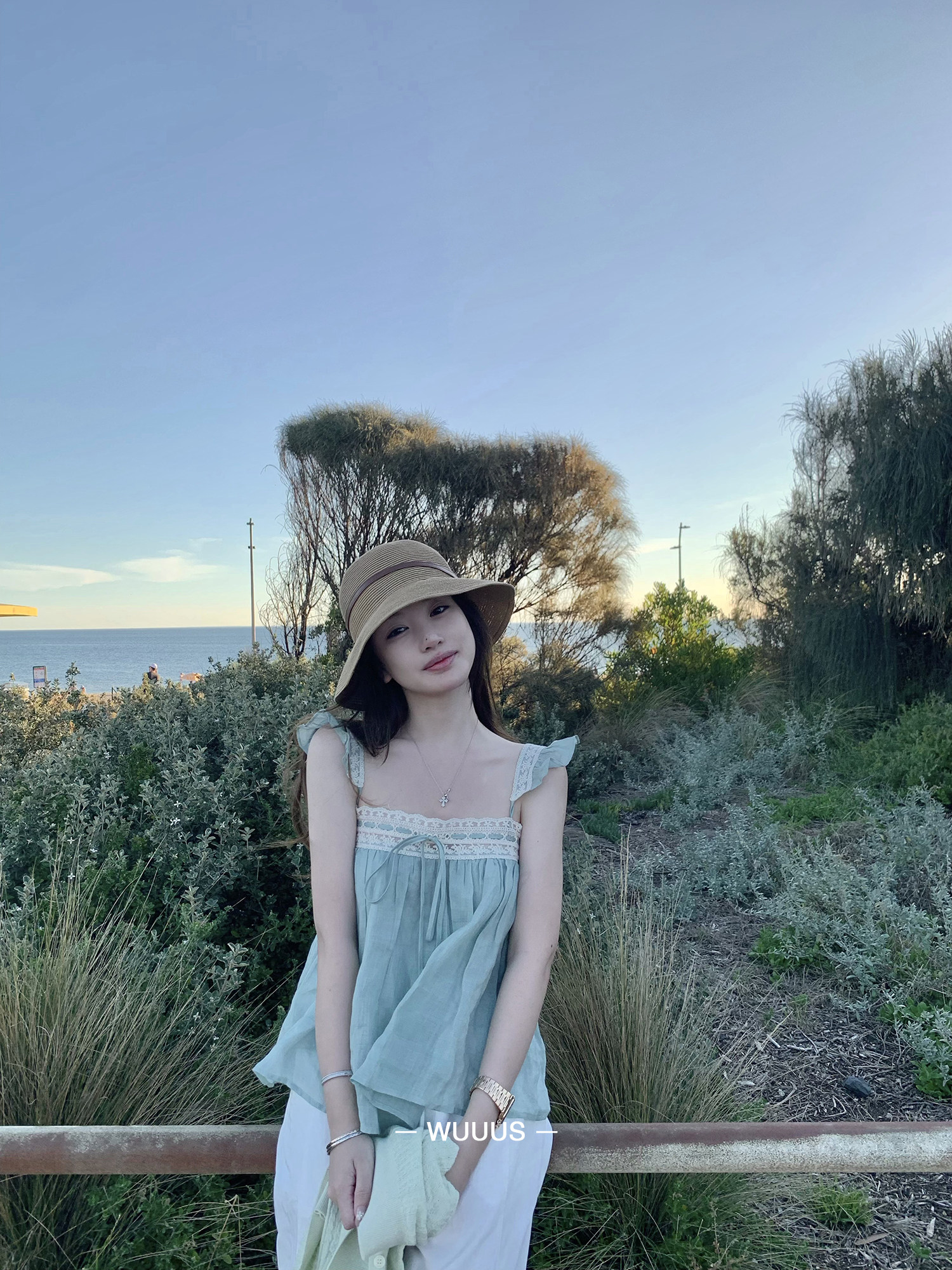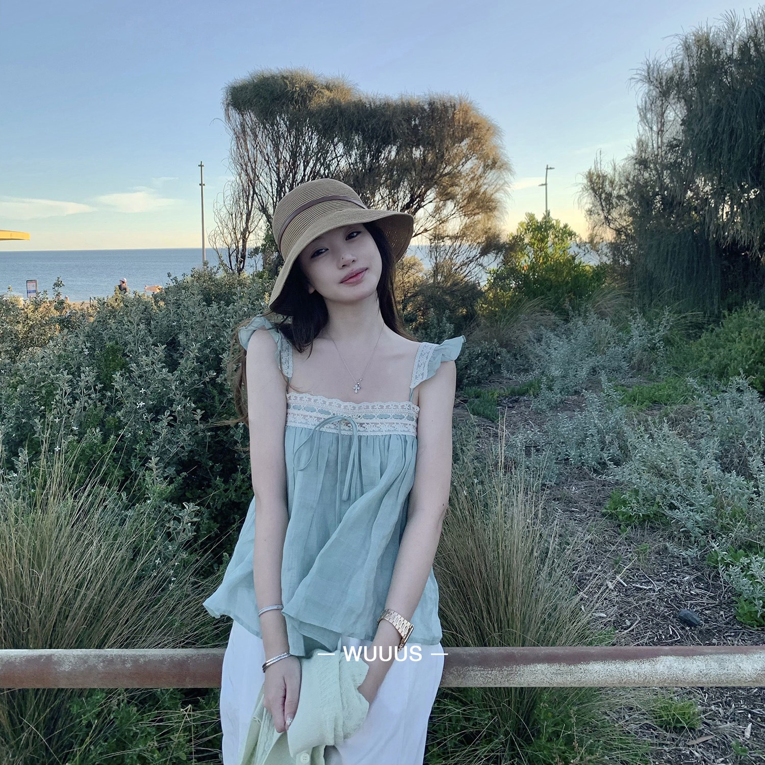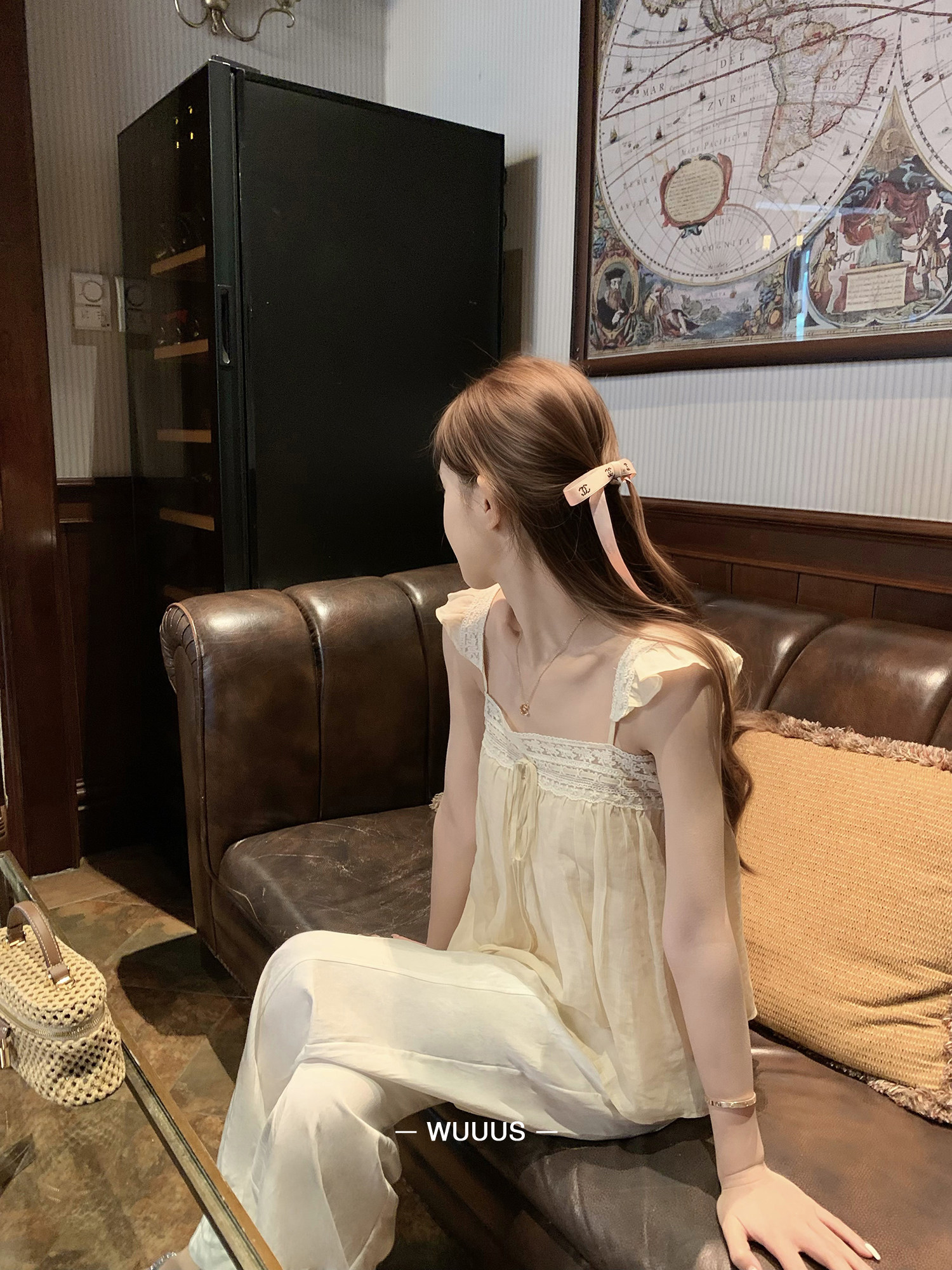 감사합니다. 아니요 고기 망사 오프숄더 민소매 몸매 가꾸기 조끼 여성 여름 3 차원 주름 디자인 센스 얇고 가벼운 통기성 맨위