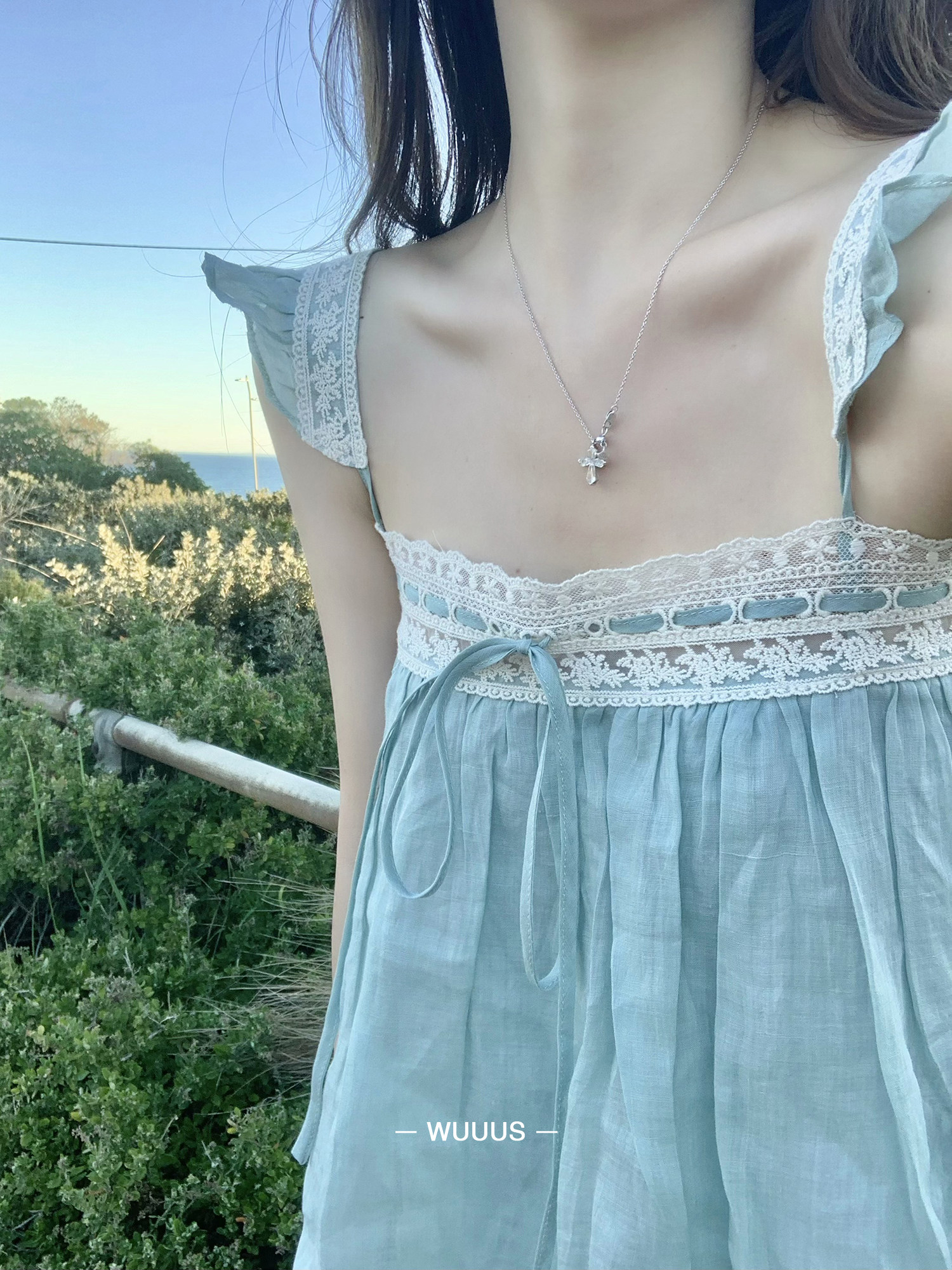 5werkwen romance 프랑스식 달빛 치마 구리 암모니아 사람들 실크 휴가 허리 수축 레이스 슬립 드레스