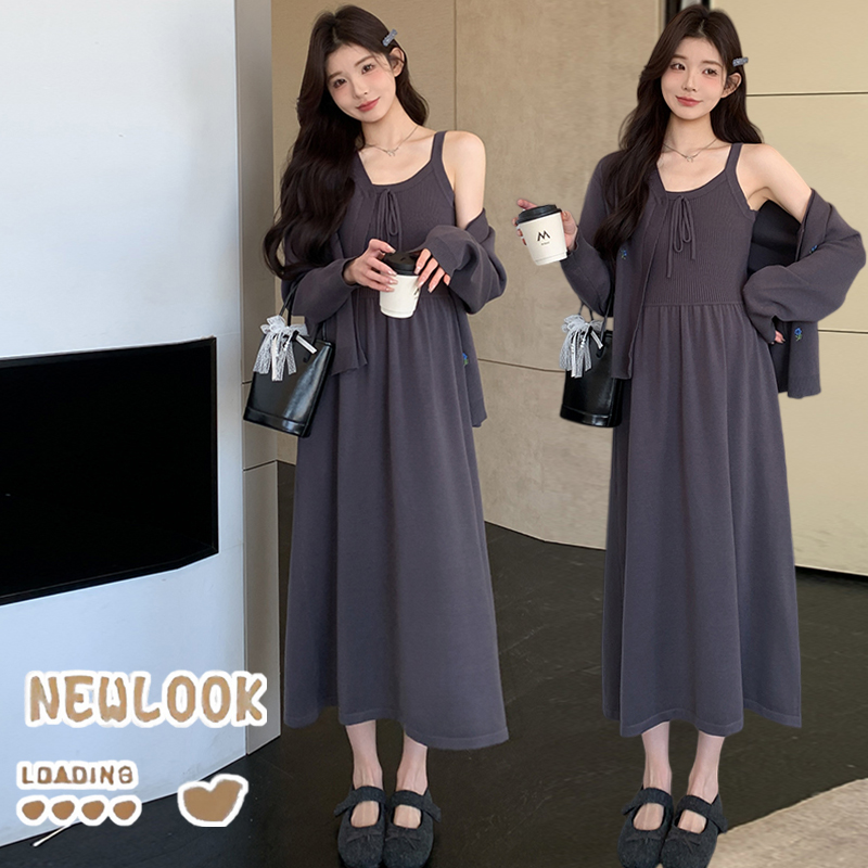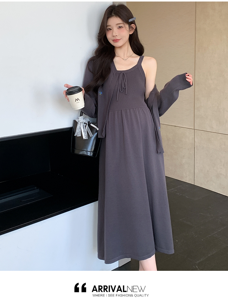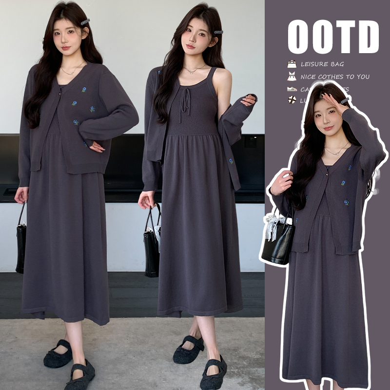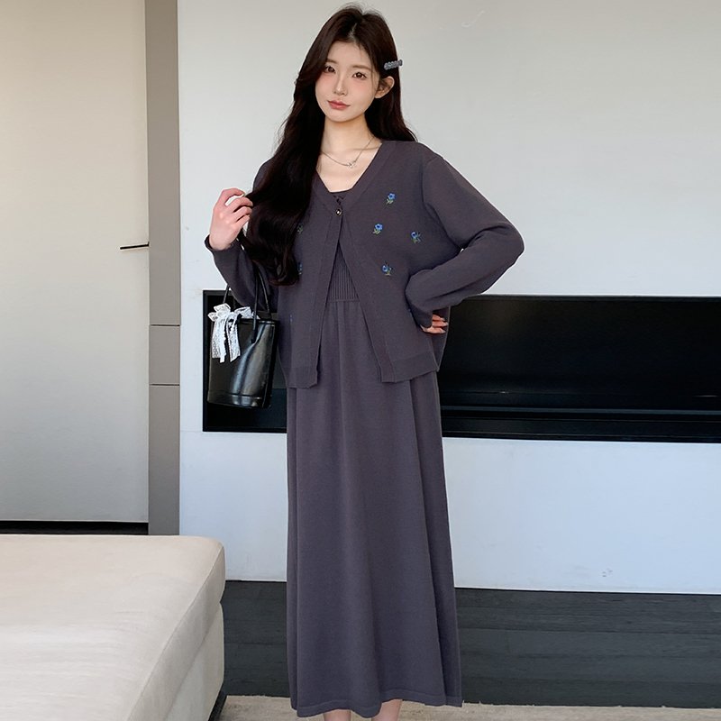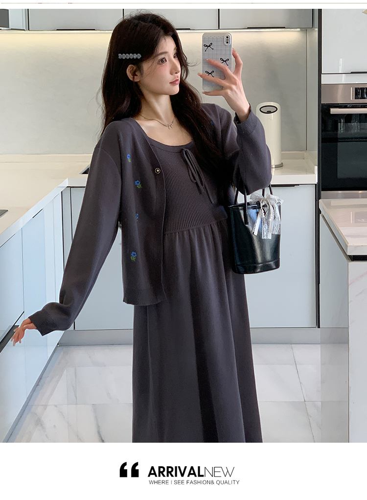2026 새로운 좋은 질감 니트 슬립 드레스 자수 니트 재킷 한국어 스트림 세트