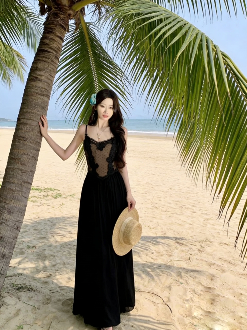 실사 해변가 휴가 슬립 해변 드레스 꽃 섬 아름다운 해변 드레스 여행 길다 치마 여성 의류