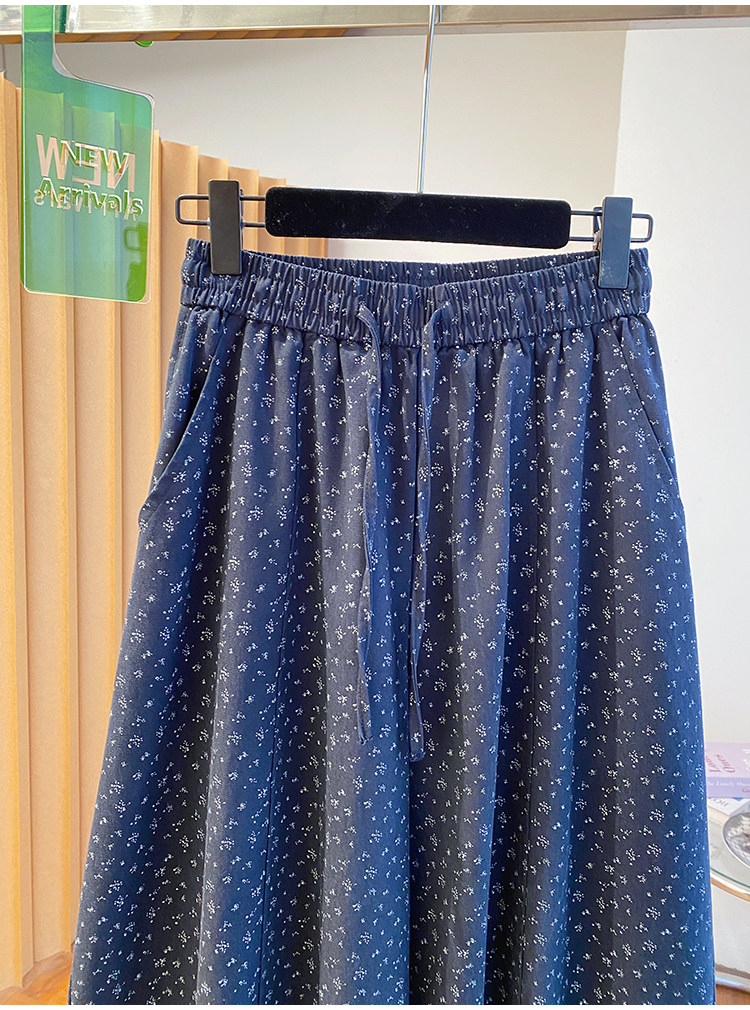 실사 봄 여름 착용 가져 가라. 작은 키 허리밴드 와이드 레그 팬츠 배기 바지 꽃밭 바지 무 9부 바지