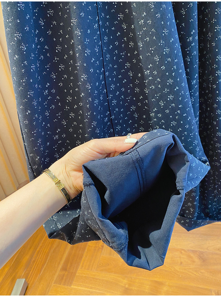 봄 여름 통기성 슬림해 보이는 중간 길이 드레스 프린트 루즈핏 레트로 7부 소매 풀오버 빅 사이즈 여성 의류