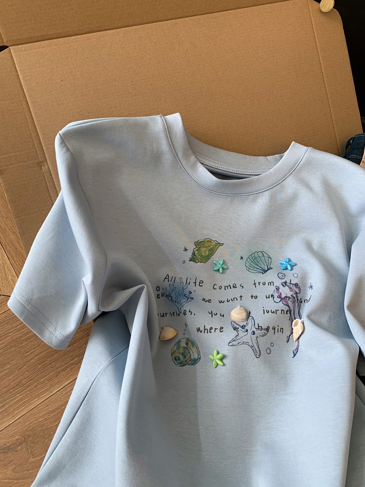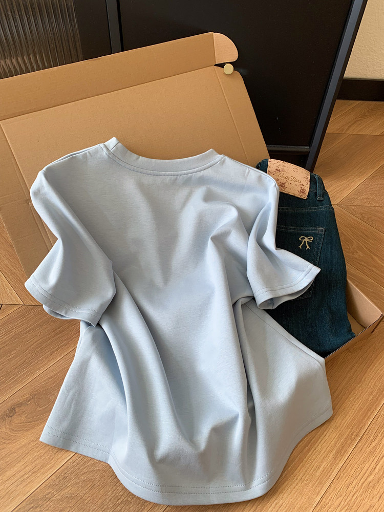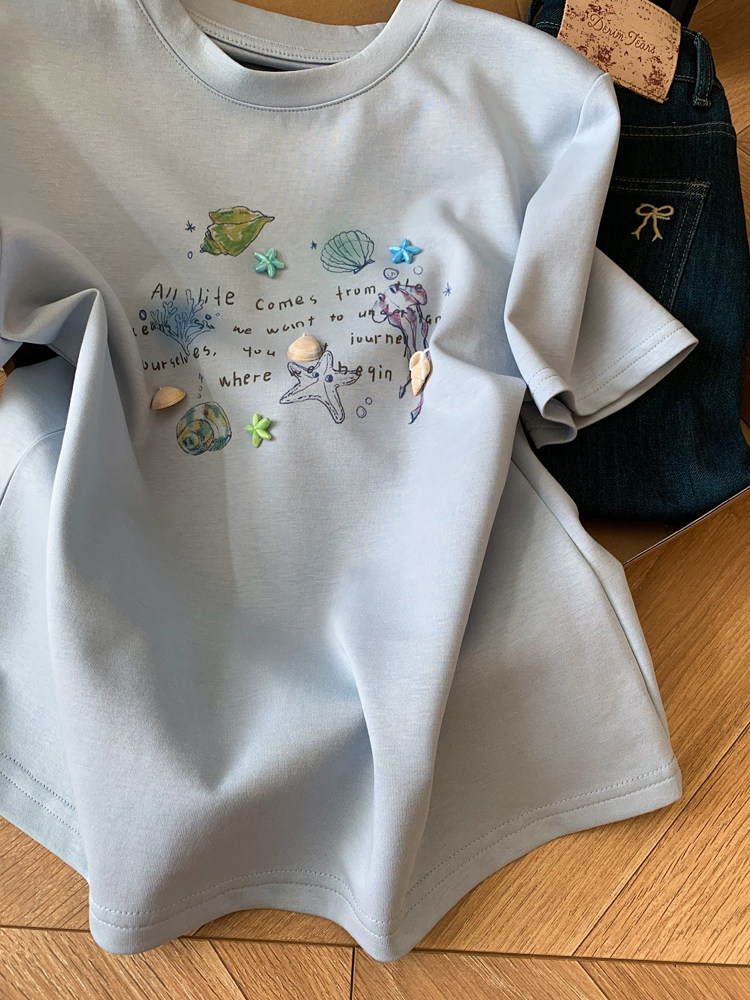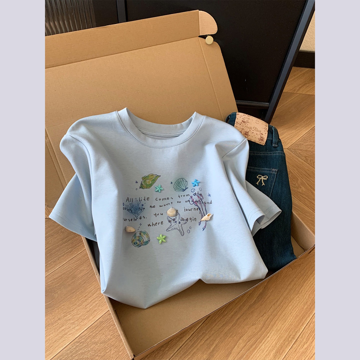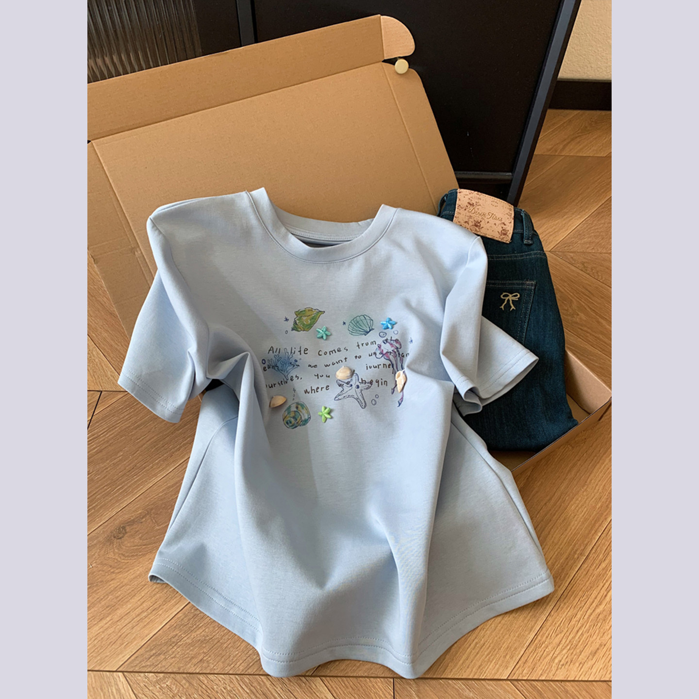 오리지널 디자인 한 부서 부드러운 ins 바람 알파벳 자수 니트 라운드 넥 반팔 여성 여름 얇은 스타일 캐주얼 백