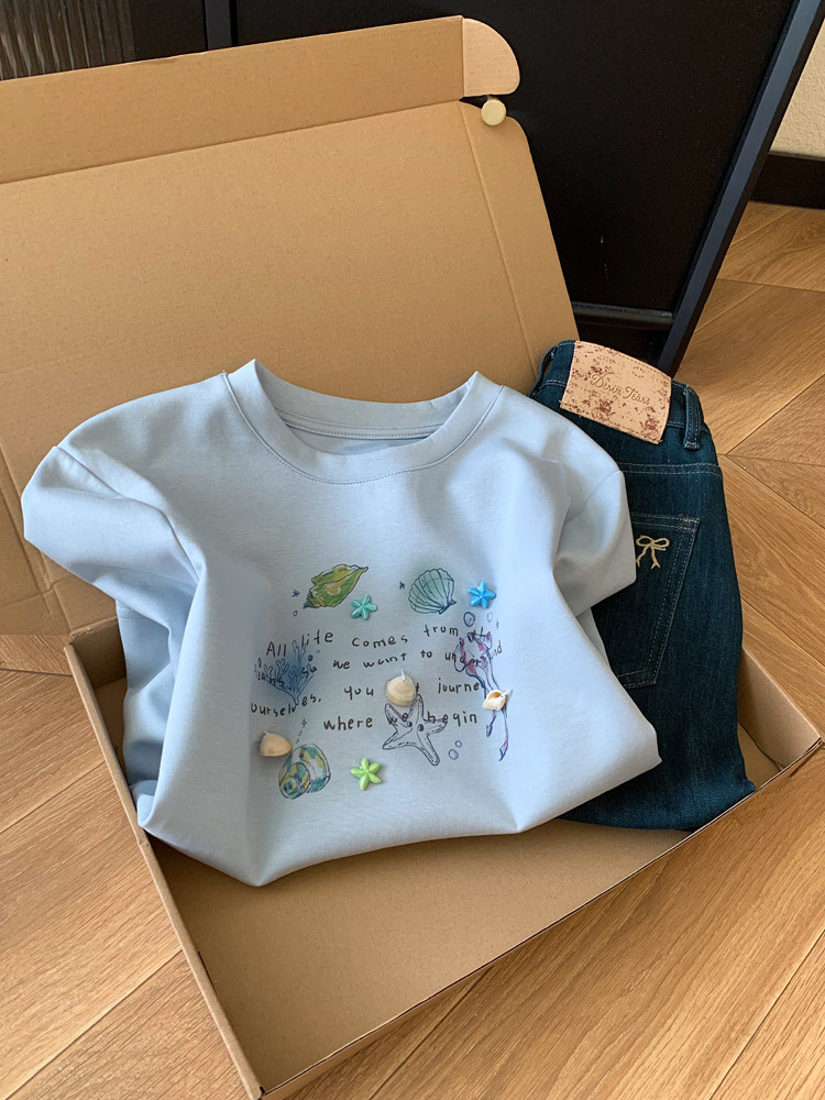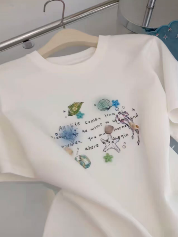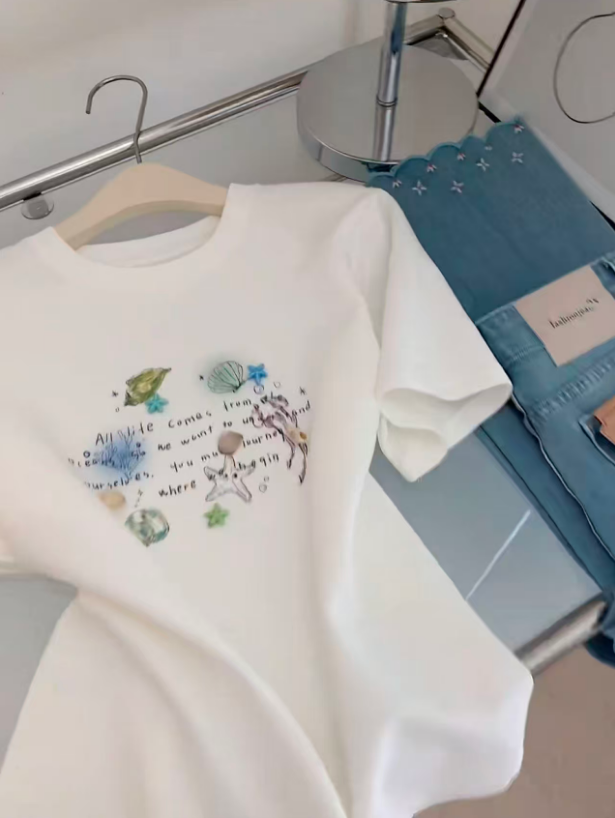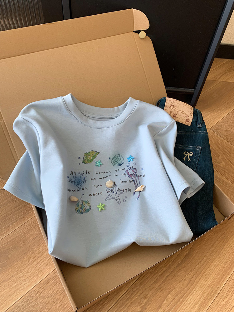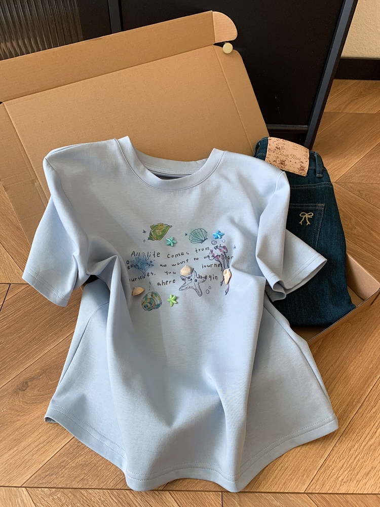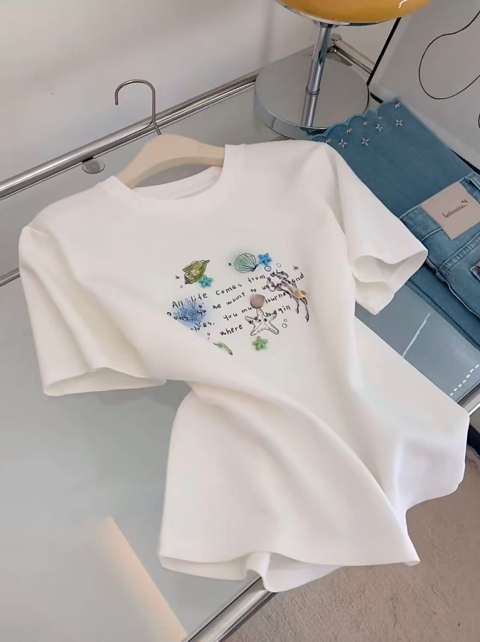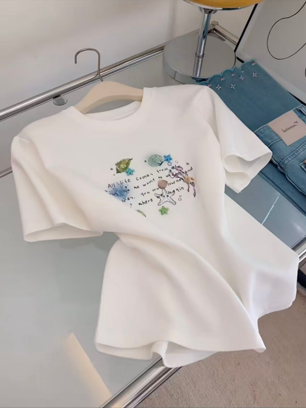 오리지널 디자인 한 부서 부드러운 ins 바람 알파벳 자수 니트 라운드 넥 반팔 여성 여름 얇은 스타일 캐주얼 백