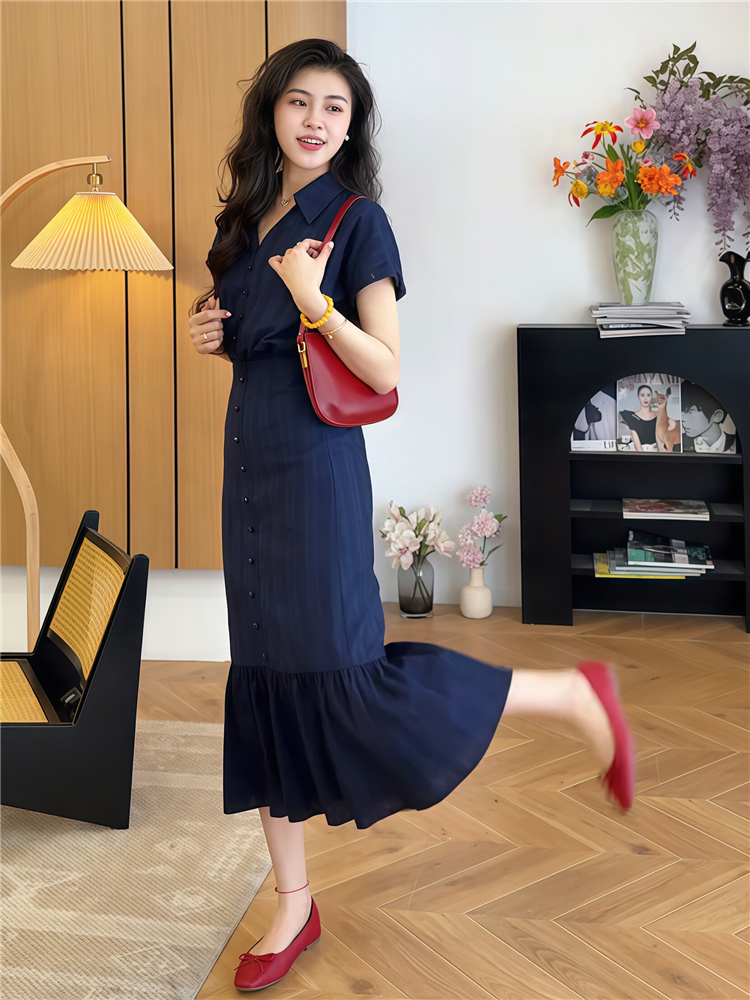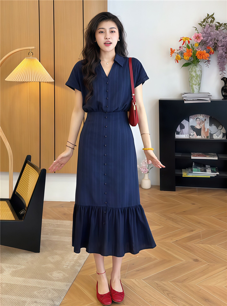 빅 사이즈 여성 의류 지방 mm 프랑스식 광장 칼라 레이스 자수 드레스 2026 여름 품격 슬림해 보이는 표지 고기 길다 치마