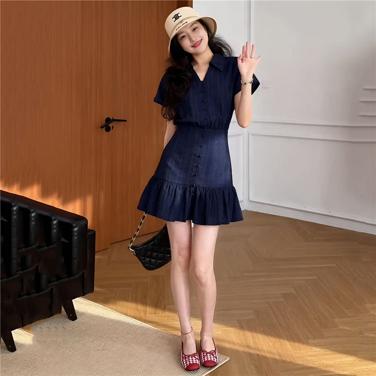 빅 사이즈 프랑스식 연령 감소 자카드 허리 수축 반팔 여성 드레스 봄 여름 섹션 지방 mm 배 모양 몸 슬림해 보이는 샤오 바이 치마