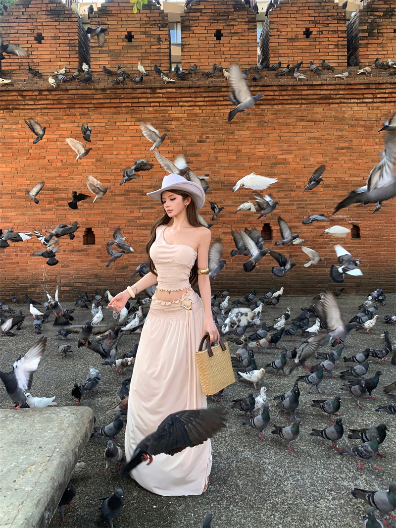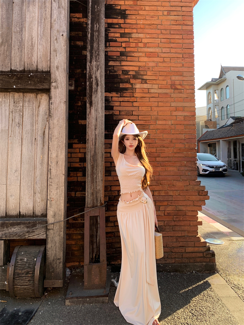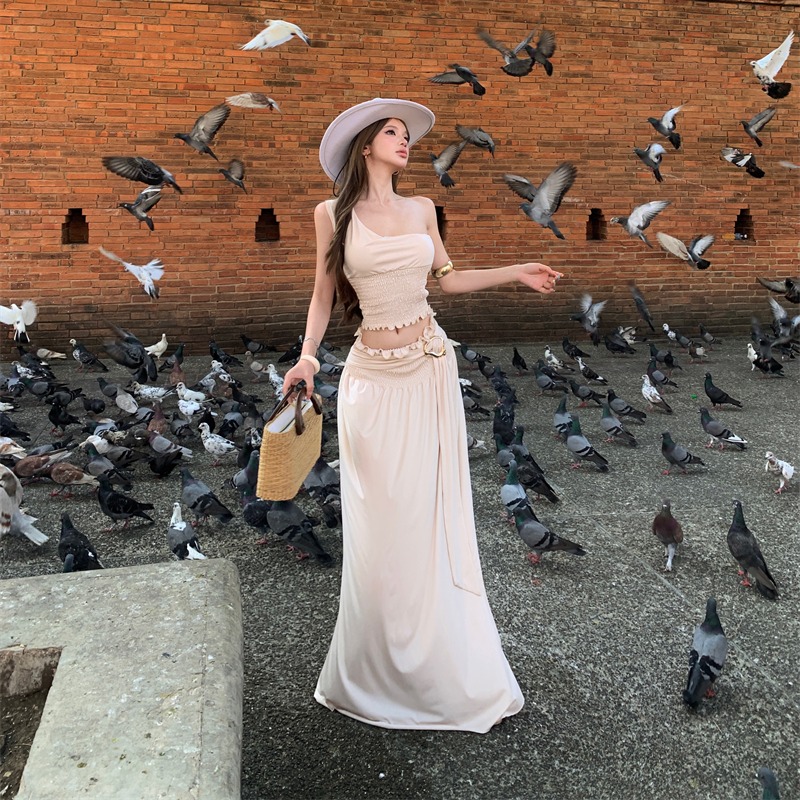 프랑스식 핫걸 순수한 욕망 바람 센스 백리스 슬립 여성 드레스 여름 새로운 품격 허리 수축 슬림해 보이는 큰 진자 롱 스커트