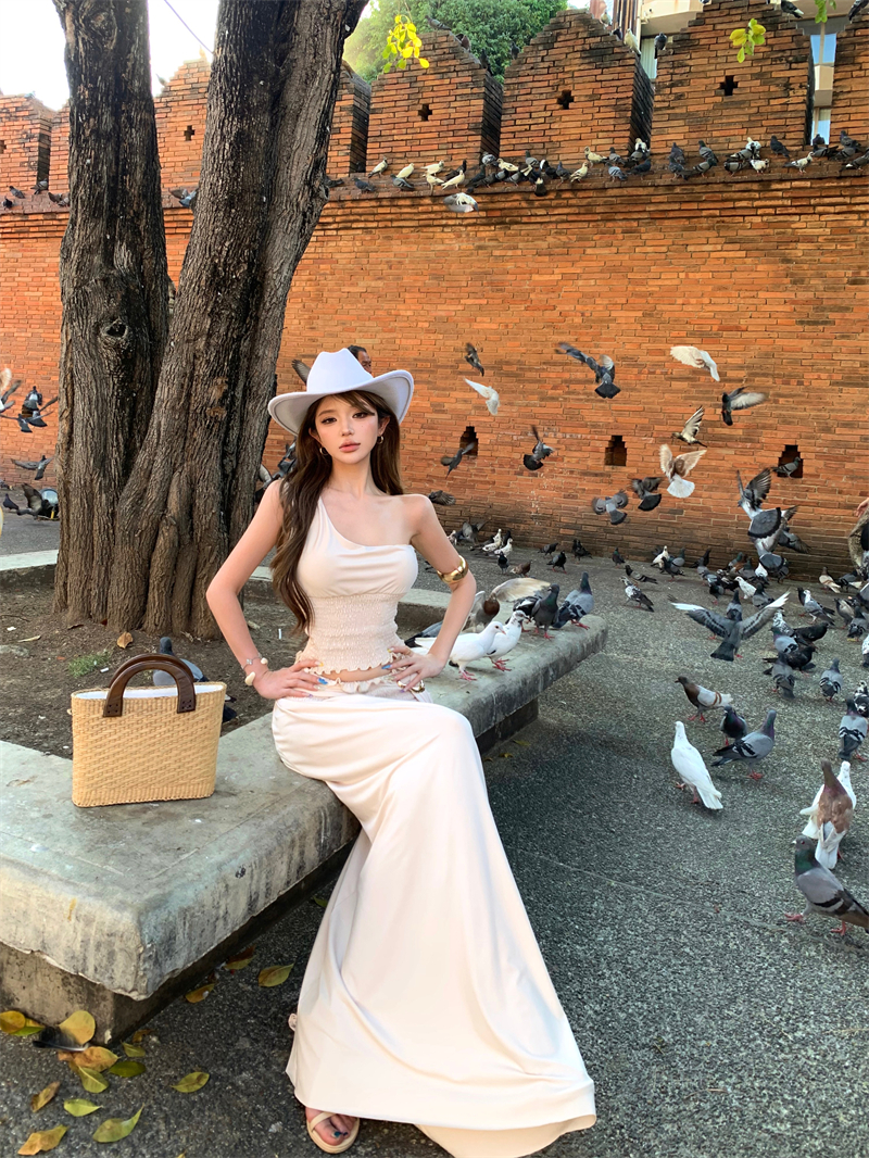 잉여금 부드러운 그것 상황 주간 실크 마 조개 슬립 드레스 해변가 휴가 행침 목 고급 센스 롱 스커트