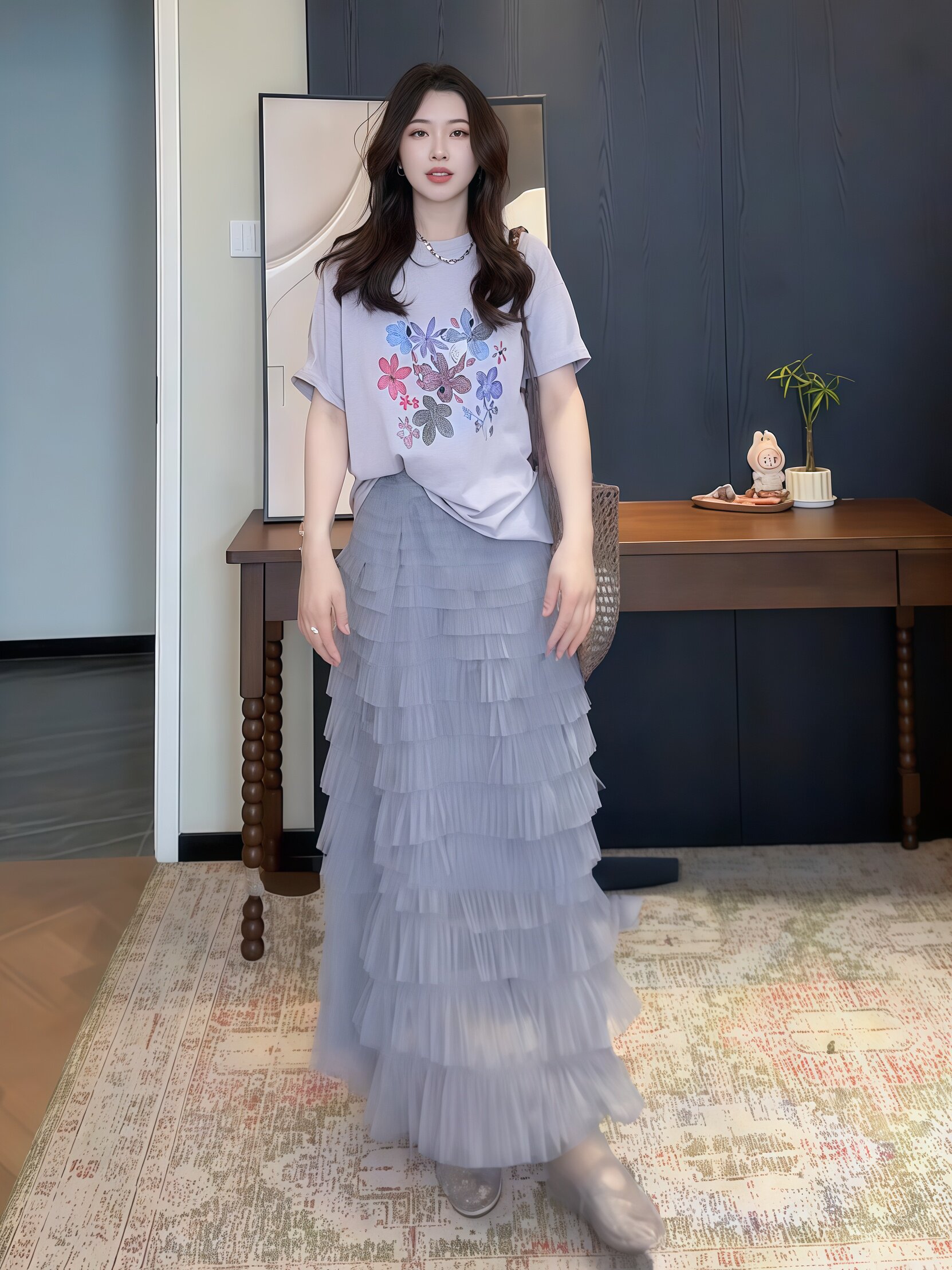 빅 사이즈 품격 하이웨이스트 패치워크 하프 ~을 통해 Tulle 반신 스커트 여름 몸매 가꾸기 슬림해 보이는 중간 길이 인어 꼬리 스커트