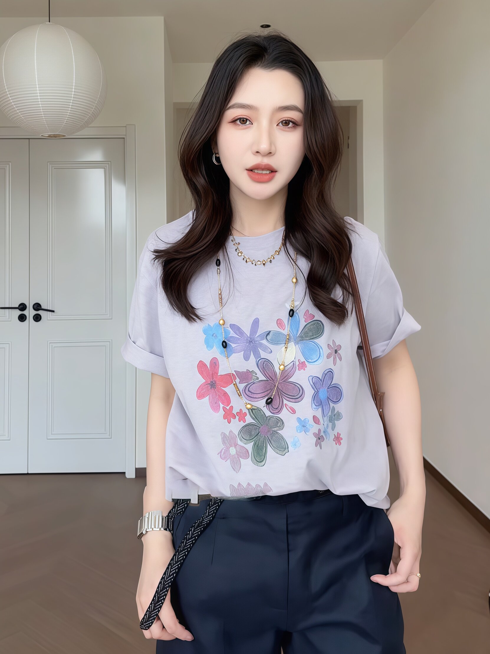 지방 지아 지아 도트 무늬 바지 쉬폰 캐주얼 바지 여름 얇은 스타일 루즈핏 표지 고기 긴 바지
